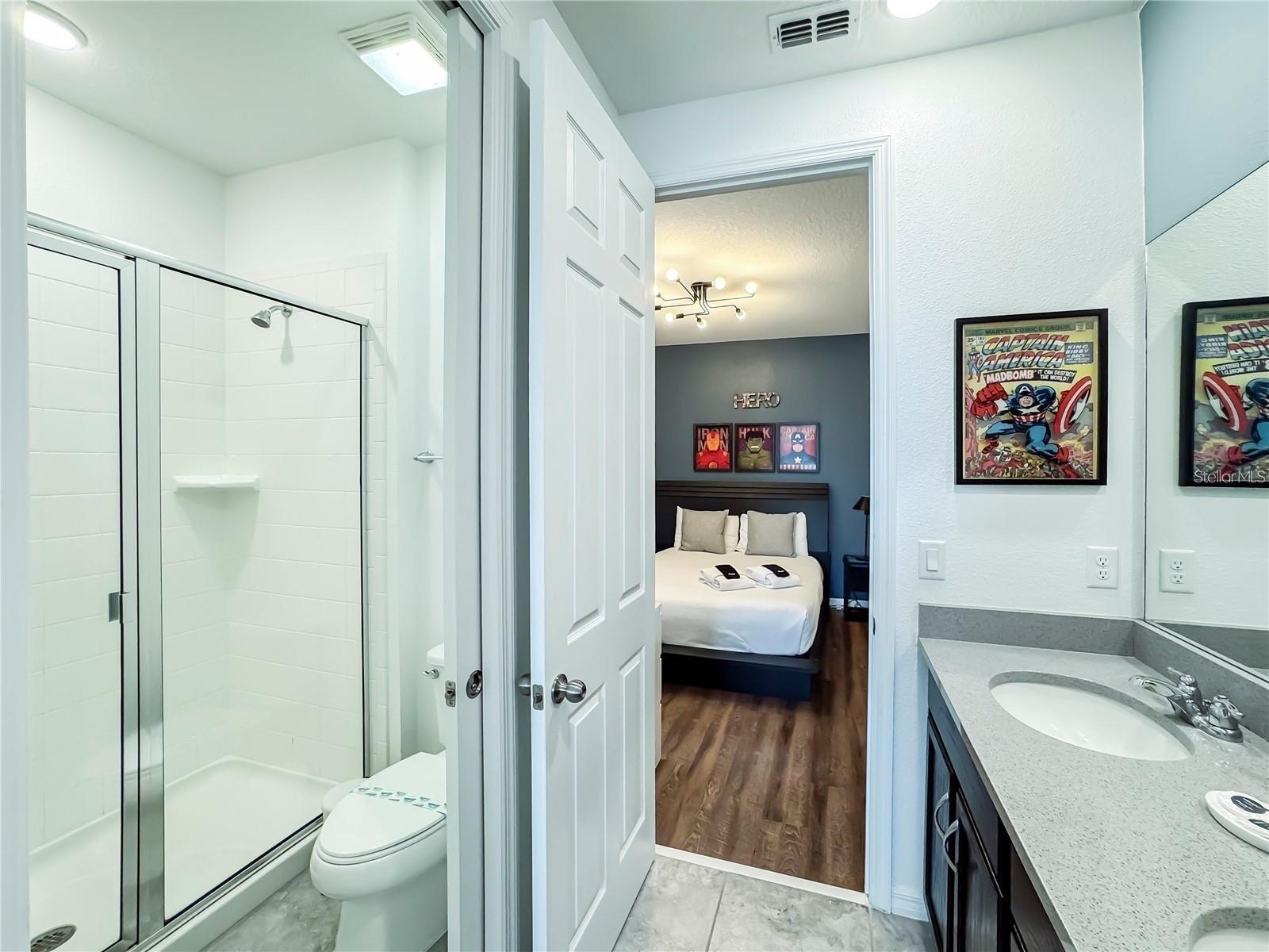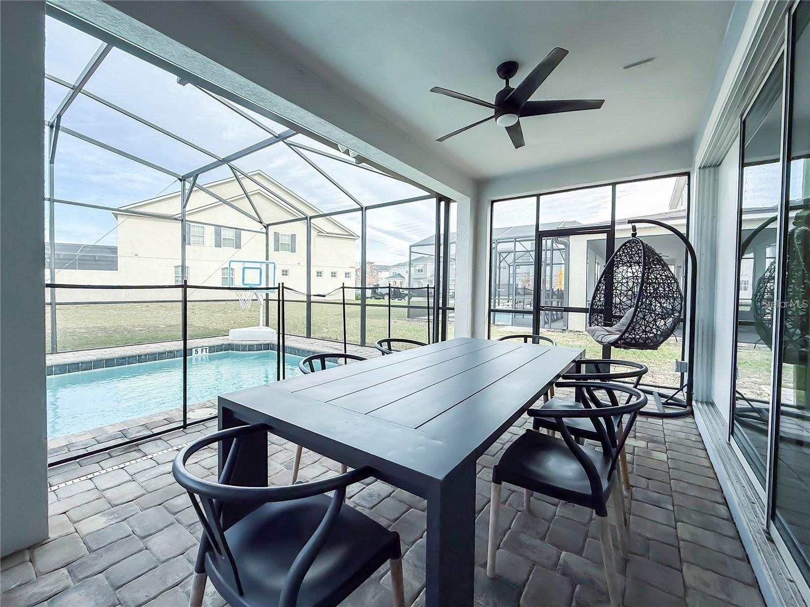 “Seller is very motivated “ Fully Furnished 9-Bedroom Model with Pool, Spa & Game Room... Now available is a rare opportunity to own in the exclusive, guard-gated Solara Resort—ideally located just steps from the clubhouse and world-class amenities. This beautifully appointed Naples II floor plan features 9 spacious bedrooms, 6.5 bathrooms, a large loft, a two-car garage, and comes fully furnished, making it a true turnkey investment. Meticulously maintained. From the moment you walk in, you’ll be impressed by the open-concept layout, soaring ceilings, abundant natural light, and stylish design. The gourmet kitchen is a chef’s dream, featuring 42-inch cabinets, granite countertops, stainless steel appliances, and a large island with breakfast bar—perfect for casual meals and entertaining. The living and dining areas flow seamlessly onto a covered patio overlooking a private heated pool and spa, creating the perfect outdoor retreat for relaxation or hosting guests. The primary suite is conveniently located on the first floor and includes a walk-in closet and spa-like en-suite bath with dual vanities, soaking tub, and separate shower. Upstairs, themed bedrooms and a large loft with multiple big-screen TVs offer an immersive and fun-filled experience for guests, making this home highly desirable for short-term rentals. The garage has been transformed into a vibrant game room, further enhancing the home’s appeal on platforms like Airbnb and VRBO. With strong booking performance and an option for the seller to share future reservations, this is an investment opportunity you don’t want to miss. Located less than 15 minutes from Walt Disney World and with easy access to I-4, US-192, and US-27, the home offers unmatched convenience to Orlando’s top attractions, restaurants, and shopping destinations. The HOA includes internet, cable, landscaping, and access to one of Central Florida’s most impressive amenity centers. Solara Resort delivers the ultimate resort lifestyle, with a zero-entry pool, FlowRider surf simulator, water slides, poolside cabanas, bar and grill, on-site café, state-of-the-art fitness center, yoga lawn, splash zone, playground, marketplace, and sports courts for basketball, soccer, and volleyball. Whether you’re looking to generate passive income or create a luxurious family getaway, this property checks every box. With limited inventory and high demand in Solara Resort, opportunities like this are extremely rare.