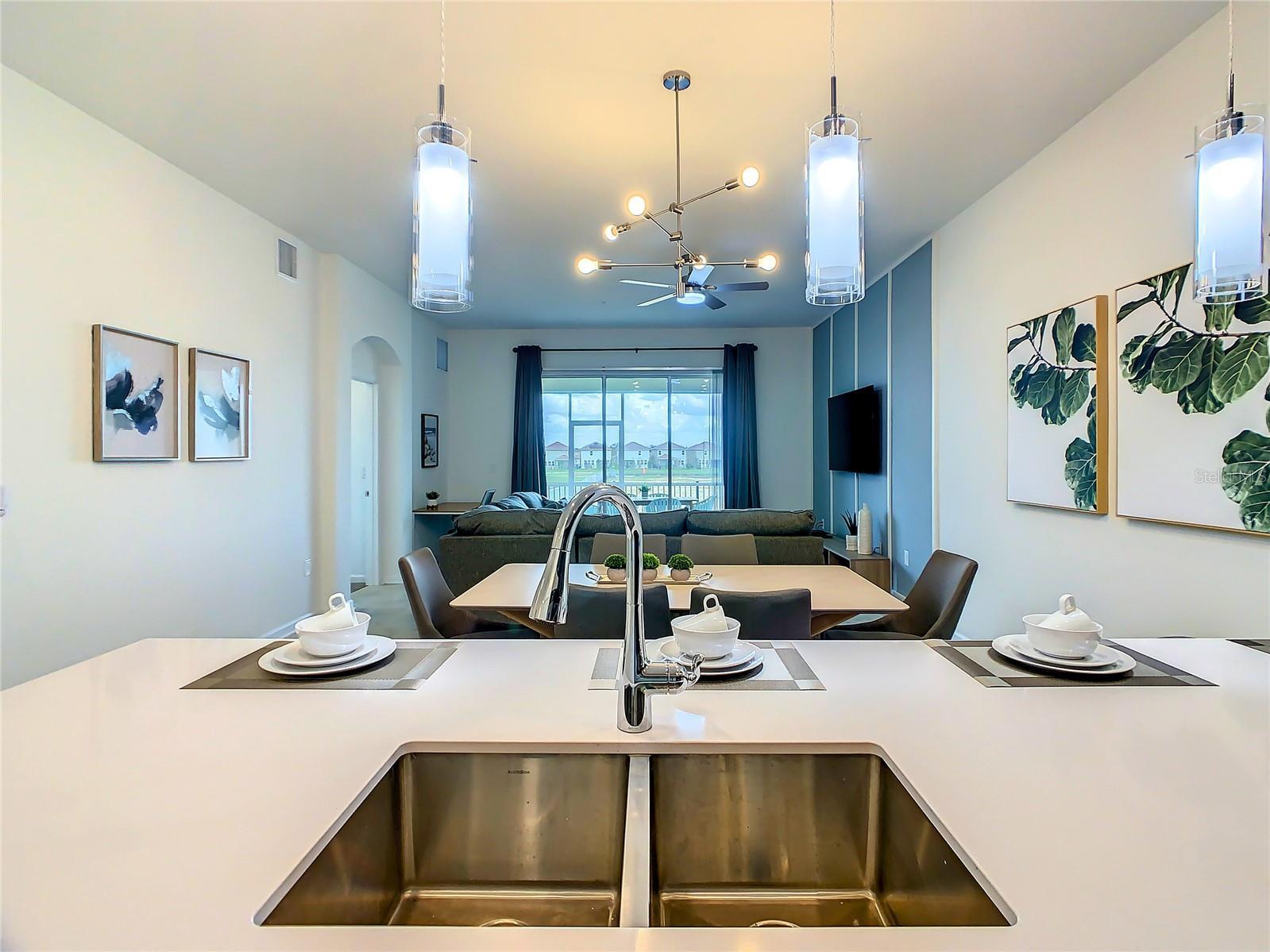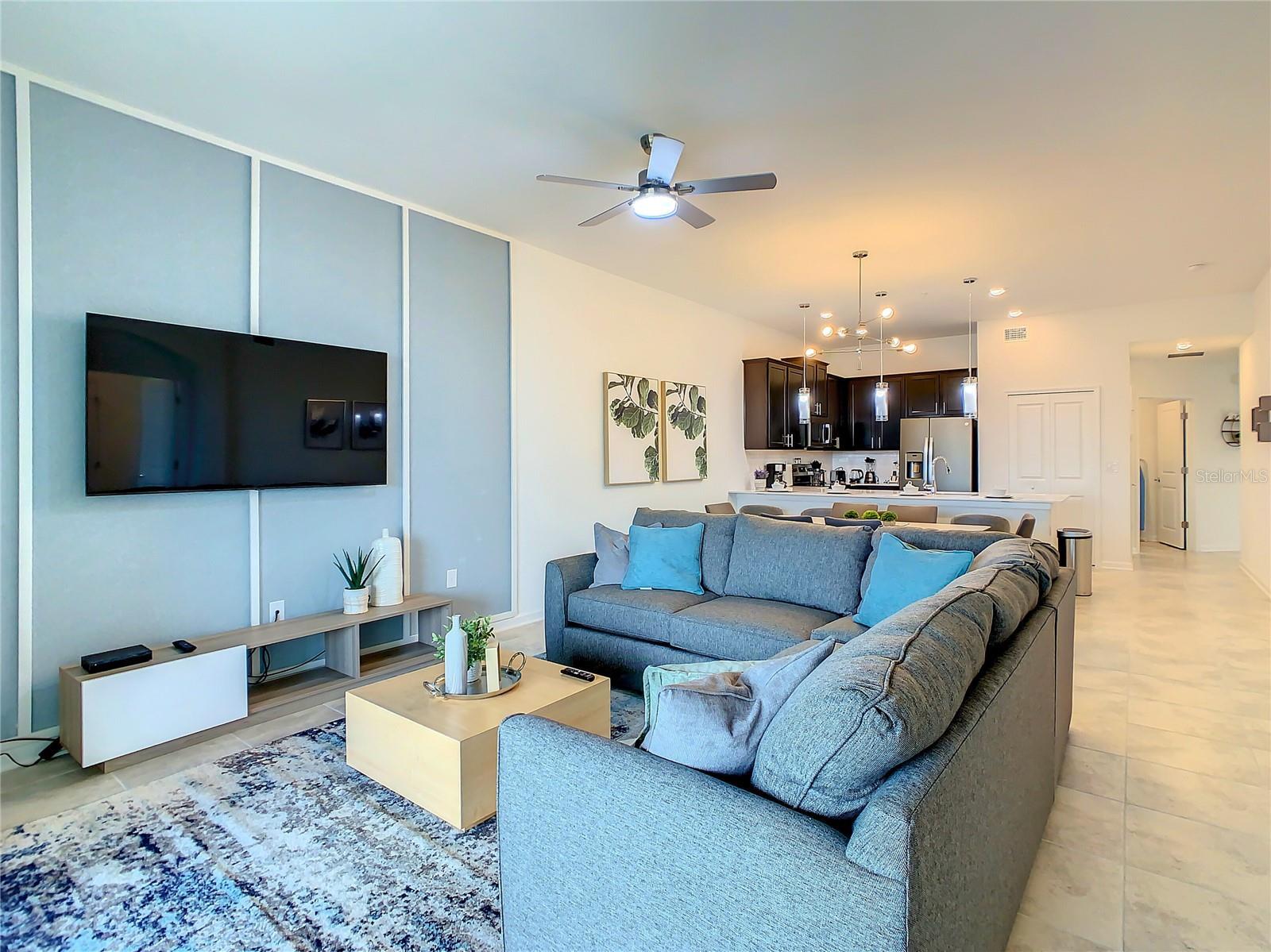 Spacious townhome located in the gated resort community of Champions Gate. The property includes a master suite with king-size bed and en-suite bathroom, a second bedroom with bunk bed, and a living room with sofa bed. Features include a fully equipped kitchen with island, dining area, Smart TVs, free high-speed internet, washer/dryer, private patio, and garage parking. Guests enjoy full access to resort-style amenities: two luxury clubhouses, gym, heated pools, lazy river, splash pad, water slides, tennis, volleyball, basketball, arcade, cinema, and on-site dining. Located just 14–22 miles from Disney, Universal, and SeaWorld, with shopping, dining, and golf courses nearby. Minimum rental term: 1 month. No smoking and no pets allowed.