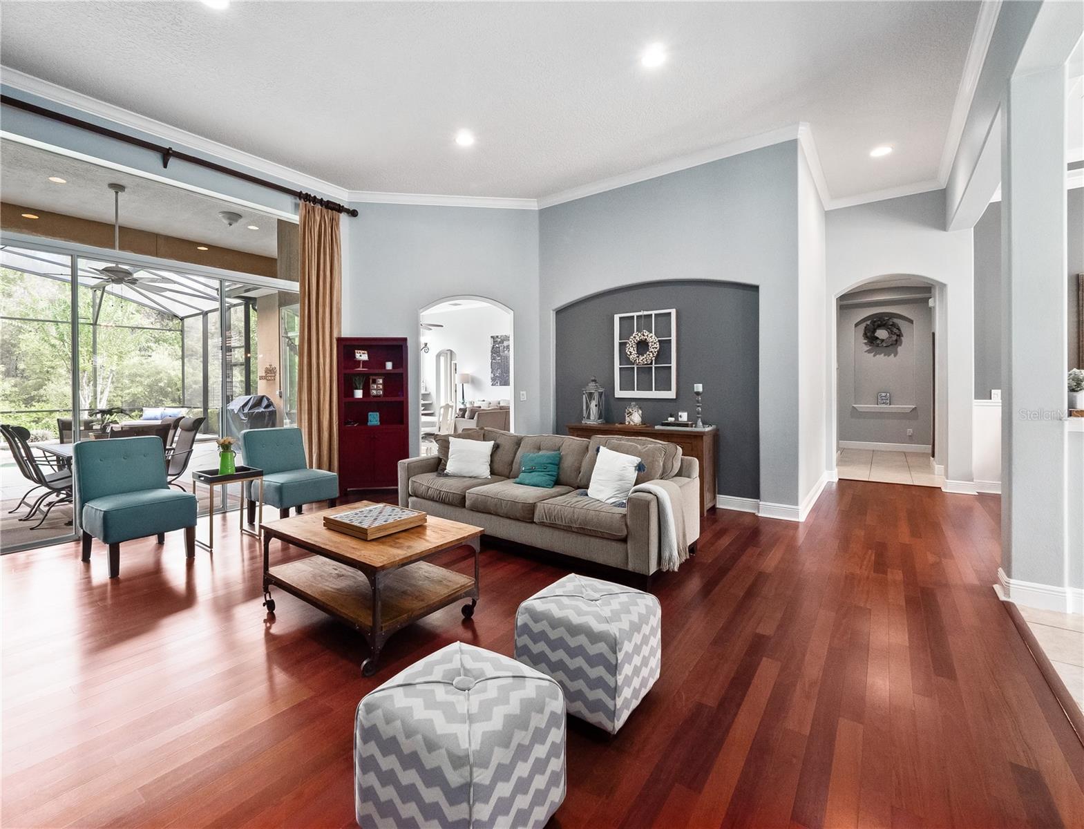 Under contract-accepting backup offers. Welcome to this beautifully maintained home in the guard-gated community of Alaqua Lakes! This elegant one-level residence offers 4 spacious bedrooms, 3.5 baths and a dedicated office or potential den with custom built-in cabinetry.This home has been meticulously maintained with recent updates including a NEWER TILE ROOF (2023), NEWER HVAC systems (2019) and NEWER TANKLESS water heater (2019) for peace of mind. Designed for both entertaining and everyday comfort, this home features a formal living room and dining room perfect for gatherings of friends and family. The gourmet kitchen features granite countertops, a spacious island, gas cooktop, solid wood cabinetry and stainless steel appliances—all flowing naturally into the inviting family room with built-in shelving/cabinets and a gas fireplace. High ceilings, crown molding and abundant natural lighting create an open, airy ambiance throughout the home. The primary suite is a serene retreat with walk-in closets, a separate sitting area and a spa-like bathroom with granite countertops, built-in vanity area, solid wood cabinetry, garden bath and adjacent shower. A desirable 3-way split-plan ensures utmost privacy for family or guests. Enjoy outdoor Florida living with a covered lanai overlooking the sparkling pool with a NEWER pool screen enclosure and a private backyard with conservation views perfect for relaxation and entertaining! Large, private backyard with room to add on if you so desire. Whether you’re a growing family or seeking a refined downsizing opportunity, this Alaqua Lakes home delivers a rare combination of style, function and privacy in one of Central Florida’s most sought-after communities. Alaqua Lakes is set within a premier golf course community where residents enjoy world-class amenities including clay tennis courts, a resort-style pool, playground and sports field, a 24-hour guard-gated entrance and enhanced community security. Located near Central Florida’s best attractions, upscale shopping and dining, major highways, and international airports this exceptional home delivers a rare combination of luxury, privacy, and lifestyle.