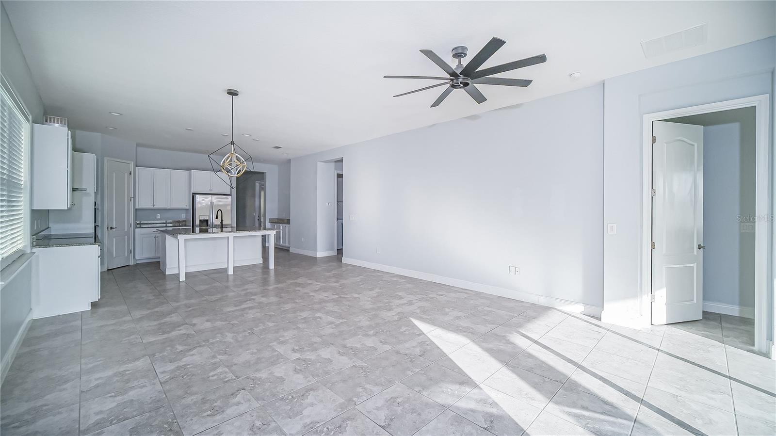 - Ceiling Fans(s), Eat-in Kitchen, High Ceilings, Kitchen/Family Room Combo, Living Room/Dining Room Combo, Open Floorplan, Primary Bedroom Main Floor, Solid Surface Counters, Solid Wood Cabinets, Split Bedroom, Stone Counters, Thermostat, Walk-In Closet(s)