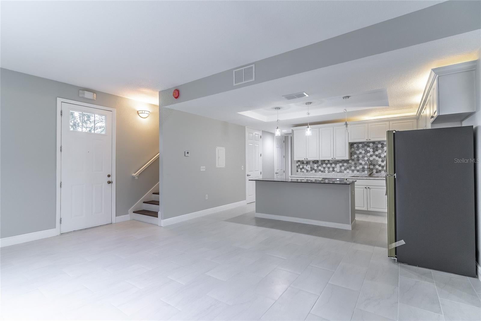 Looks and feels BRAND NEW!! Resort-style living in this upgraded end-unit 4BD/3.5BA townhome located in a desirable gated community. Features include porcelain tile flooring throughout (no carpet), fresh contemporary paint, granite countertops, brand-new stainless steel appliances, and under/over cabinet lighting. The kitchen offers a large island with breakfast bar, walk-in pantry, and abundant cabinet space. Open-concept great room leads to a screened patio with serene views—ideal for entertaining. Dual primary suites—one on each level—feature private baths and generous closets. Two additional upstairs bedrooms share a full bath with separate dual vanity. Upstairs laundry for added convenience. Community amenities include a heated pool and spa, clubhouse, fitness center, game room, playground, and sand volleyball court. Conveniently located near Orlando International Airport, theme parks, shopping, dining, and major highways.