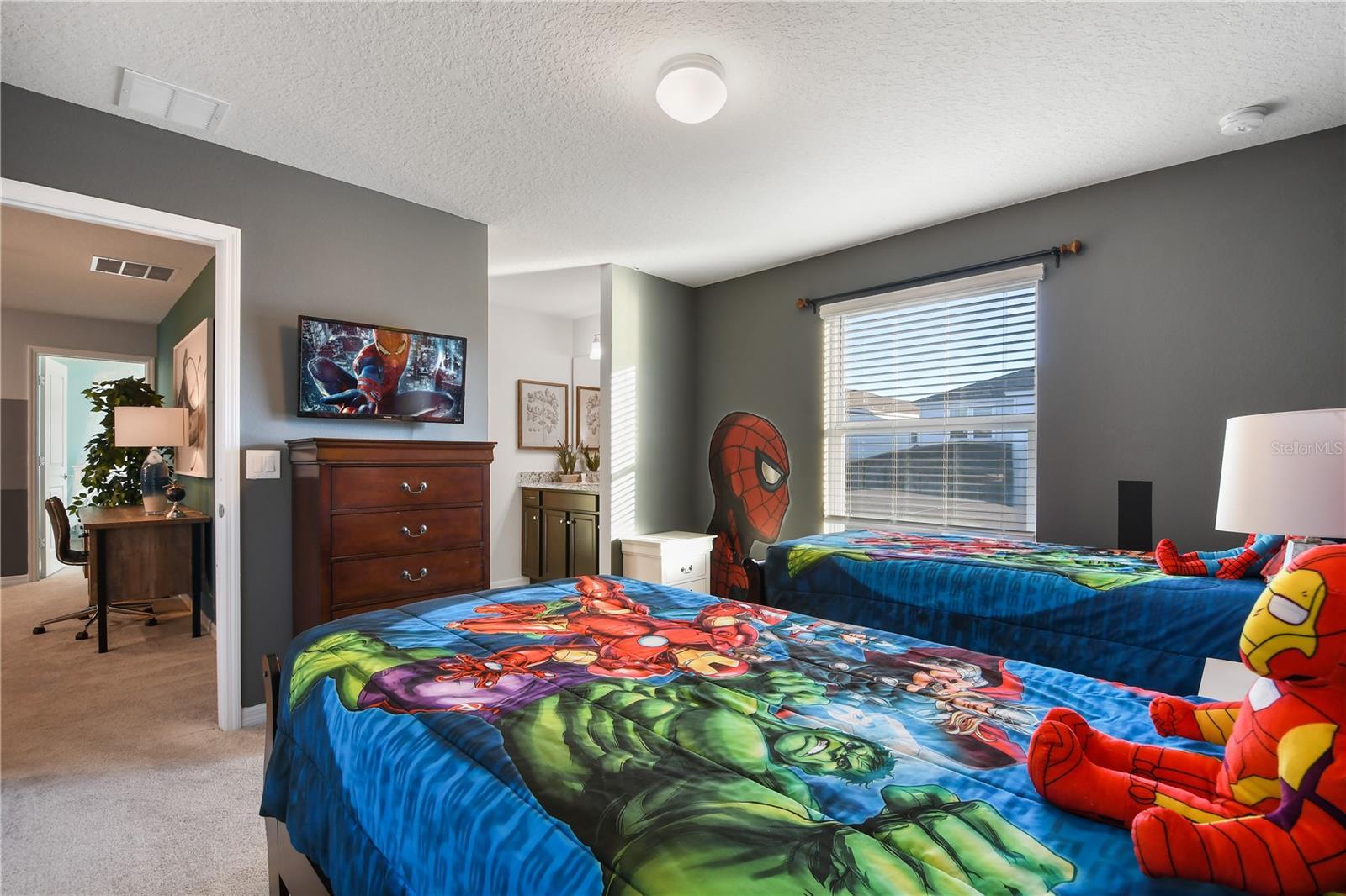 Discover an outstanding opportunity in Windsor Island Resort, one of the most desirable vacation home communities near Disney! This beautifully furnished 8-bedroom, 6-bath residence offers an expansive open floor plan designed for both relaxation and entertaining. Step into a grand two-story foyer with a striking staircase leading upstairs. The chef-inspired kitchen features stone countertops and stainless steel appliances, seamlessly opening to the spacious living and dining areas, which flow directly to the outdoor living space. Outside, enjoy your own private retreat with a large screened-in heated pool, spa, and generous lanai—perfect for alfresco dining and lounging. The first floor includes the primary suite and an additional guest suite for convenience. Upstairs, you’ll find two private suites, two Jack-and-Jill bedrooms, a versatile loft, and a dedicated game room for endless fun. The garage has also been converted into another fantastic game space, making this home an ideal vacation destination. Residents and guests of Windsor Island Resort enjoy world-class amenities, including an 8,000-square-foot clubhouse, resort-style pool with lazy river, water slides, poolside cabanas, a fitness center, restaurant and bar, playground, and sports courts. Whether you’re searching for a luxury getaway or a high-performing investment property, this Windsor Island home offers the perfect combination of comfort, style, and location. Don’t miss this incredible opportunity!