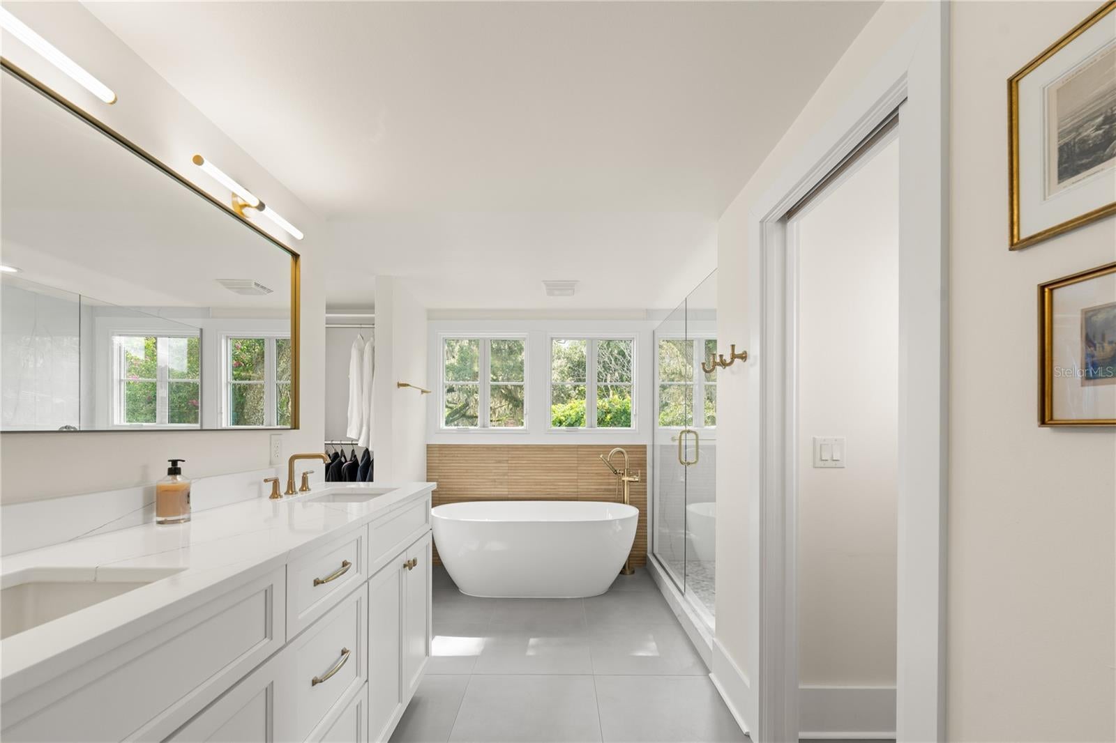 One or more photo(s) has been virtually staged. This impeccably restored 1920s residence, inspired by the timeless designs of Italian architect Andrea Palladio, seamlessly blends historic charm with contemporary luxury. Set on a rare double lot shaded by mature Live Oaks and framed by picturesque brick streets, the home offers dual street access and has undergone a meticulous, full-scale renovation. Every inch was thoughtfully reimagined both levels reconfigured to maximize functionality, natural light, and flow while original architectural details were carefully preserved. High ceilings contribute to the home's open, airy feel. The main residence features a flexible layout with three generously proportioned bedrooms and three-and-a-half bathrooms. A detached, fully self-contained one-bedroom, one-bath guest house complete with a private entrance and full kitchen offers ideal accommodations for guests, extended stays, or income generating opportunities. All three newly built bathrooms in the main home feature frameless glass walk-in showers, elegant stone countertops, and premium fixtures. Major system upgrades include new plumbing, electrical, ductwork, and HVAC. Energy efficiency was a priority throughout, with features such as R-38 attic insulation, a tankless water heater, double-pane Pella windows, and custom doors and hardware. The lanai, equipped with motorized shades, offers both privacy and convenience blending indoor comfort with outdoor elegance. At the heart of the home lies a chef’s kitchen designed for both beauty and performance. Highlights include a custom island, integrated gas cooktop, Dacor double ovens, and bespoke cabinetry. A floor-to-ceiling sliding glass wall seamlessly connects the interior to a covered lanai and a newly rebuilt 16' wide by 32' long saltwater pool, 8 feet deep, featuring brand-new piping and mechanical systems not typically found in new construction. The home includes three distinct living areas, a formal dining room, and a spacious eat-in kitchen. A sunlit home office and a large laundry room with stone countertops, deep sink, and custom cabinetry add exceptional functionality. A centrally located powder room provides added convenience for guests. Upstairs, the expansive primary suite offers a spa-inspired retreat. The luxurious bath includes a soaking tub, a walk-in shower adorned with Italian Calacatta Gold porcelain tile, champagne gold fixtures, dual Kohler sinks, and Cambria quartz countertops. A custom walk-in closet completes the suite’s refined ambiance. Two additional upstairs bedrooms each include en suite bathrooms, offering comfort and privacy for family or guests. Ideally situated just steps from Lake Lawsona and within a short distance of Lake Eola, Thornton Park, Orlando Health, the Orlando Arena, and the Dr. Phillips Center, the home provides effortless access to Orlando’s most vibrant destinations. Nearby Winter Park adds to the appeal with its scenic parks, upscale boutiques, renowned art galleries, and acclaimed dining. Cultural institutions like the Morse Museum, Winter Park Historical Museum, and Central Park are also close at hand, along with the Winter Park Golf and Country Club and the Winter Park Chain of Lakes. With Michelin-rated restaurants, a popular Sunday farmers market, SunRail access, and Orlando International Airport just minutes away, this exceptional home presents a rare opportunity to own a landmark property where architectural heritage, modern luxury, and urban convenience intersect.