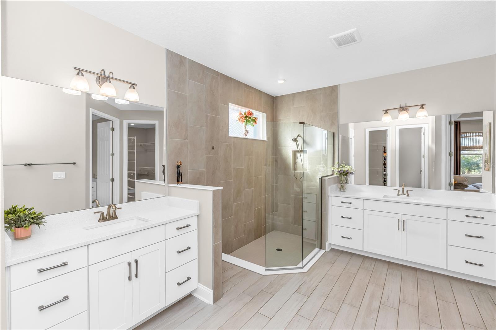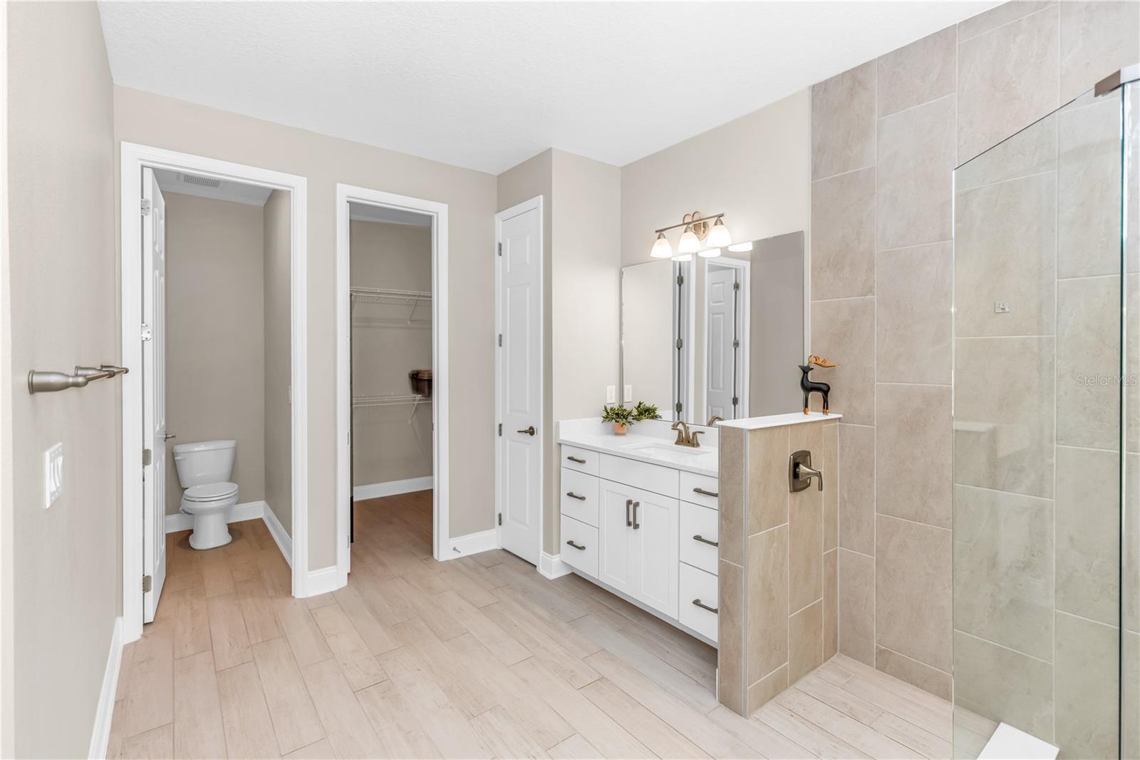 Welcome to this well maintained single-family home that blends comfort, efficiency, and natural beauty in every detail. With sweeping views from nearby Lake Mac, a conservation area right in your backyard, and a seamless design, this home invites you to enjoy each day to its fullest in the much desirable Encore At Ovation Community. Built on a premium upgraded lot in 2021 by M/I Homes, this property boasts almost 3,000 sqft of living space with an open-floor plan, featuring 4 bedrooms and 3 bathrooms. Step inside to discover a light-filled living area with endless possibilities. The heart of the home is the gourmet-style Kitchen which opens up to the Living Room, overlooking the conservation and lake areas. Fully equipped with energy efficient stainless steel appliances, it offers a gas stove top, microwave/oven wall unit, granite countertops, and a glass-door walk-in pantry that provides ample storage space. Step outside to the Screened Lanai with your favorite beverage for some peaceful outdoor cooking, or simply to enjoy the stillness of nature, just yards away from the lake. Retreat to the Primary Bedroom, complete with its 2 walk-in closets, large and spacious bathroom area, with separate sinks on opposite sides, also overlooking the conservation area. The remaining Bedrooms are located on opposite sides of the Primary for added privacy. One of them features its own private bathroom, which can be used as a separate Primary Bedroom or the perfect Guest Room. The others can be used as additional Bedrooms or Offices. Enjoy the Laundry Room, which also features energy efficient appliances, complete with high end washer and dryer, a utility sink, storage cabinets, and even a folding countertop for your convenience. Take advantage of the Florida sun and allow your newly installed solar panels to produce energy for your home and become the envy of your friends and neighbors with your low monthly electric bill (Solar Panels will be transferred to new owners). The home also offers a water filtration system, portable generator, and an electric car charging station in the garage (240 Amp). The builder left no stone unturned with this amazing house conveniently located with easy access to major attractions, restaurants, shops, and the best that Central Florida can provide you. Make it your personal sanctuary today! Welcome Home!
