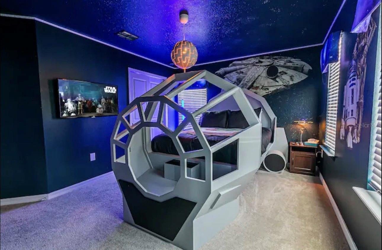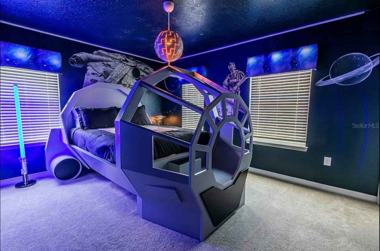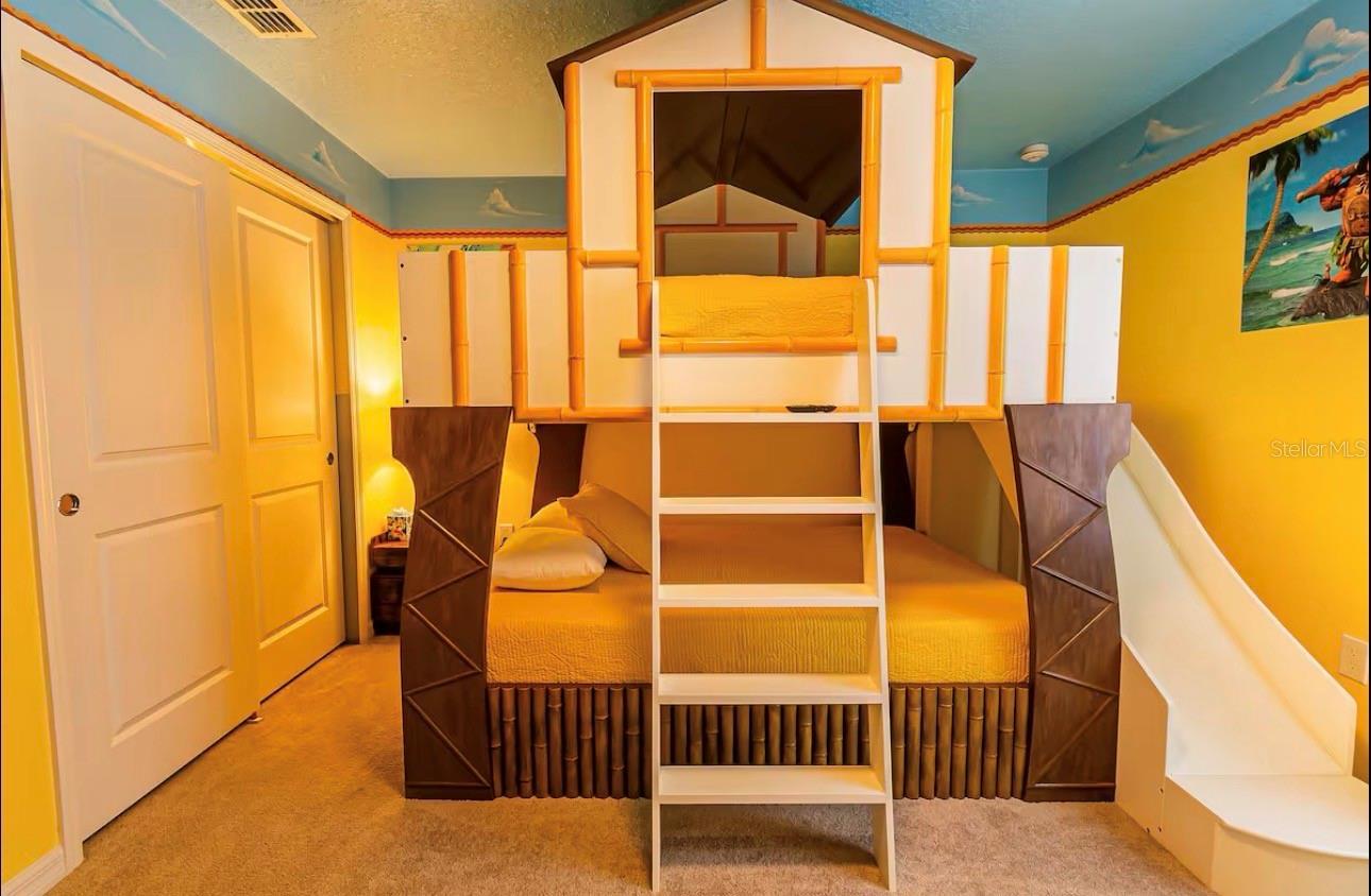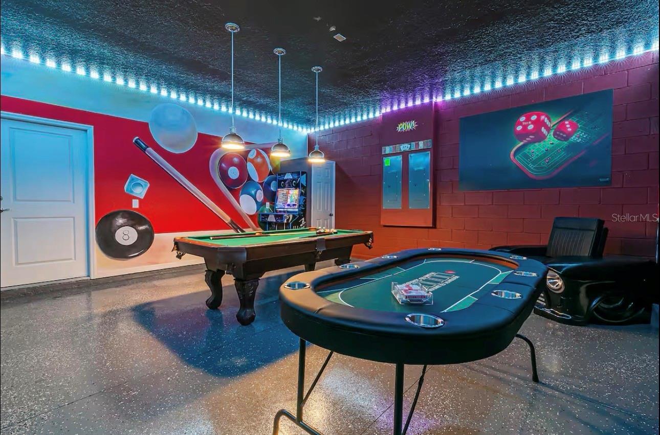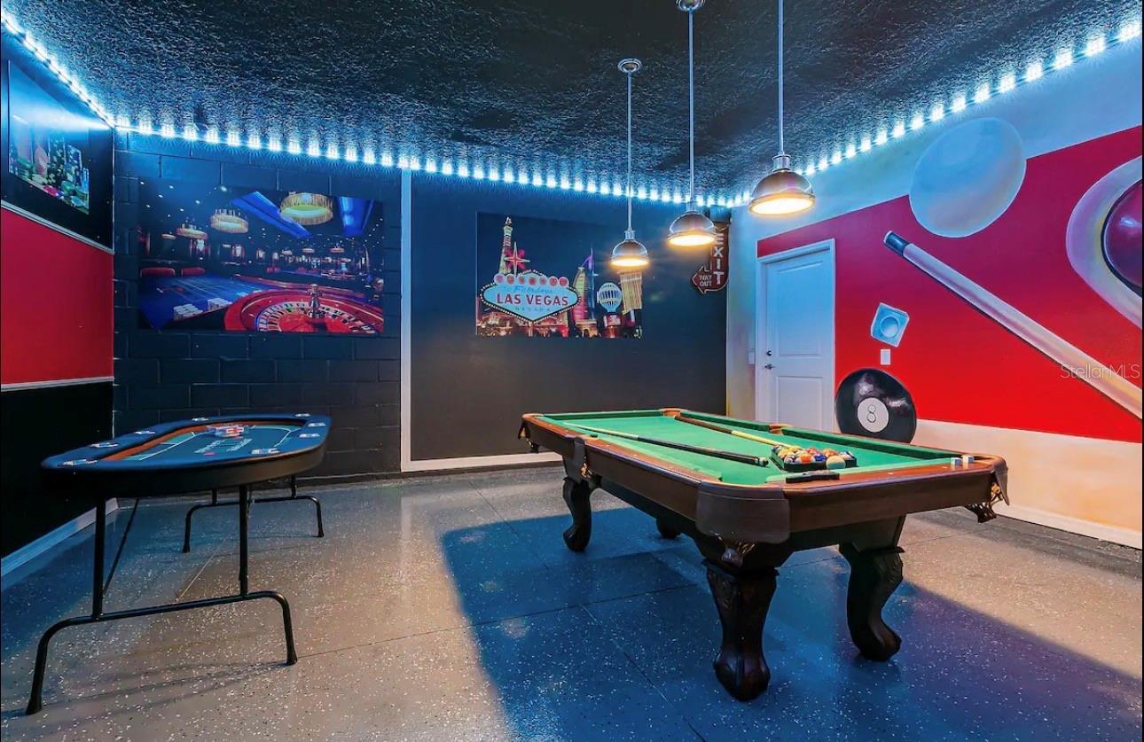 This Ten-bedroom, Eight-bathroom open-floor concept home offers all your family, friends, and possibly guests' need! The kitchen-living-dining is perfect for gatherings, and the views of the beautiful pool backyard are amazing. The backyard offers a large deck, and the pool includes an inground jacuzzi. The kitchen features all stainless steel appliances, dark color cabinets, and granite countertops with eating space. Also, on the main level, you'll find the laundry room, half bath, and garage, which was turned into the perfect game room. As you walk upstairs, you are greeted by this massive, beautifully decorated loft. All the themed rooms were carefully decorated to make your guest and family feel like they are on a Florida Vacation. The HOA amenities include a waterpark-style community resort pool with dueling slides- lazy river- hot tub/spa- splash pad-pool side miniature golf course- outdoor bar and dining- fire pit area- clubhouse- fitness center- arcade/ gaming room- playground- basketball courts- soccer fields & more! Close to Disney & other Theme Parks, Local Attractions, Shopping, Restaurants, Orlando International Airport & Major Highways taking you to the Beaches... Location is KEY!