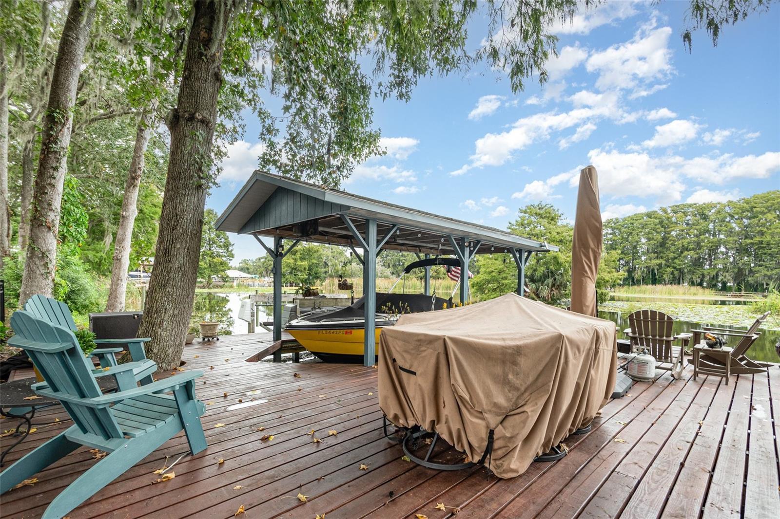Welcome to 10417 Cypress Road, Leesburg – where waterfront freedom meets modern comfort. This 4-bedroom, 3-bathroom home sits directly on Haines Creek, your gateway to the Harris Chain of Lakes. With a covered boat dock and lift plus a separate lift for jet skis, your weekends are set for fishing, cruising, and pure lake-life living. Inside, the home balances style and function. The primary suite is a private retreat with a fully remodeled spa-inspired bathroom featuring a relaxing garden tub, upgraded dual vanities with designer lighting, a gorgeous walk-in shower with superior fixtures, and a separate water closet for privacy. The split floor plan offers three additional bedrooms and two more full baths, perfect for family, guests, or a home office. Everyday living is elevated with an indoor laundry room, an oversized driveway for all your vehicles and toys, and the peace of mind that comes with a whole-house water softener and filtration system. Out back, enjoy morning coffee overlooking the water, evenings grilling with friends, or spontaneous rides straight onto the lakes. This property isn’t just move-in ready—it’s move-up ready. 10417 Cypress Road: Waterfront lifestyle. Modern upgrades. Endless adventure. Don’t just live in Florida—live the dream.