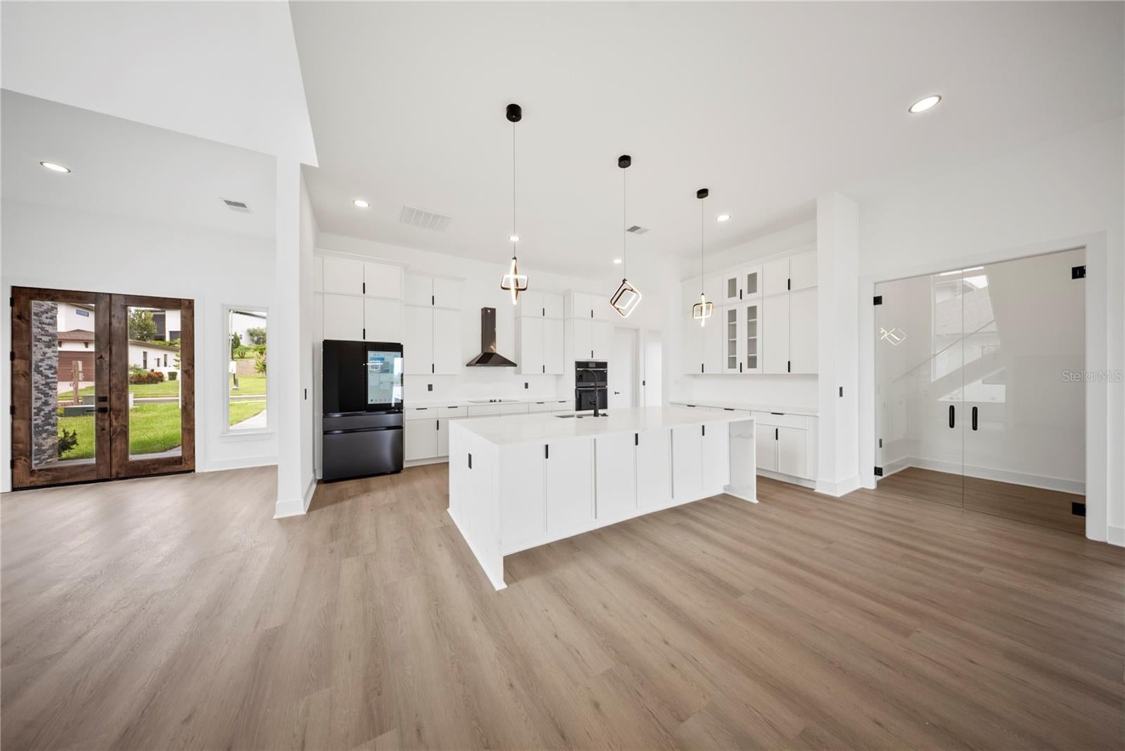 Experience lakefront luxury at its finest in this brand-new, architect-designed residence located in the prestigious, gated community of Water Ridge. This bold and sophisticated home features 4 full ensuite bedrooms, 1 additional full bath, a stylish powder room, a private home office, and an elegant glass-enclosed wine room, all crafted with impeccable attention to detail. The floating glass staircase, soaring ceilings, and sleek finishes create a commanding presence, while two of the suites offer private balconies with tranquil views. The covered outdoor living area is ideal for entertaining or relaxing in style, with pre-installation for a custom pool and summer kitchen. With space to build a private dock in front of the home, and access to the community’s exclusive dock and boat ramp, this property is a dream for those who love boating and waterfront living. The state-of-the-art kitchen is equipped with smart, WiFi-enabled appliances, perfect for modern living. Whether entertaining guests or enjoying a quiet evening at home, every corner of this residence exudes elegance and innovation. Located in Water Ridge, residents enjoy: Two resort-style pools + lap pool Four lighted tennis courts Private boat/RV storage Scenic nature trails and a recreation field Modern fitness center with wellness classes Gated privacy with convenient access to major highways, upscale dining, and shopping This home redefines Florida luxury living, refined, rare, and ready for you.