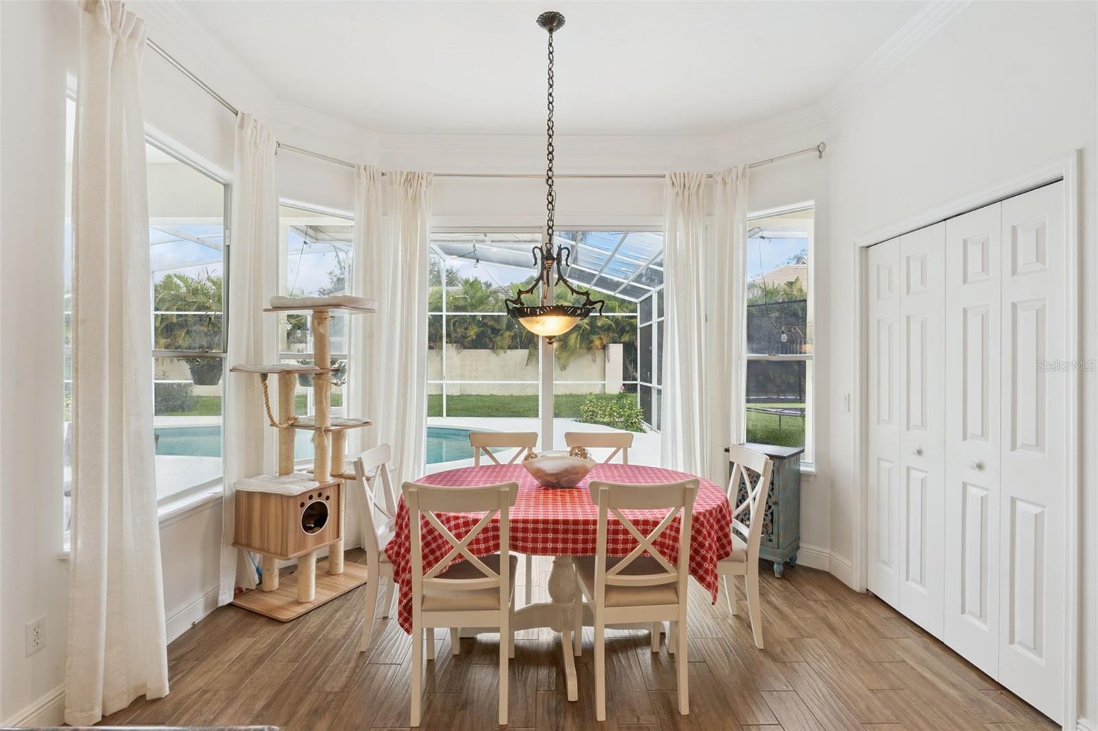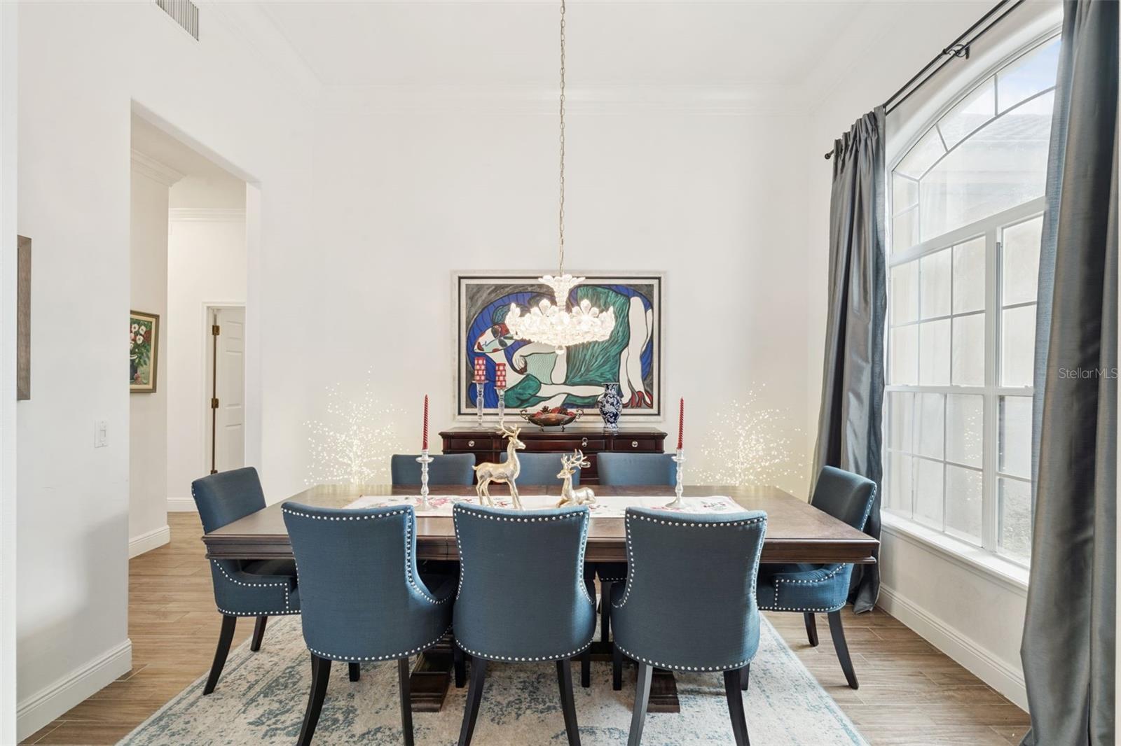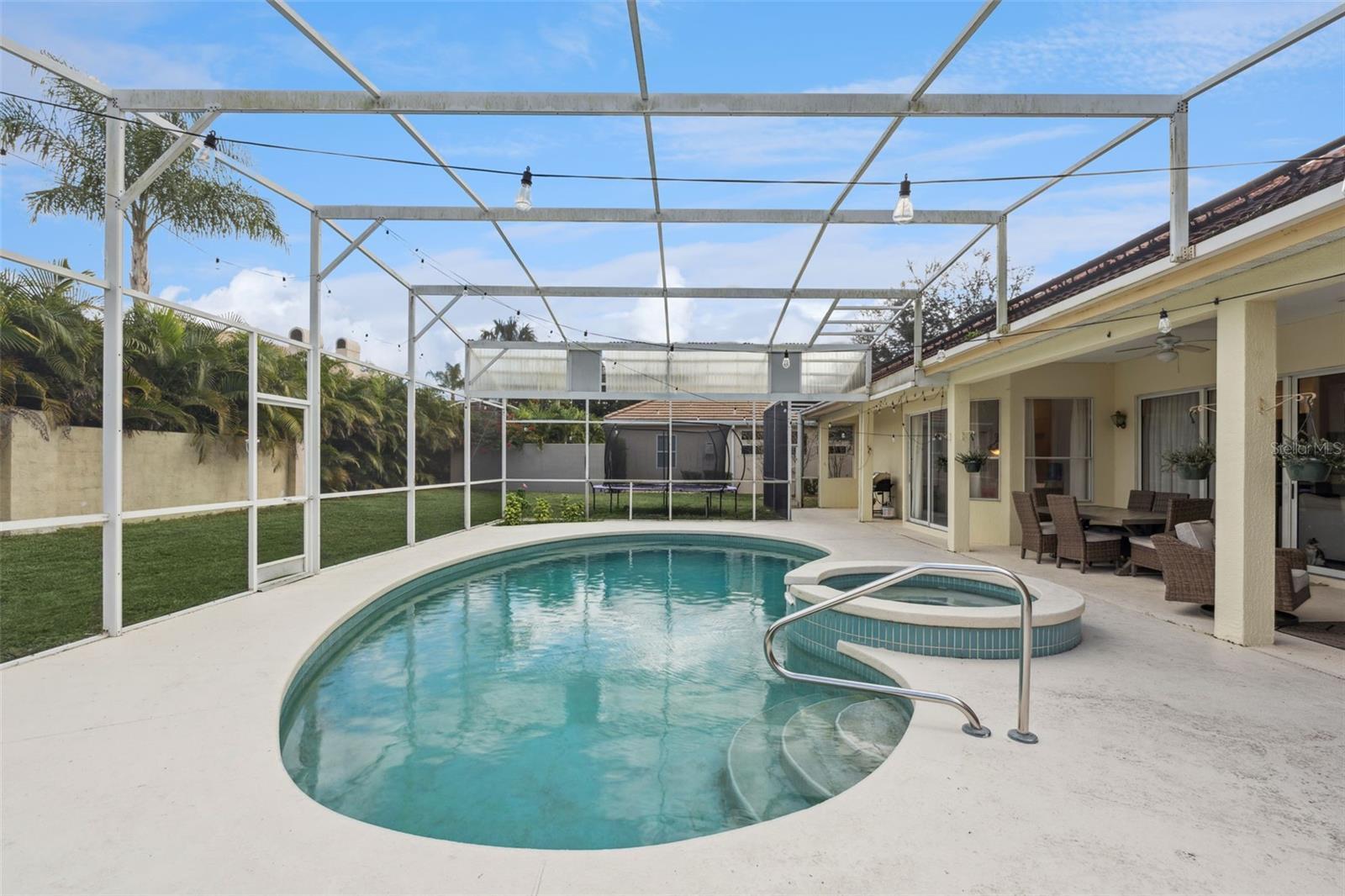 Heathrow Custom Built Pool Home located in the Exclusive Breckenridge Heights neighborhood. This home features 4 Bedrooms Plus an Office, 3 Bathrooms, and a 3 Car Side Entry Garage. Brand New Tile Roof to be installed prior to close. Single Story home with circular driveway. As you enter the foyer, you have the Study to the left and the formal dining room to the right. Great Room straight ahead featuring crown molding, wood burning fireplace, and new porcelain tile flooring throughout. Gourmet Kitchen with Granite Countertops and Stainless Steel appliances. Light and Bright Space with windows and sliders lining the back wall which opens to the lanai and pool. Split floorplan with the Primary Suite and the 2nd Bedroom to the left with two more bedrooms to the right of the home. Primary Suite has ample space with sliders to the lanai. Primary bathroom with dual vanities, shower, and jacuzzi tub, two closets. Great outdoor space boasts a screened lanai, pool and spa with both covered and open areas to entertain. Electric Solar wiring installed 2024 reducing the electric bills and lease is assumable. Heathrow is a highly desired gated golf course community with a private Country Club. 18 hole Golf Course designed by Ron Carl just minutes from your front door. Optional memberships include golf, tennis, and social. This home may be under audio and video surveillance. You don't want to miss this great opportunity to own a custom Heathrow home at this attractive price point.