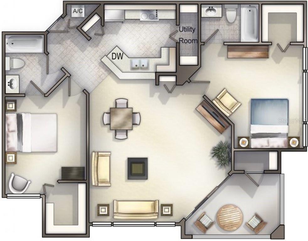 Adorable 2 bedroom, 2 bath condo on the second floor! Open floor plan, split bedrooms, screened porch w/storage closet, walk-in closets in both bedrooms and utility room w/Washer and Dryer! The kitchen is open to the living room/dining area and features a breakfast bar and all appliances EXCEPT a microwave. This wonderful complex has resort style living. At the heart of Allegro Palm's 15 acres is a beautiful lake and fountains that light up at night. The clubhouse is a great place to sit & relax, or can be rented for special occasions. A complete exercise facility w/ TV has 24-hour access. The recreational complex features 2 oversize pools, tennis court, basketball court, pet walks & grilling areas. Don't miss out on this one - come see today! EQUAL HOUSING OPPORTUNITY