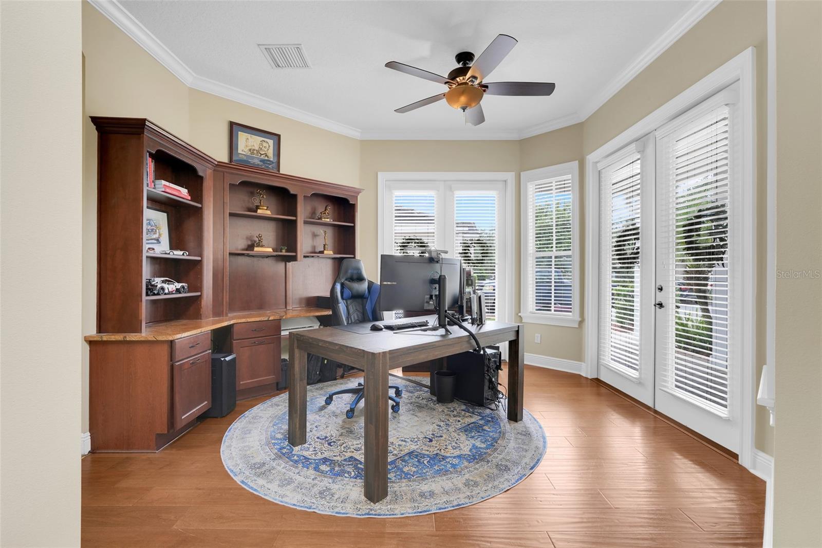- Built-in Features, Cathedral Ceiling(s), Coffered Ceiling(s), Crown Molding, Primary Bedroom Main Floor, Solid Surface Counters, Tray Ceiling(s), Vaulted Ceiling(s), Walk-In Closet(s), Window Treatments