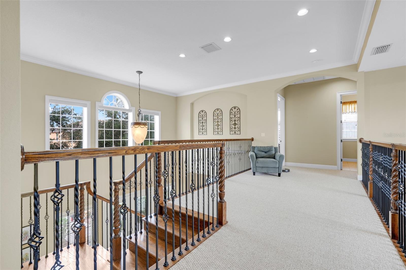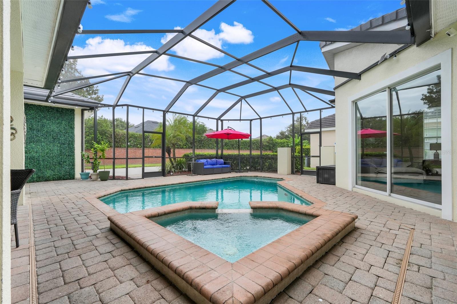Welcome to 7545 Lake Albert Drive. Where timeless architecture meets modern luxury. Nestled on an expansive lot in one of Windermere's most sought after communities, this stunning estate offers the perfect balance of privacy, comfort, and resort-style living just minutes from Walt Disney World and the best of Central Florida. Arrive via a long, elegant driveway, framed by lush landscaping, leading to a spacious rear detached garage connected by a breezeway. This meticulously maintained estate features a NEW ROOF, ensuring both peace of mind and long-term value. Step inside and be greeted by an oversized foyer and soaring ceilings, filling the home with natural light throughout. A wooden staircase with wrought iron accents adds a touch of elegance, while the open layout seamlessly connects living, dining, and entertaining spaces. The gourmet gas kitchen is a chef's dream, featuring granite countertops, custom solid wood cabinetry with crown molding, a center island, and upgraded finishes. A convenient powder room on the main level ensures effortless entertaining. The primary suite, located on the first floor, is a private retreat with direct pool access. The spa-like primary bath includes a walk-in shower, soaking tub, and dual vanities. Upstairs, you'll find three additional bedrooms and two full bathrooms including a private en suite, plus a catwalk overlooking both living spaces below. Outdoor living is a true highlight with multiple covered spaces, including a front porch and screened in pool. The poolside exterior bathroom adds convenience for seamless indoor-outdoor living. The summer kitchen is perfect for entertaining with a built-in gas grill, sink, refrigerator, and storage, plus a breezeway patio and fire pit area. Permanent Govee lighting sets the mood for unforgettable evenings spent under the stars. The community features Lake Burden pier for fishing, beautifully maintained parks, playground, and tennis courts for active living and recreation. This home delivers the full Florida lifestyle whether you're hosting poolside gatherings, unwinding in the private backyard, enjoying community amenities at Lake Burden and the tennis courts, exploring Windermere's lakes and boutique shops, or experiencing world-class attractions like Walt Disney World just minutes away.