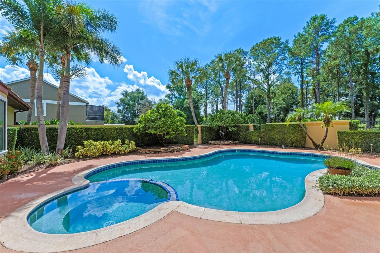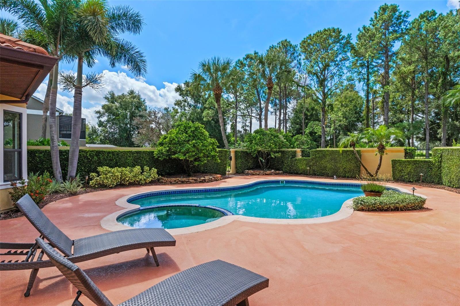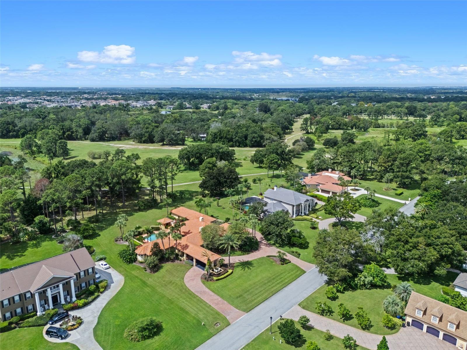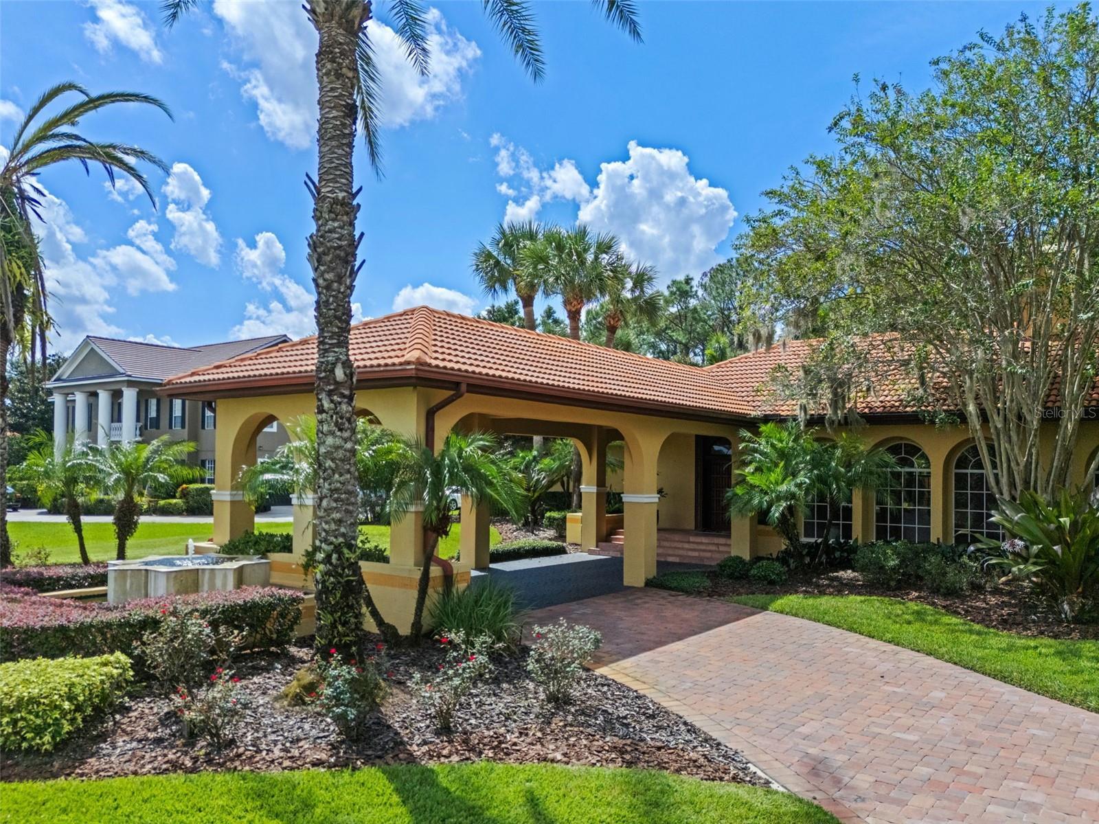 This one-of-a-kind estate in the gated Windermere Club combines timeless elegance with rare features seldom found in the area, including four garage bays—one of them separate from the rest, with an adjoining flex space that can serve as a gym, studio, or easily transform into private guest quarters or multigenerational living. A porte cochere and sweeping circular drive create a striking first impression and lead to an inviting foyer that opens to gracious formal living and dining rooms, perfect for entertaining. The primary suite is a private sanctuary, designed with pool views, a spacious sitting area, and a vestibule entry that includes a small room ideal for an office nook or personal retreat. The spa-inspired bath is beautifully appointed with dual vanities, a soaking tub, and an oversized walk-in shower, while two custom closets provide abundant storage. Equally thoughtful are the secondary bedrooms, each with its own en-suite bath. They are arranged along a wide hallway that can be closed off entirely, creating a separate wing that offers privacy and comfort for family or guests. At the heart of the home, the gourmet kitchen is both a showpiece and gathering place, featuring an expansive island, custom cabinetry, and intricate tilework beneath a statement hood, with a barn-style door leading to the pantry. The utility room includes built-in cabinetry and a utility sink for added convenience, while the family room offers relaxed living space with views that draw you outdoors. Just beyond, a patio with a charming wood trellis extends the living space and creates a perfect spot for quiet moments or intimate gatherings. The backyard was designed for resort-style living, with a sparkling pool and spa, dedicated pool bath, screened lanai, and a summer kitchen perfect for dining al fresco. Framed by lush green space and the peaceful backdrop of the former Windermere Club golf course, this residence offers a sense of privacy and serenity while being just minutes from top-rated schools, dining, shopping, and all that makes Windermere one of Central Florida’s most desirable communities.