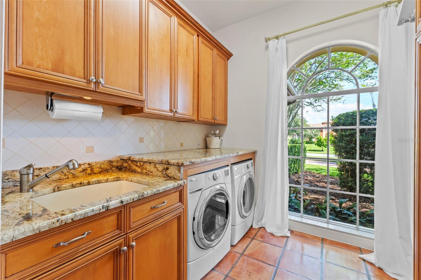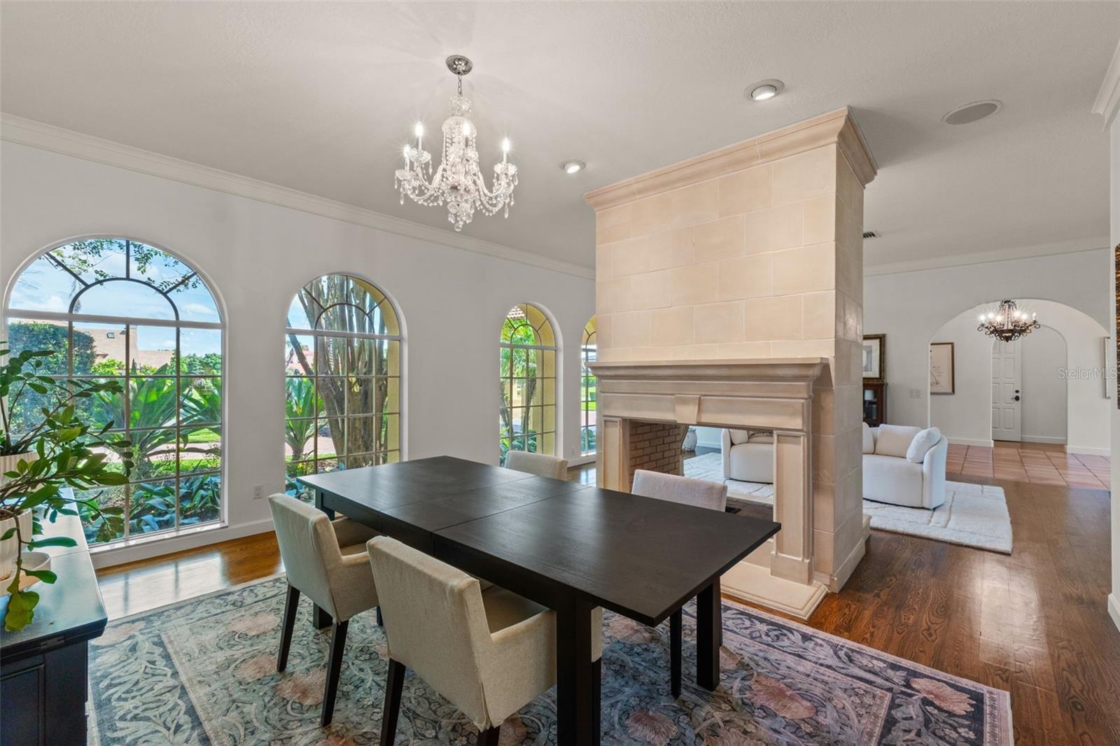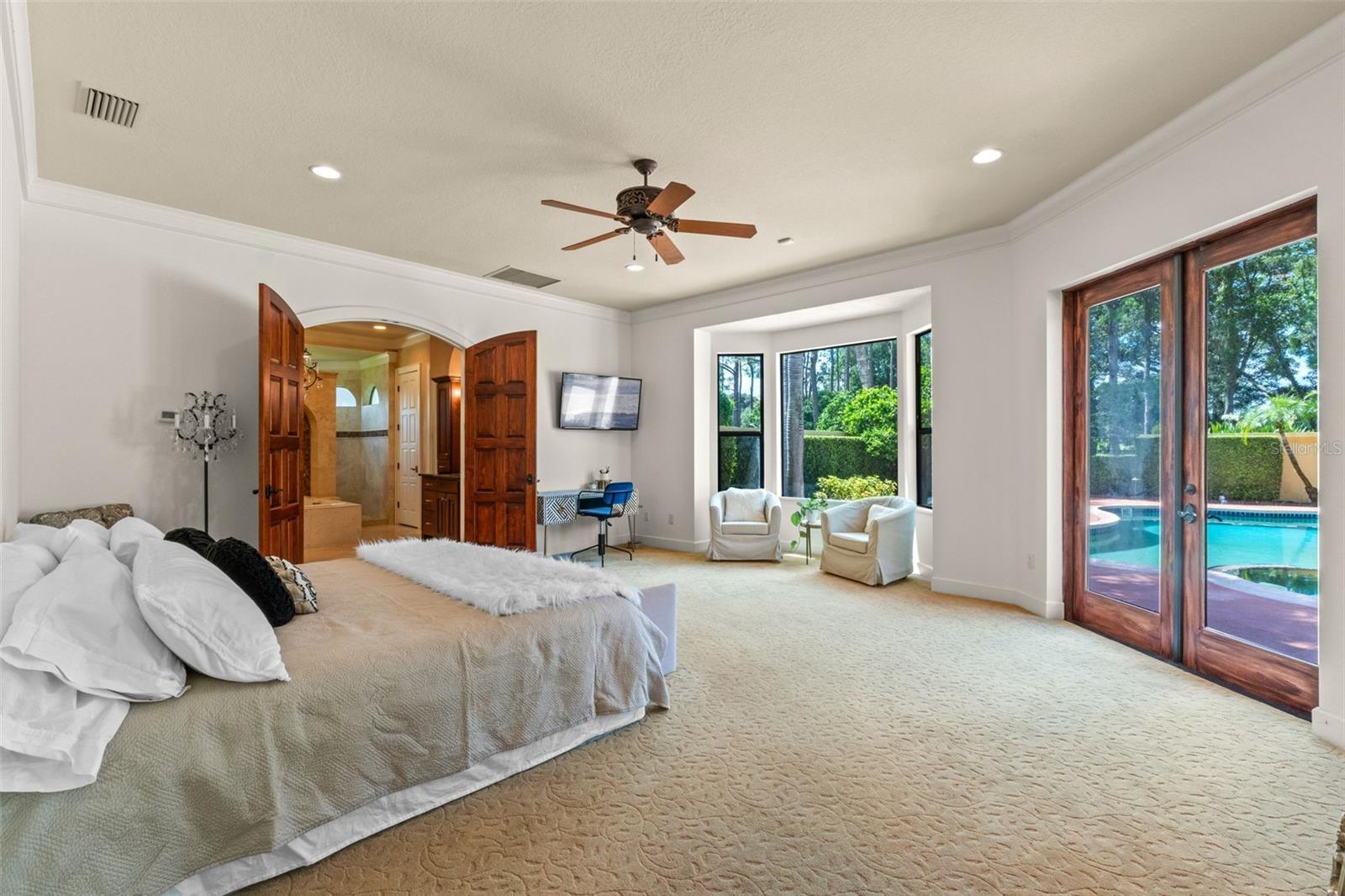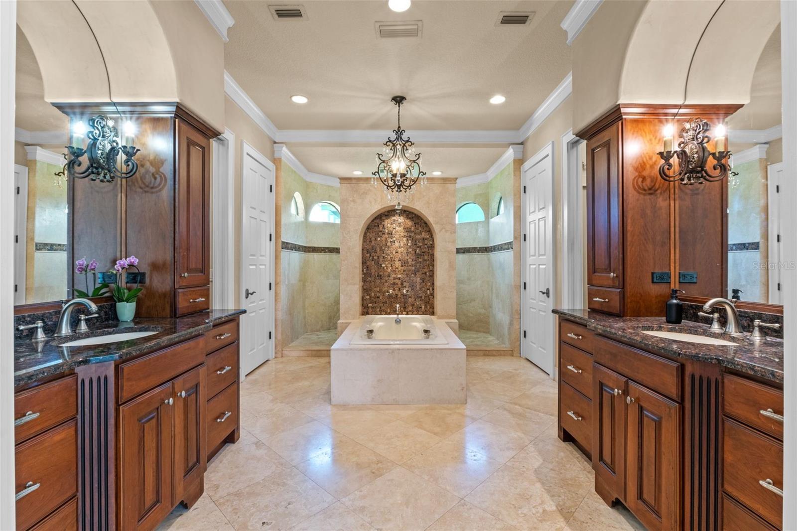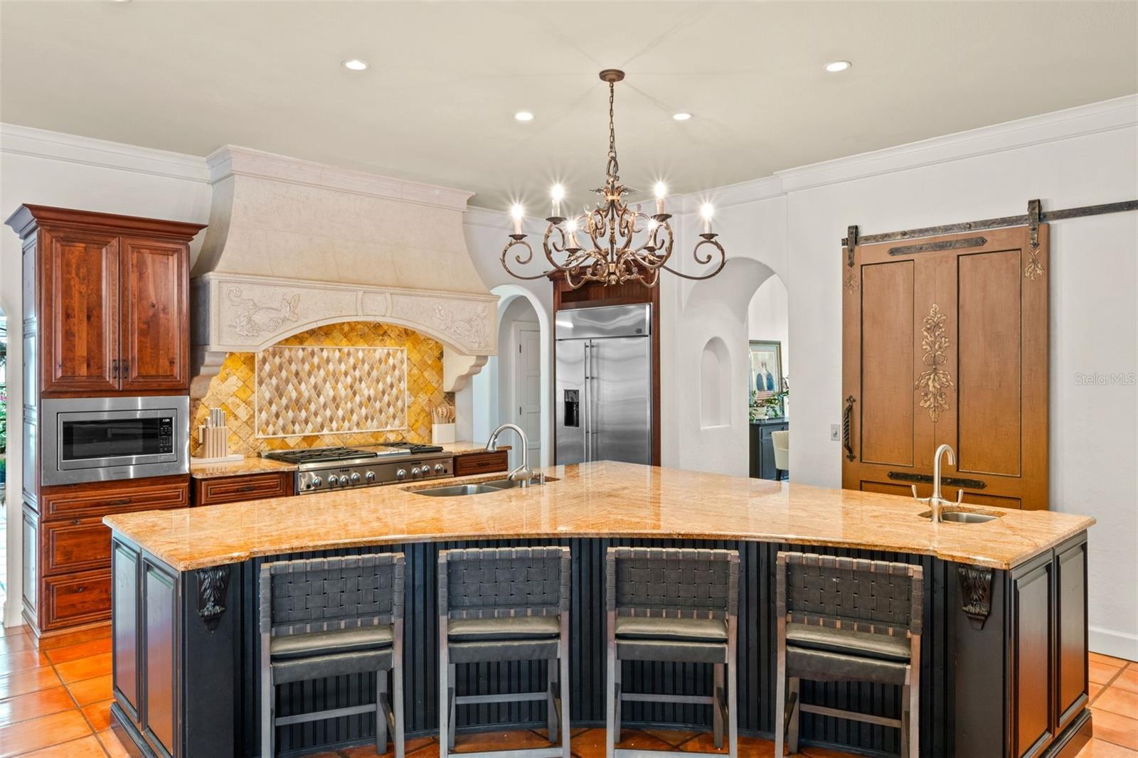 This one-of-a-kind estate in the gated Windermere Club combines timeless elegance with rare features seldom found in the area, including four garage bays—one of them separate from the rest, with an adjoining flex space that can serve as a gym, studio, or easily transform into private guest quarters or multigenerational living. A porte cochere and sweeping circular drive create a striking first impression and lead to an inviting foyer that opens to gracious formal living and dining rooms, perfect for entertaining. The primary suite is a private sanctuary, designed with pool views, a spacious sitting area, and a vestibule entry that includes a small room ideal for an office nook or personal retreat. The spa-inspired bath is beautifully appointed with dual vanities, a soaking tub, and an oversized walk-in shower, while two custom closets provide abundant storage. Equally thoughtful are the secondary bedrooms, each with its own en-suite bath. They are arranged along a wide hallway that can be closed off entirely, creating a separate wing that offers privacy and comfort for family or guests. At the heart of the home, the gourmet kitchen is both a showpiece and gathering place, featuring an expansive island, custom cabinetry, and intricate tilework beneath a statement hood, with a barn-style door leading to the pantry. The utility room includes built-in cabinetry and a utility sink for added convenience, while the family room offers relaxed living space with views that draw you outdoors. Just beyond, a patio with a charming wood trellis extends the living space and creates a perfect spot for quiet moments or intimate gatherings. The backyard was designed for resort-style living, with a sparkling pool and spa, dedicated pool bath, screened lanai, and a summer kitchen perfect for dining al fresco. Framed by lush green space and the peaceful backdrop of the former Windermere Club golf course, this residence offers a sense of privacy and serenity while being just minutes from top-rated schools, dining, shopping, and all that makes Windermere one of Central Florida’s most desirable communities.
