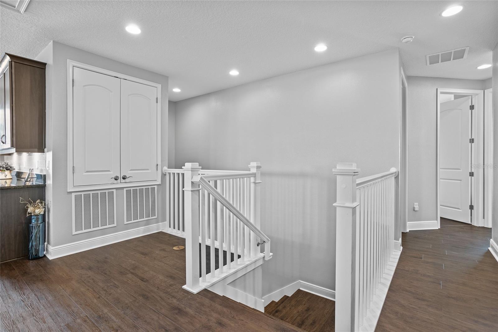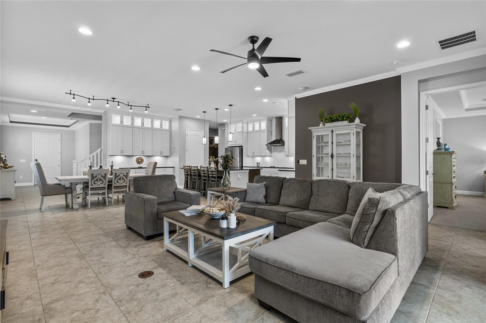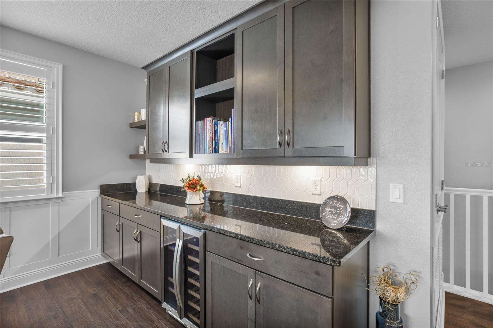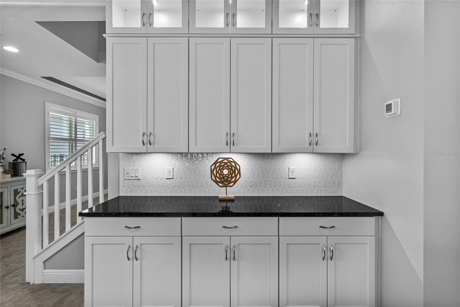 - Built-in Features, Ceiling Fans(s), Chair Rail, Crown Molding, Dry Bar, Eat-in Kitchen, Open Floorplan, Primary Bedroom Main Floor, PrimaryBedroom Upstairs, Smart Home, Solid Wood Cabinets, Stone Counters, Walk-In Closet(s), Window Treatments