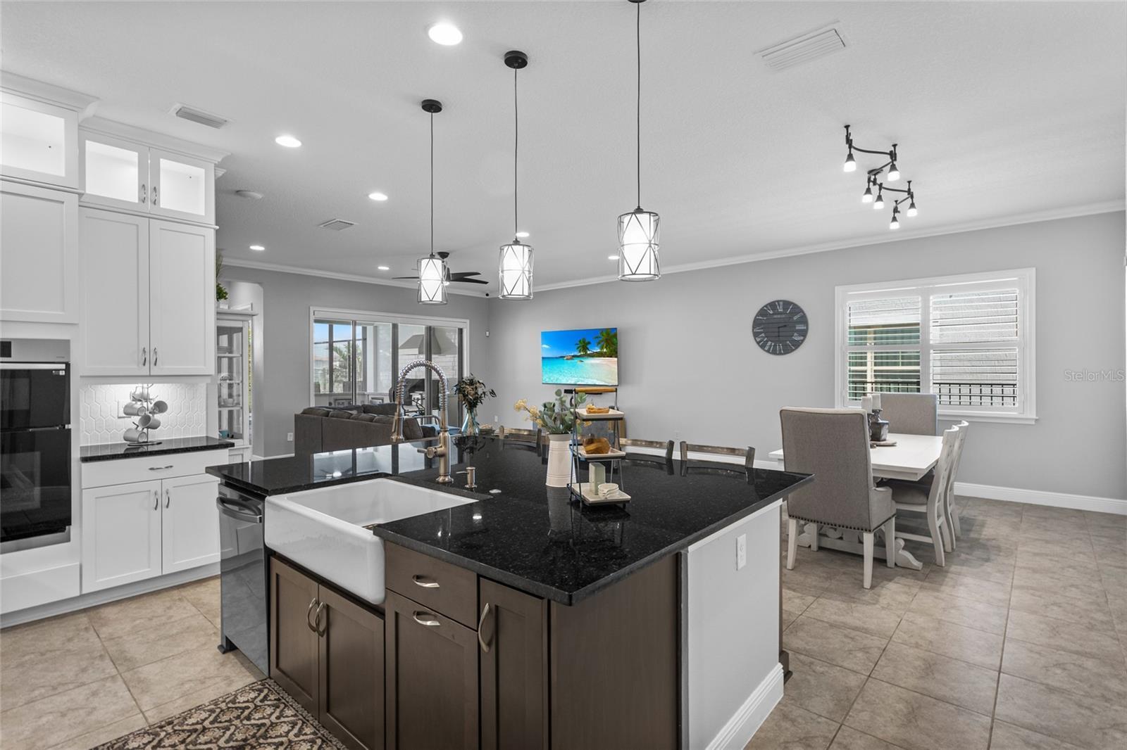 Welcome to 13857 Larkton Lane, a stunning luxury residence in the distinguished gated community of Eagle Creek, where resort-style amenities include a championship golf course, sparkling pools, tennis courts, a clubhouse, fitness center, playgrounds, and miles of scenic trails. This elegant home seamlessly blends sophistication, comfort, and functionality, offering 5 spacious bedrooms, 5 full bathrooms, and the rare convenience of DUAL primary suites—one located on the first floor and another on the second. Inside, the home has been thoughtfully updated with fresh interior paint, custom wall panels in the loft and primary bath, crown molding, and luxury vinyl plank flooring installed in 2024 throughout the staircase, loft, and one of the secondary bedrooms. The gourmet kitchen is a culinary haven, upgraded in 2024 with a custom backsplash, cabinetry, premium fixtures, and top-of-the-line appliances, including dual ovens with smart features. Natural light fills the open living spaces, complemented by plantation shutters throughout the home for both elegance and privacy. Additional conveniences include DUAL laundry rooms on each floor, a spacious loft with balcony access, and private balconies off bedrooms 3 and 4. The primary suites each feature generous walk-in closets, with one designed to include a built-in vanity. The home also received extensive electrical upgrades in 2025, including pantry and in-wall wiring outlets, LED lighting around the exterior, trimming lights, and new light fixtures and ceiling fans, enhancing both style and efficiency. The outdoor living space is truly a tranquil hideaway! A saltwater pool and spa with smart controls and an upgraded filtration system invite year-round relaxation, while the expansive, repaved patio and pool deck are enclosed by a full screen cage. The paradise outdoor kitchen, complete with a built-in grill and wine fridge, is perfect for entertaining. Designed for maximum enjoyment with minimal upkeep, the backyard features low-maintenance landscaping and efficient drainage and irrigation system—creating the ultimate entertainment retreat without the hassle of constant yard work. A second-floor covered balcony provides the ideal spot for morning coffee or evening cocktails, while the newly installed six-foot iron fence and privacy plants ensure both beauty and seclusion. Additional highlights include a garage outfitted in 2025 with an overhead and wall rack system, smart home upgrades throughout, and a newly enhanced sprinkler system to keep the grounds pristine. Every inch of this home has been carefully curated to create a perfect blend of modern upgrades and timeless elegance. More than just a home, 13857 Larkton Lane is a lifestyle! Situated just minutes from Lake Nona, Medical City, top-rated schools, premier shopping, dining, and Orlando International Airport, this residence offers the very best in luxury living in one of Orlando’s most sought-after communities.