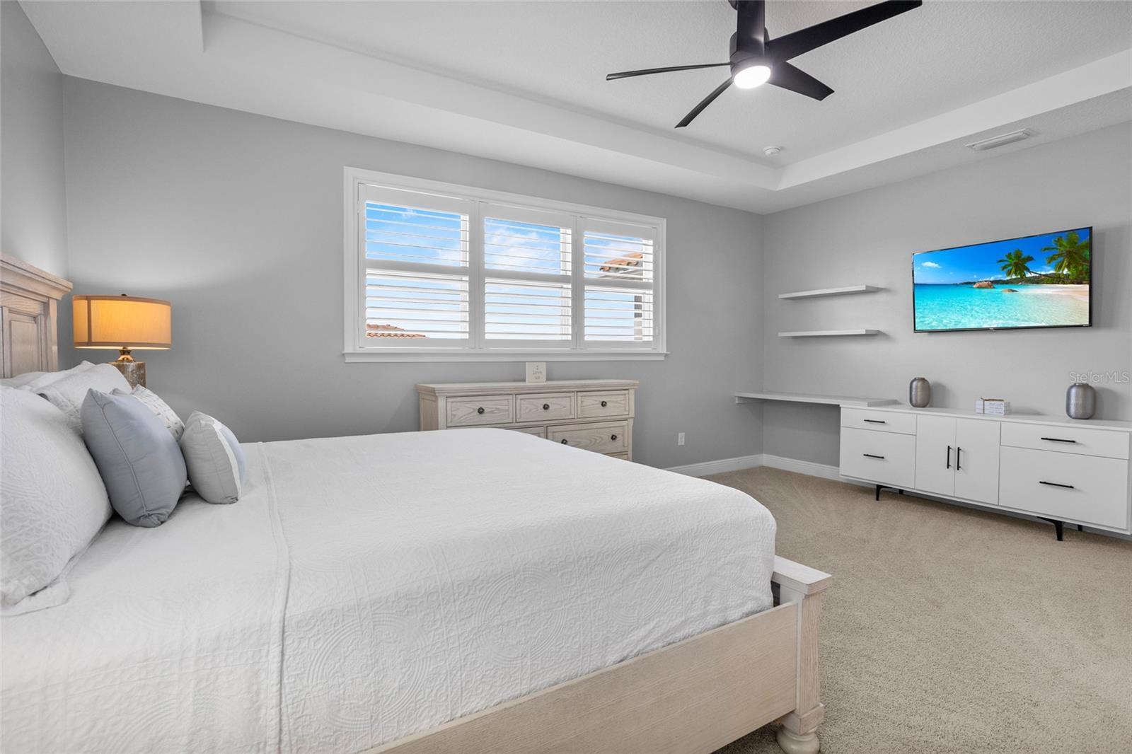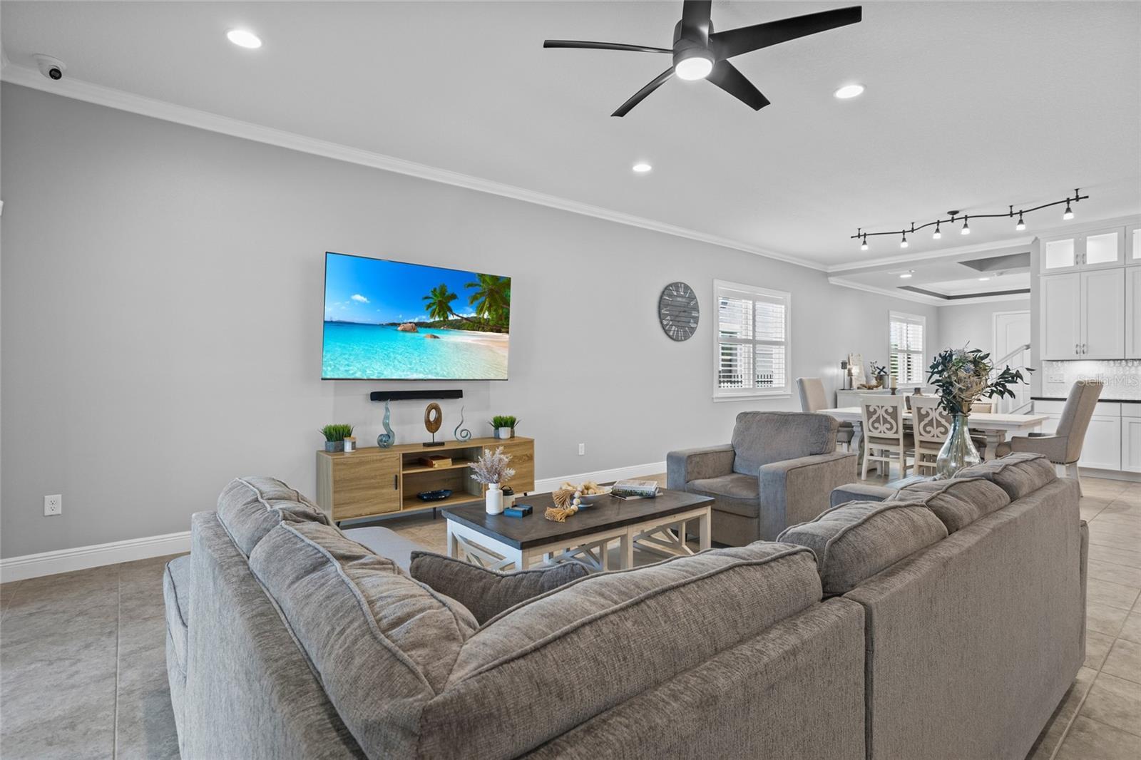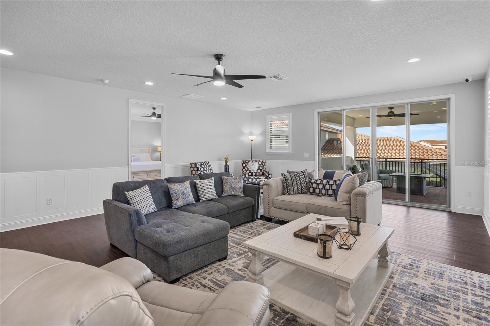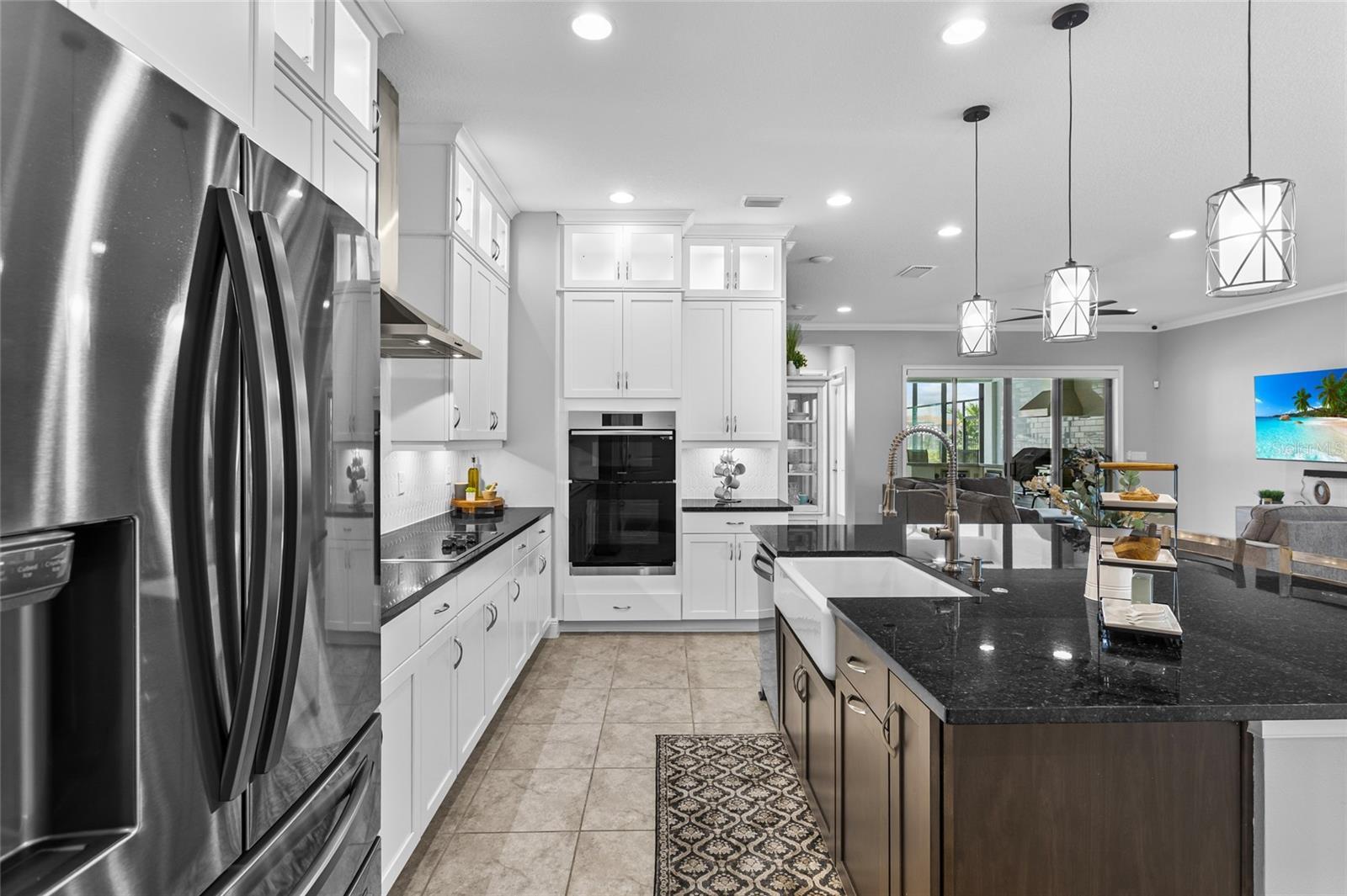A home that balances luxury, function, and timeless appeal. Thoughtfully curated and impeccably designed, this five-bedroom, five-bath residence features dual Primary suites on separate levels, two laundry rooms—one upstairs and one downstairs—and a layout created for elevated, effortless living. The fully updated gourmet kitchen anchors the home with custom cabinetry, a designer backsplash, premium fixtures, and dual smart ovens, flowing seamlessly into open, light-filled living spaces ideal for both everyday comfort and refined entertaining. Luxury vinyl plank flooring installed in 2024 enhances the staircase and entire second story, while custom built-ins, crown molding, fresh interior paint, and plantation shutters add depth, warmth, and sophistication throughout. Multiple private balconies extend the living space outdoors, creating quiet retreats for morning coffee or evening relaxation. The outdoor living experience is truly resort-inspired, featuring a saltwater pool and spa with smart controls, a fully equipped outdoor kitchen with built-in grill and wine refrigerator, and decorative landscape lighting that beautifully illuminates the backyard and wraps the home in an inviting glow. Designed for enjoyment with minimal upkeep, the backyard offers low-maintenance landscaping, efficient drainage, and an upgraded irrigation system, all enclosed by a full screen cage and enhanced with a six-foot iron fence and privacy plantings. Extensive electrical upgrades completed in 2025 include designer lighting, exterior LED accents, in-wall wiring, new fixtures, and ceiling fans throughout, while the upgraded garage features overhead and wall-mounted storage systems for optimal organization. Located within the gated community of Eagle Creek, residents enjoy access to championship golf, resort-style pools, tennis courts, a clubhouse, fitness center, playgrounds, and miles of scenic trails, all just minutes from Lake Nona, Medical City, top-rated schools, premier shopping, dining, and Orlando International Airport—making 13857 Larkton Lane a rare blend of luxury, functionality, and lifestyle.