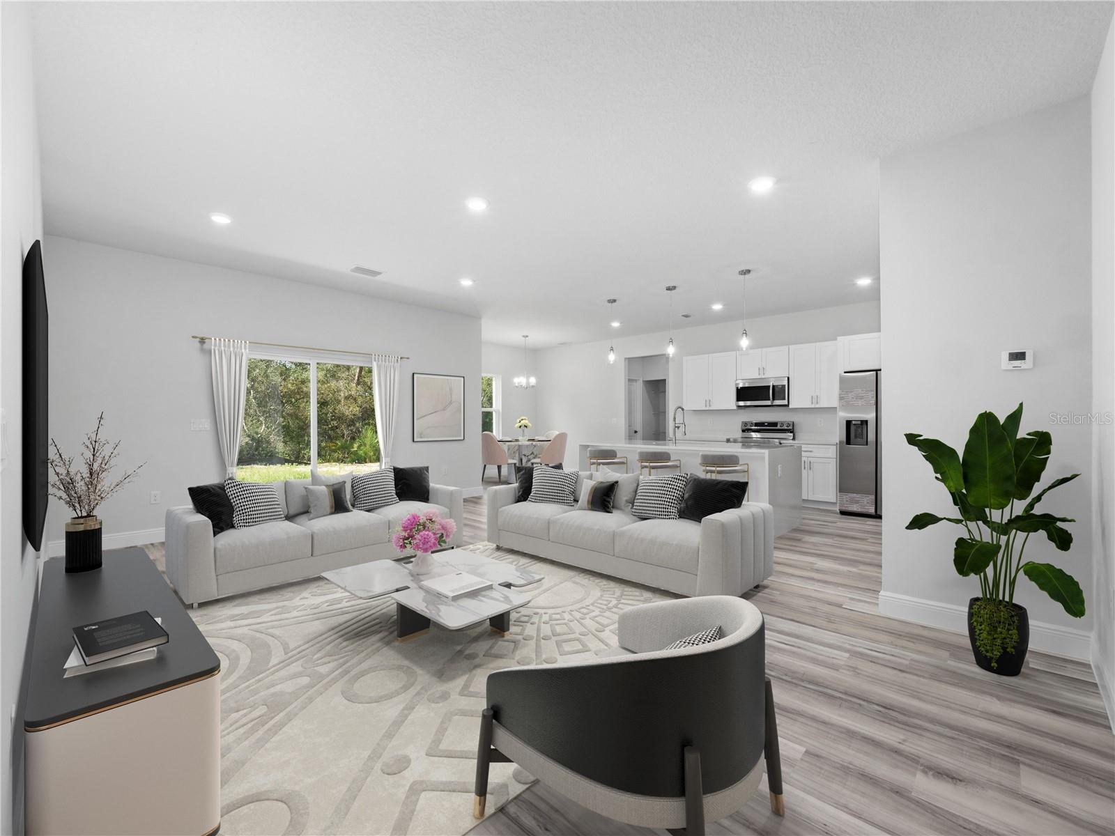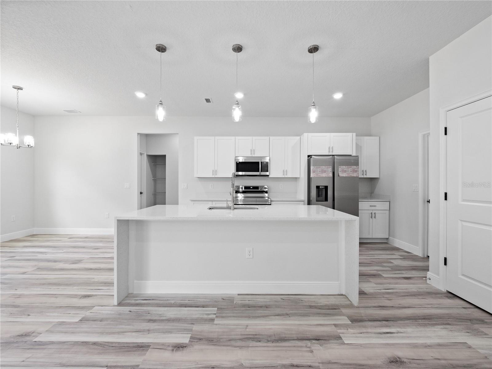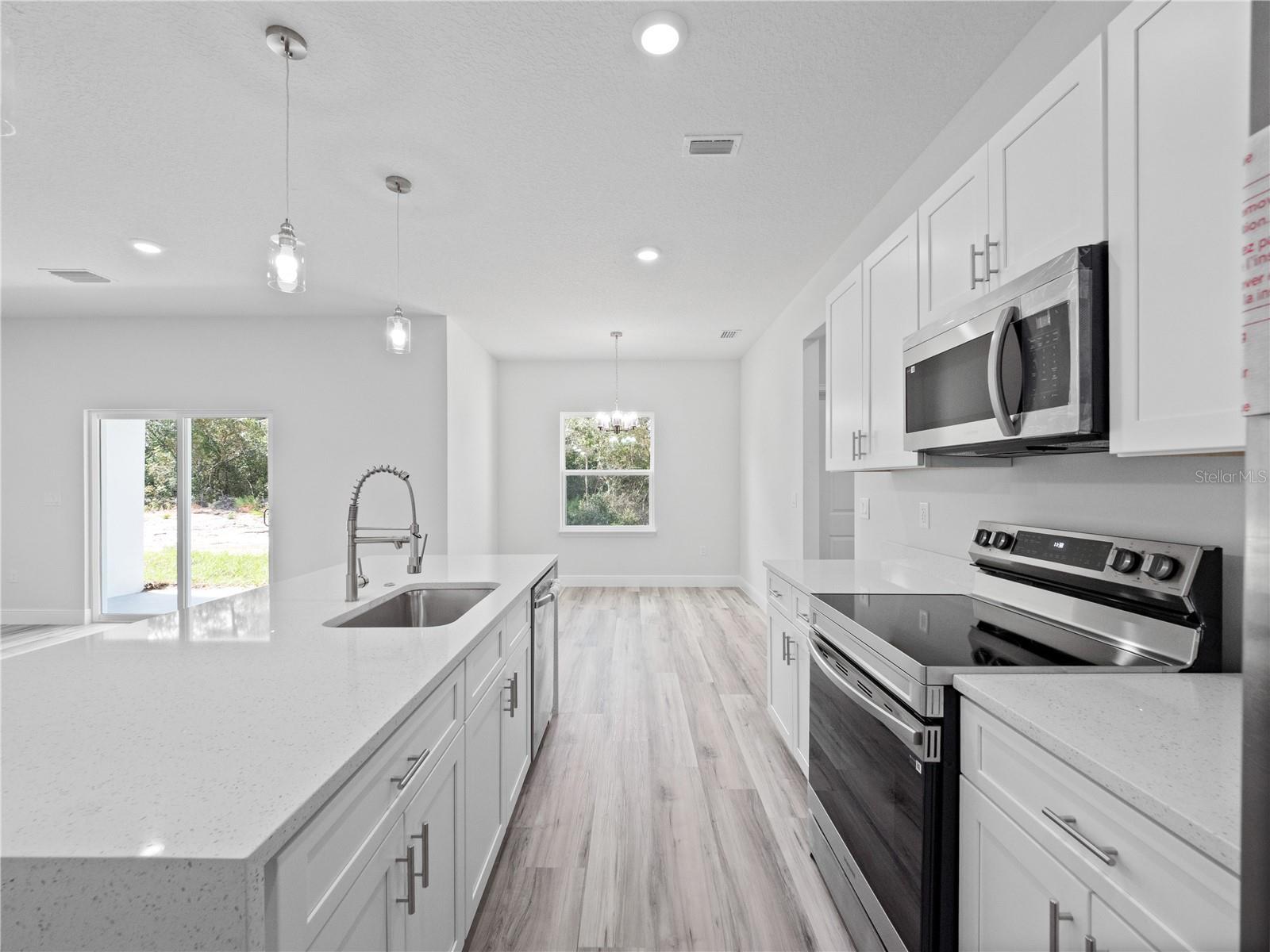 One or more photo(s) has been virtually staged. Beautiful New Rental in Ocala! This modern 4-bedroom, 3-bath home with a versatile Den/Office offers style and comfort in every detail. The open concept floor plan showcases 9-ft ceilings, recessed lighting, and durable laminate flooring throughout the main living spaces. A chef's kitchen awaits with a striking waterfall island, pendant lighting, soft-close cabinetry, Whirlpool stainless steel appliances, and a dedicated coffee bar. The primary suite provides a spa-inspired retreat with a walk-in shower, soaking tub, and a spacious walk-in closet. Additional features include a convenient linen closet, inviting front porch, and a covered back porch ideal for outdoor gatherings. Nestled in the heart of Ocala, the Horse Capital of the World, this home is move-in ready so schedule your tour TODAY!