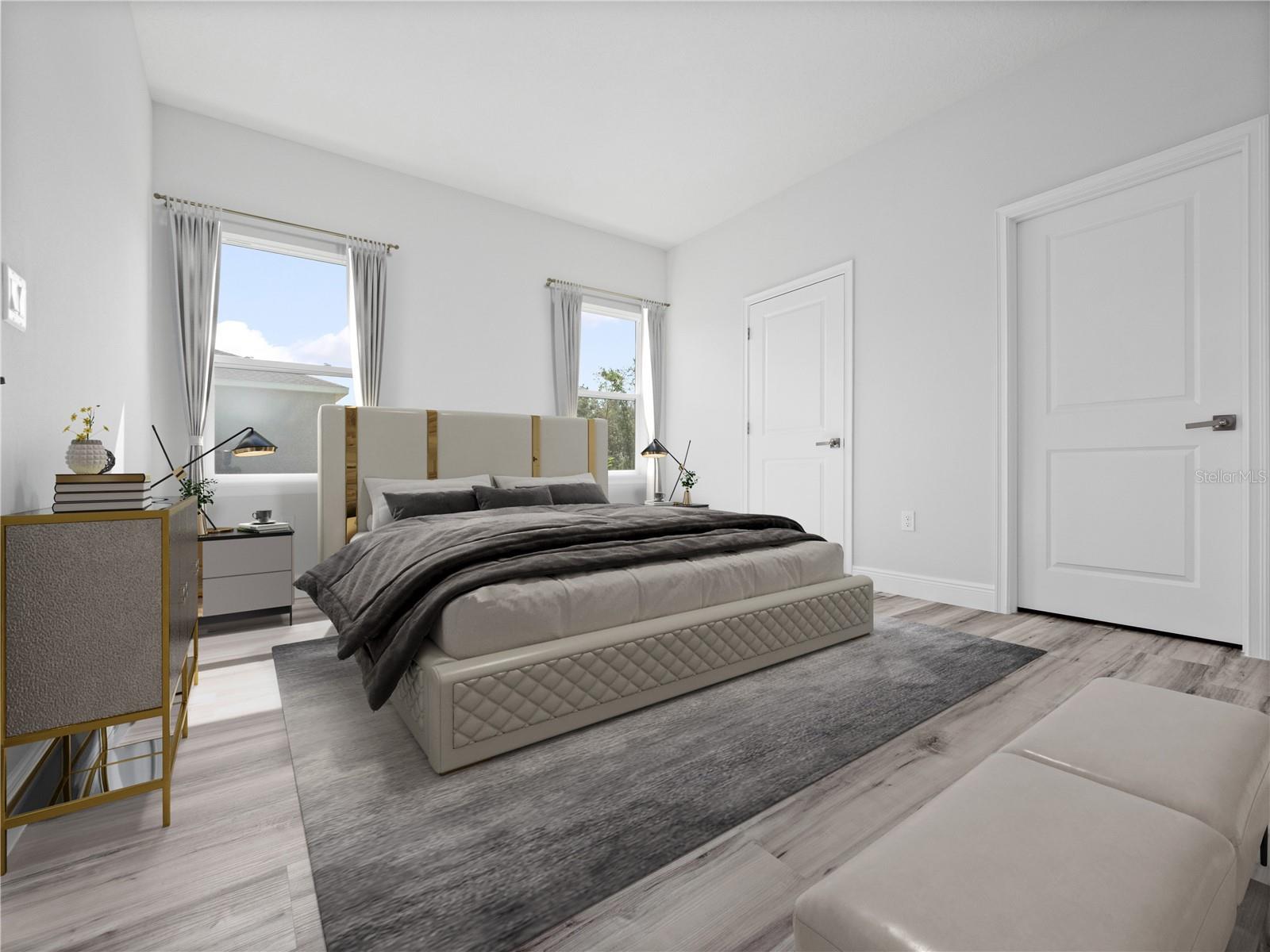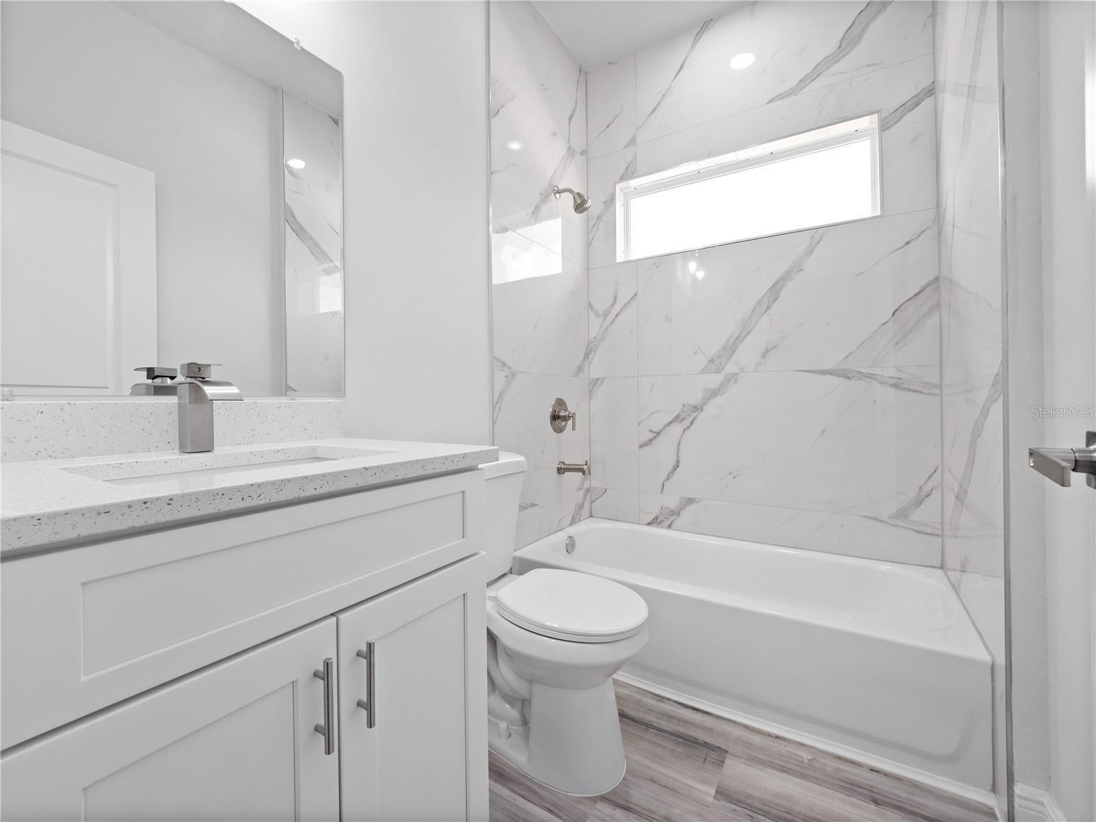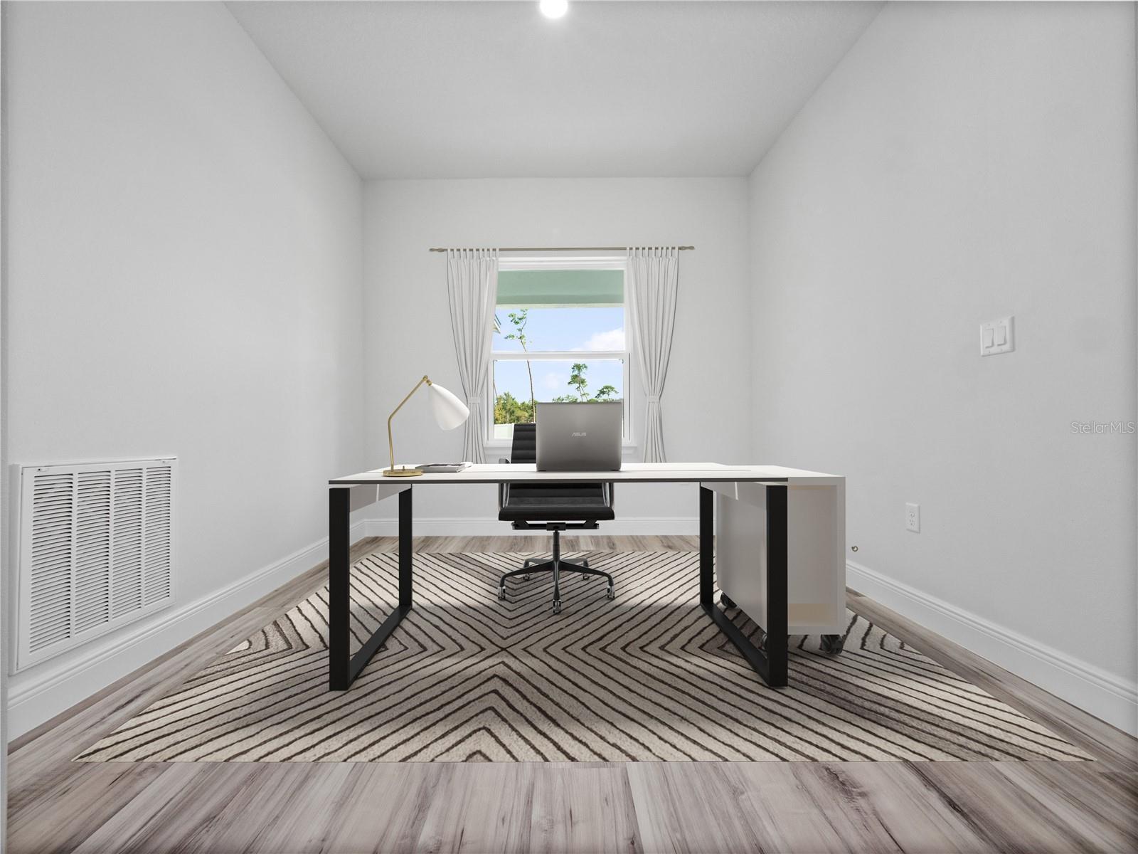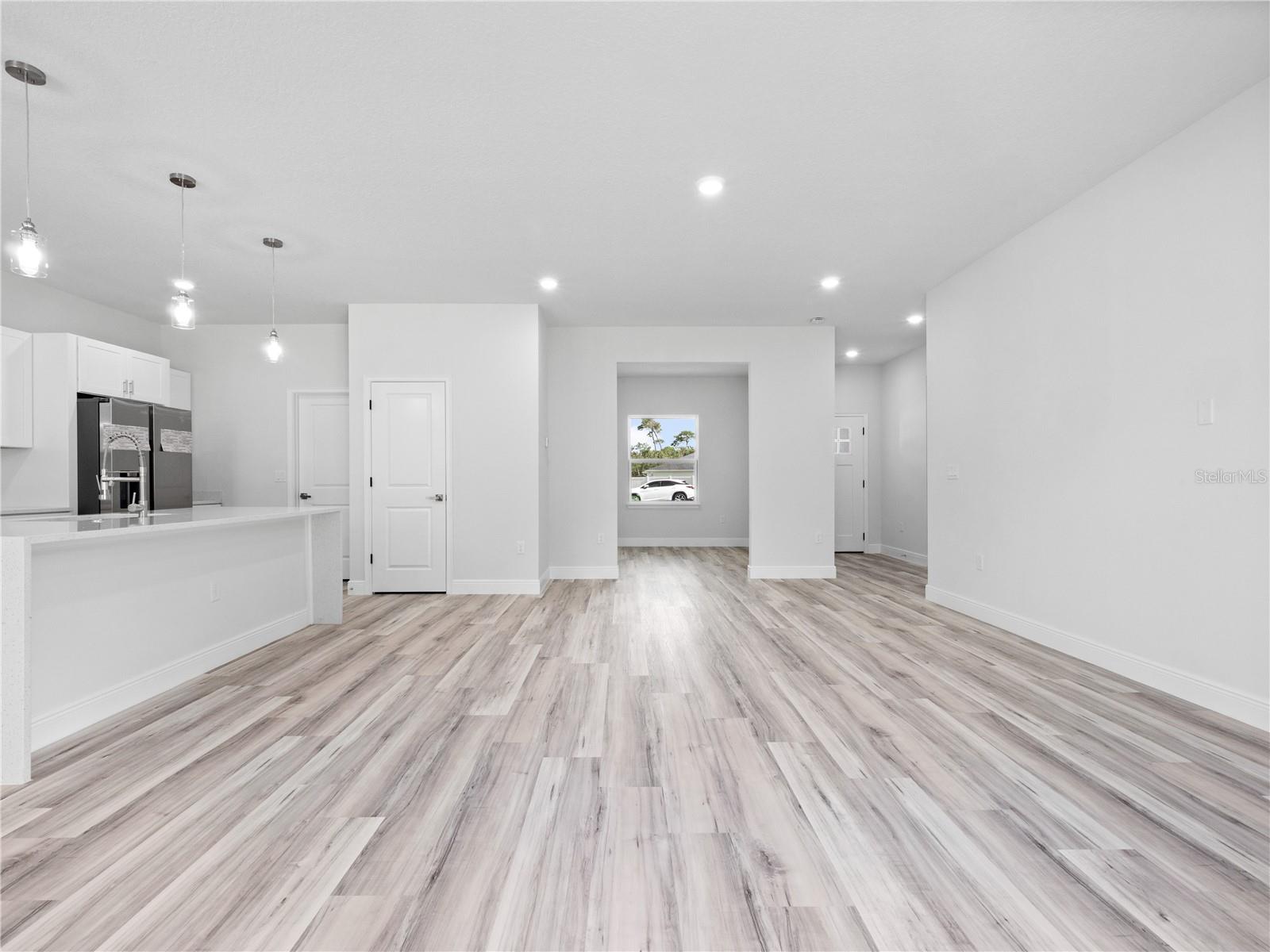 One or more photo(s) has been virtually staged. Beautiful New Rental in Ocala! This modern 4-bedroom, 3-bath home with a versatile Den/Office offers style and comfort in every detail. The open concept floor plan showcases 9-ft ceilings, recessed lighting, and durable laminate flooring throughout the main living spaces. A chef's kitchen awaits with a striking waterfall island, pendant lighting, soft-close cabinetry, Whirlpool stainless steel appliances, and a dedicated coffee bar. The primary suite provides a spa-inspired retreat with a walk-in shower, soaking tub, and a spacious walk-in closet. Additional features include a convenient linen closet, inviting front porch, and a covered back porch ideal for outdoor gatherings. Nestled in the heart of Ocala, the Horse Capital of the World, this home is move-in ready so schedule your tour TODAY!