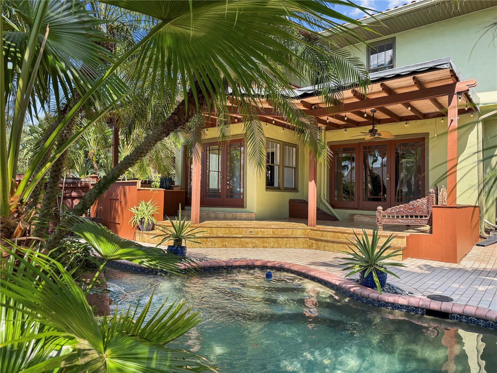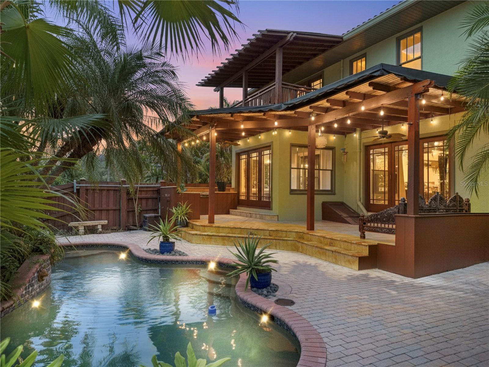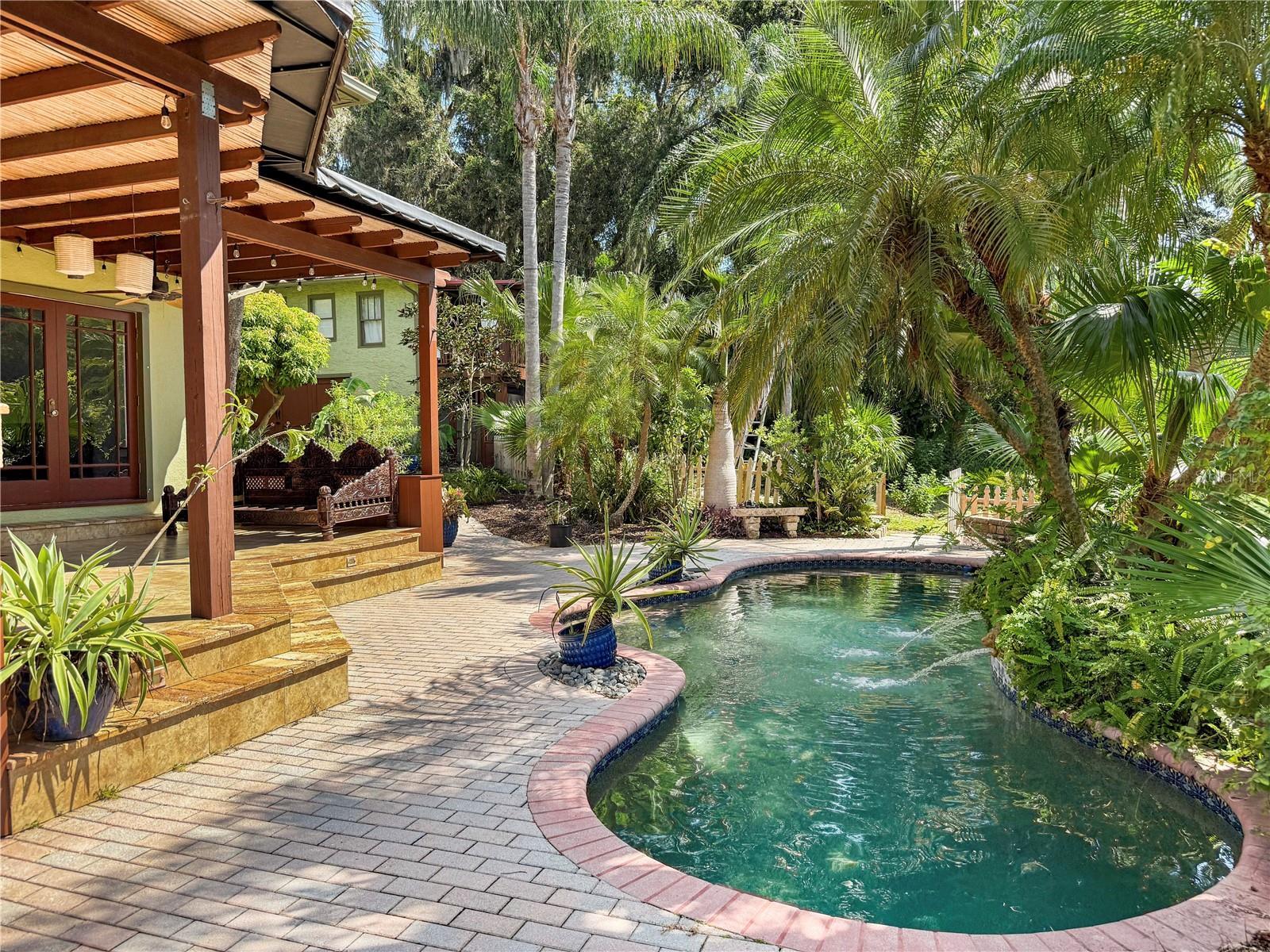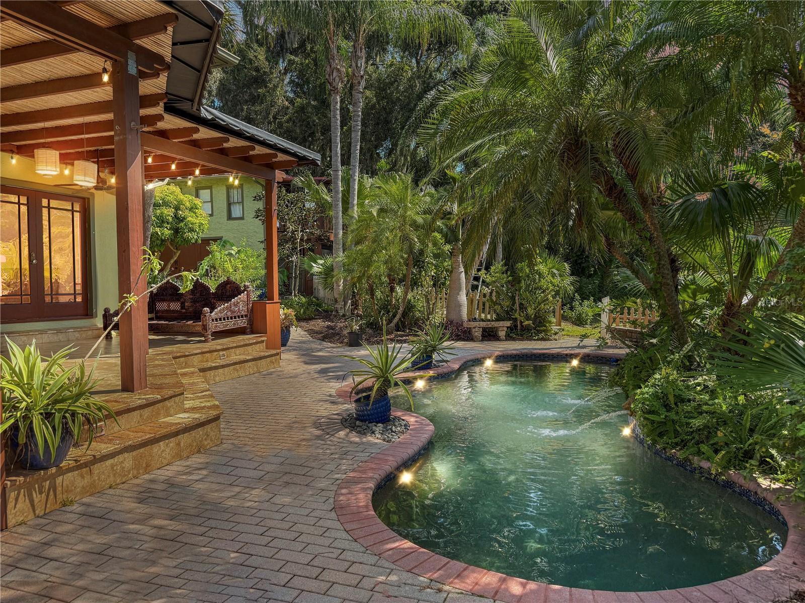 Under contract-accepting backup offers. HISTORIC LAKEVIEW POOL HOME with GUEST HOUSE! Nestled hillside with panoramic views of Lake Minnehaha, this 1925 Mediterranean Revival home is art in its truest form. This early 20th century architectural style was used by developers to promote luxury, influenced by coastal villas and palaces in both Italy and Spain. Beautifully constructed with wood lathe and plaster walls and a barrel tile roof, built to stand the test of time. In contrast, this residence added Craftsman elements to include wide tapered columns, large eaves, sash windows and a centrally located Chicago brick fireplace. Richly stained original heart pine floors and hand crafted millwork give this home an organic coziness to savor! The authenticity is priceless, evoking a sense of belonging & leisure with an emphasis on indoor outdoor living. This tropical oasis has been compared to retreats in Costa Rica, Hawaii & even Disney! The grounds are abundant with flowering plants and trees including plumeria, hibiscus, purple iris, angel trumpets, bird of paradise and bougainvillea. Enjoy picking mango, starfruit & bananas in your PJ’s! The backyard also has a flagstone fire pit with bistro lights, screen room with water feature and carriage house that has been used as an open air game room! The 2nd story guest house is a mini version of the main with a front & rear entrance. A large covered balcony with BBQ grill and tiered deck overlooks the terrain. Inside you’ll find the cutest 1 bedroom, 1 bath with a full kitchen living room & laundry. Real wood “birch” floors in a weathered gray gives the space a transitional vibe with the nostalgic style. The main house back porch wraps around with bamboo ceilings and its Summer kitchen can be customized upon request. A dreamy setting for your morning coffee as you're mesmerized by the palms dancing in the wind and the sound of fountains flowing into the quaint lagoon pool. The front entry porch is another great area to hang out with original encaustic tile, pitched tongue and groove ceiling and antique wrought iron chandelier! The view is amazing! Upstairs, the primary suite has a private covered balcony with the best view in town! Enjoy vivid sunsets, storms rolling across the lake and the most spectacular unobstructed starry nights! Every season brings its own unique beauty & experience. 4th of July you can see the fireworks around the entire lake and surrounding areas! Christmas brings the boat parade with Santa and a fun light show! The main residence is your quintessential craftsman with 3 bedrooms 2 baths, a rear kitchen and laundry, oversized dining and family room and everyone’s favorite the sunroom! The home also has a basement AND an attic with a nice wide staircase! The feeling of this home is indescribable, I know because I lived here for 7 years! My hometown street. It has always been beautiful, always quiet, always HOME.