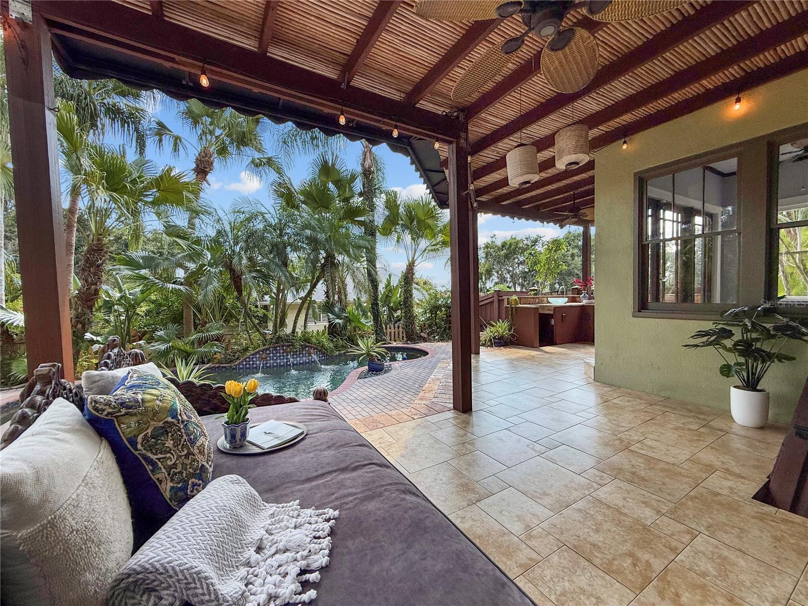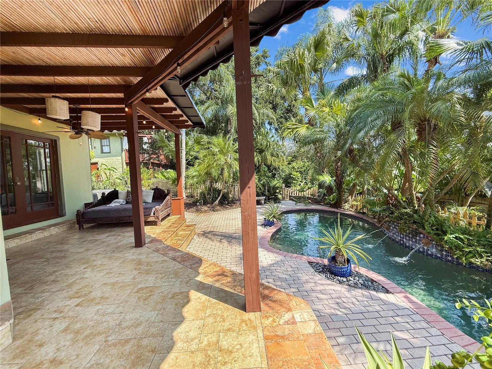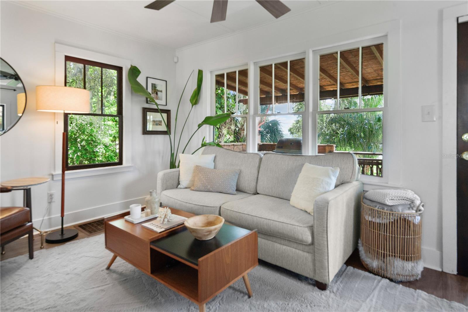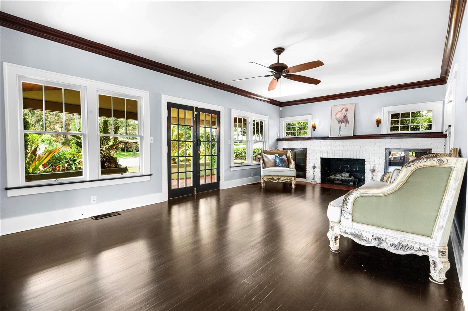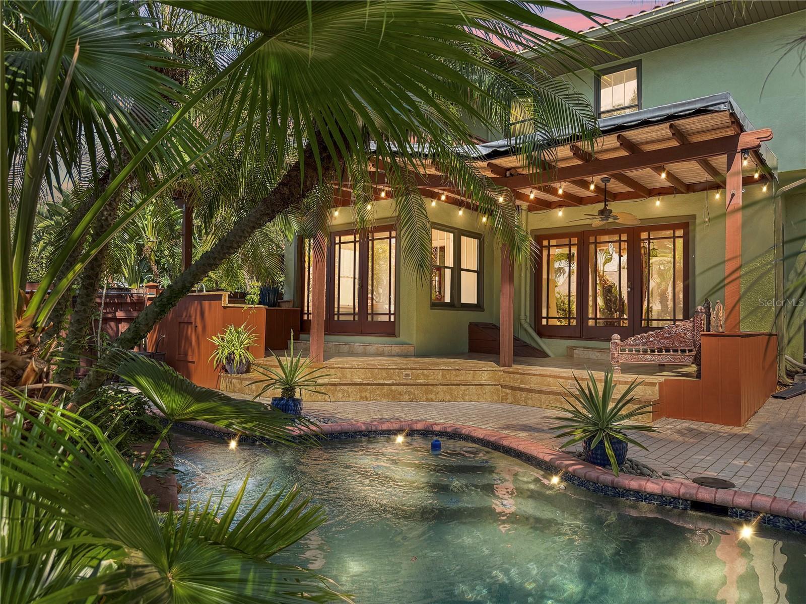Under contract-accepting backup offers. HISTORIC LAKEVIEW POOL HOME with GUEST HOUSE! Nestled hillside with panoramic views of Lake Minnehaha, this 1925 Mediterranean Revival home is art in its truest form. This early 20th century architectural style was used by developers to promote luxury, influenced by coastal villas and palaces in both Italy and Spain. Beautifully constructed with wood lathe and plaster walls and a barrel tile roof, built to stand the test of time. In contrast, this residence added Craftsman elements to include wide tapered columns, large eaves, sash windows and a centrally located Chicago brick fireplace. Richly stained original heart pine floors and hand crafted millwork give this home an organic coziness to savor! The authenticity is priceless, evoking a sense of belonging & leisure with an emphasis on indoor outdoor living. This tropical oasis has been compared to retreats in Costa Rica, Hawaii & even Disney! The grounds are abundant with flowering plants and trees including plumeria, hibiscus, purple iris, angel trumpets, bird of paradise and bougainvillea. Enjoy picking mango, starfruit & bananas in your PJ’s! The backyard also has a flagstone fire pit with bistro lights, screen room with water feature and carriage house that has been used as an open air game room! The 2nd story guest house is a mini version of the main with a front & rear entrance. A large covered balcony with BBQ grill and tiered deck overlooks the terrain. Inside you’ll find the cutest 1 bedroom, 1 bath with a full kitchen living room & laundry. Real wood “birch” floors in a weathered gray gives the space a transitional vibe with the nostalgic style. The main house back porch wraps around with bamboo ceilings and its Summer kitchen can be customized upon request. A dreamy setting for your morning coffee as you're mesmerized by the palms dancing in the wind and the sound of fountains flowing into the quaint lagoon pool. The front entry porch is another great area to hang out with original encaustic tile, pitched tongue and groove ceiling and antique wrought iron chandelier! The view is amazing! Upstairs, the primary suite has a private covered balcony with the best view in town! Enjoy vivid sunsets, storms rolling across the lake and the most spectacular unobstructed starry nights! Every season brings its own unique beauty & experience. 4th of July you can see the fireworks around the entire lake and surrounding areas! Christmas brings the boat parade with Santa and a fun light show! The main residence is your quintessential craftsman with 3 bedrooms 2 baths, a rear kitchen and laundry, oversized dining and family room and everyone’s favorite the sunroom! The home also has a basement AND an attic with a nice wide staircase! The feeling of this home is indescribable, I know because I lived here for 7 years! My hometown street. It has always been beautiful, always quiet, always HOME.