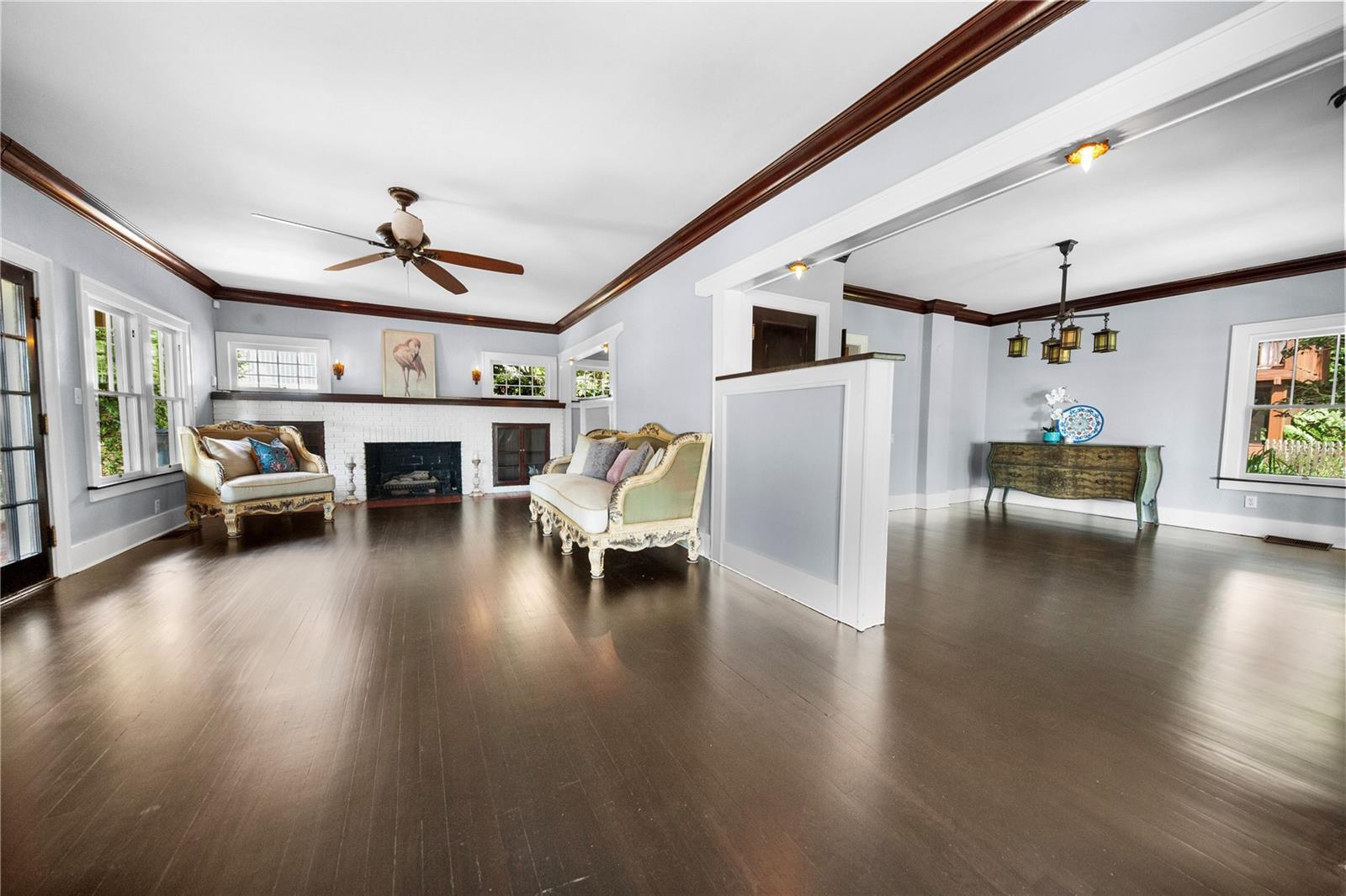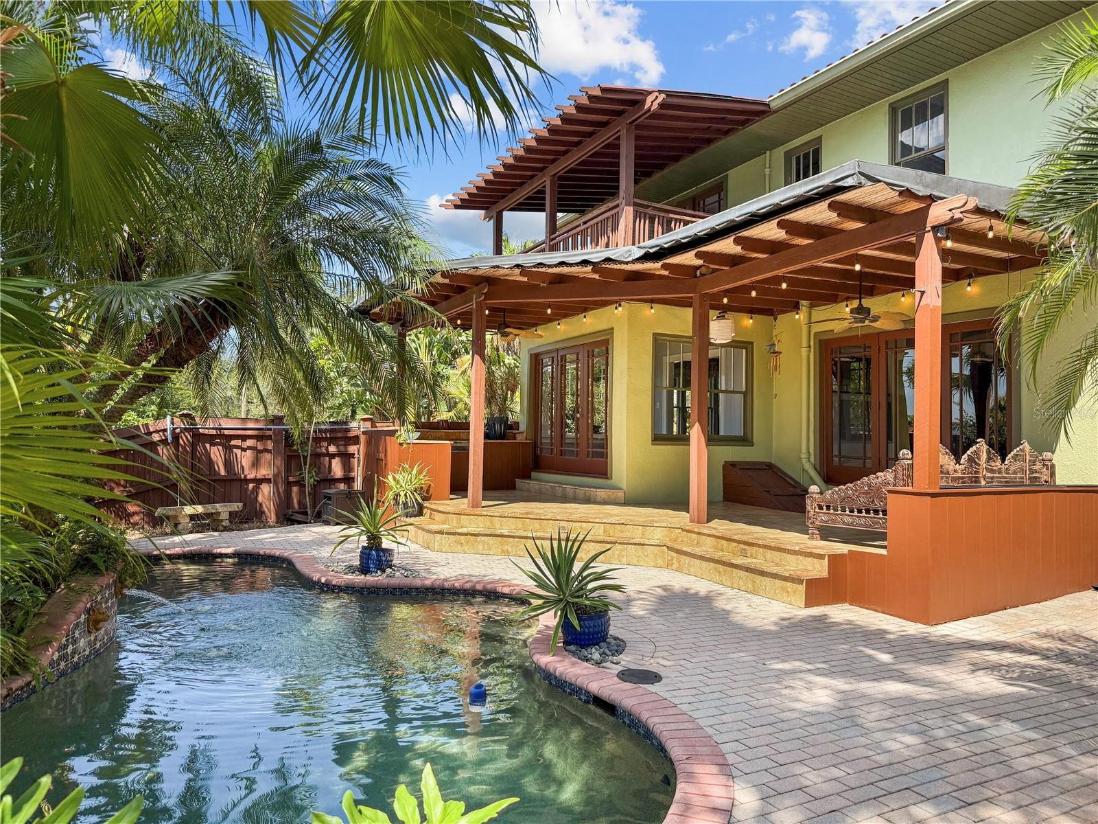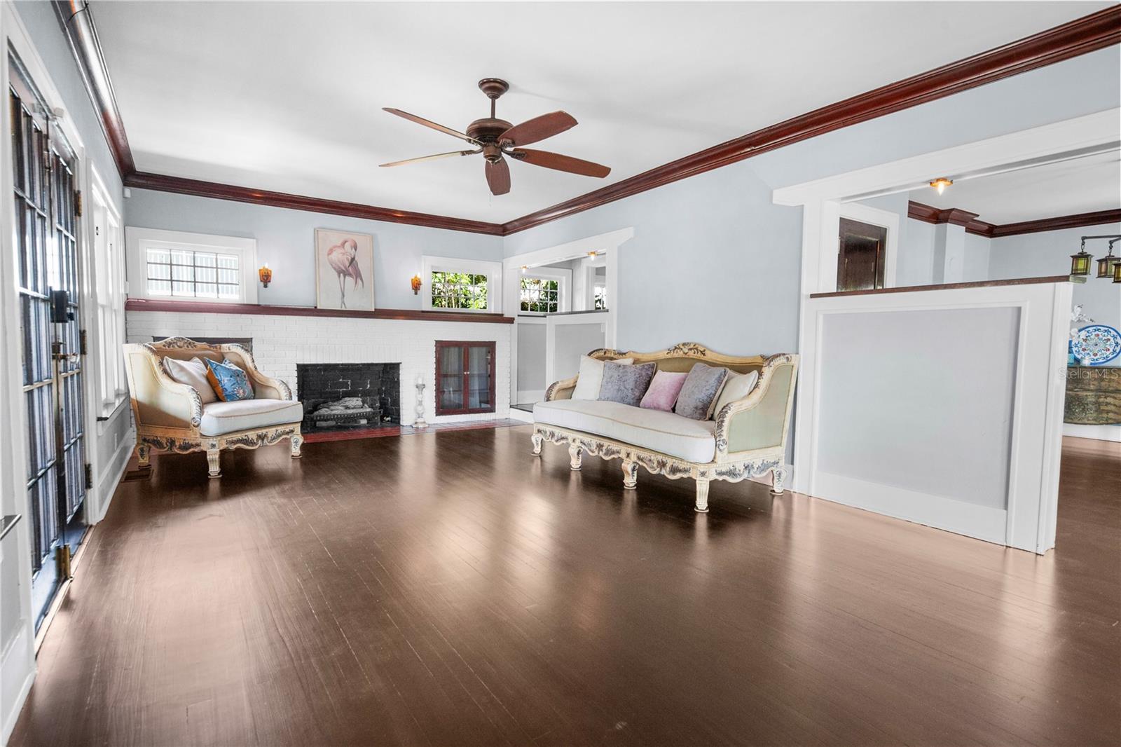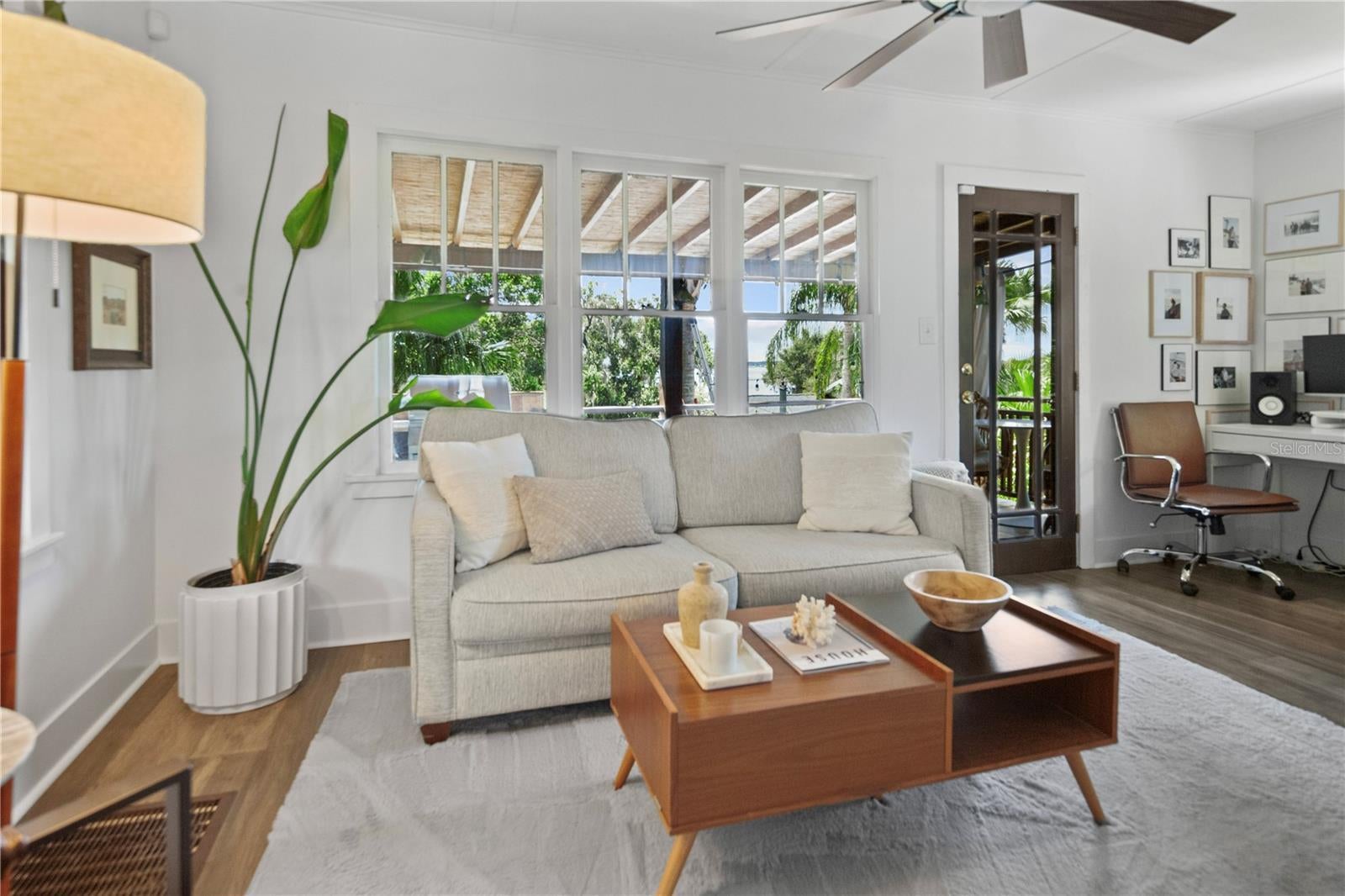 Under contract-accepting backup offers. HISTORIC LAKEVIEW POOL HOME with GUEST HOUSE! Nestled hillside with panoramic views of Lake Minnehaha, this 1925 Mediterranean Revival home is art in its truest form. This early 20th century architectural style was used by developers to promote luxury, influenced by coastal villas and palaces in both Italy and Spain. Beautifully constructed with wood lathe and plaster walls and a barrel tile roof, built to stand the test of time. In contrast, this residence added Craftsman elements to include wide tapered columns, large eaves, sash windows and a centrally located Chicago brick fireplace. Richly stained original heart pine floors and hand crafted millwork give this home an organic coziness to savor! The authenticity is priceless, evoking a sense of belonging & leisure with an emphasis on indoor outdoor living. This tropical oasis has been compared to retreats in Costa Rica, Hawaii & even Disney! The grounds are abundant with flowering plants and trees including plumeria, hibiscus, purple iris, angel trumpets, bird of paradise and bougainvillea. Enjoy picking mango, starfruit & bananas in your PJ’s! The backyard also has a flagstone fire pit with bistro lights, screen room with water feature and carriage house that has been used as an open air game room! The 2nd story guest house is a mini version of the main with a front & rear entrance. A large covered balcony with BBQ grill and tiered deck overlooks the terrain. Inside you’ll find the cutest 1 bedroom, 1 bath with a full kitchen living room & laundry. Real wood “birch” floors in a weathered gray gives the space a transitional vibe with the nostalgic style. The main house back porch wraps around with bamboo ceilings and its Summer kitchen can be customized upon request. A dreamy setting for your morning coffee as you're mesmerized by the palms dancing in the wind and the sound of fountains flowing into the quaint lagoon pool. The front entry porch is another great area to hang out with original encaustic tile, pitched tongue and groove ceiling and antique wrought iron chandelier! The view is amazing! Upstairs, the primary suite has a private covered balcony with the best view in town! Enjoy vivid sunsets, storms rolling across the lake and the most spectacular unobstructed starry nights! Every season brings its own unique beauty & experience. 4th of July you can see the fireworks around the entire lake and surrounding areas! Christmas brings the boat parade with Santa and a fun light show! The main residence is your quintessential craftsman with 3 bedrooms 2 baths, a rear kitchen and laundry, oversized dining and family room and everyone’s favorite the sunroom! The home also has a basement AND an attic with a nice wide staircase! The feeling of this home is indescribable, I know because I lived here for 7 years! My hometown street. It has always been beautiful, always quiet, always HOME.