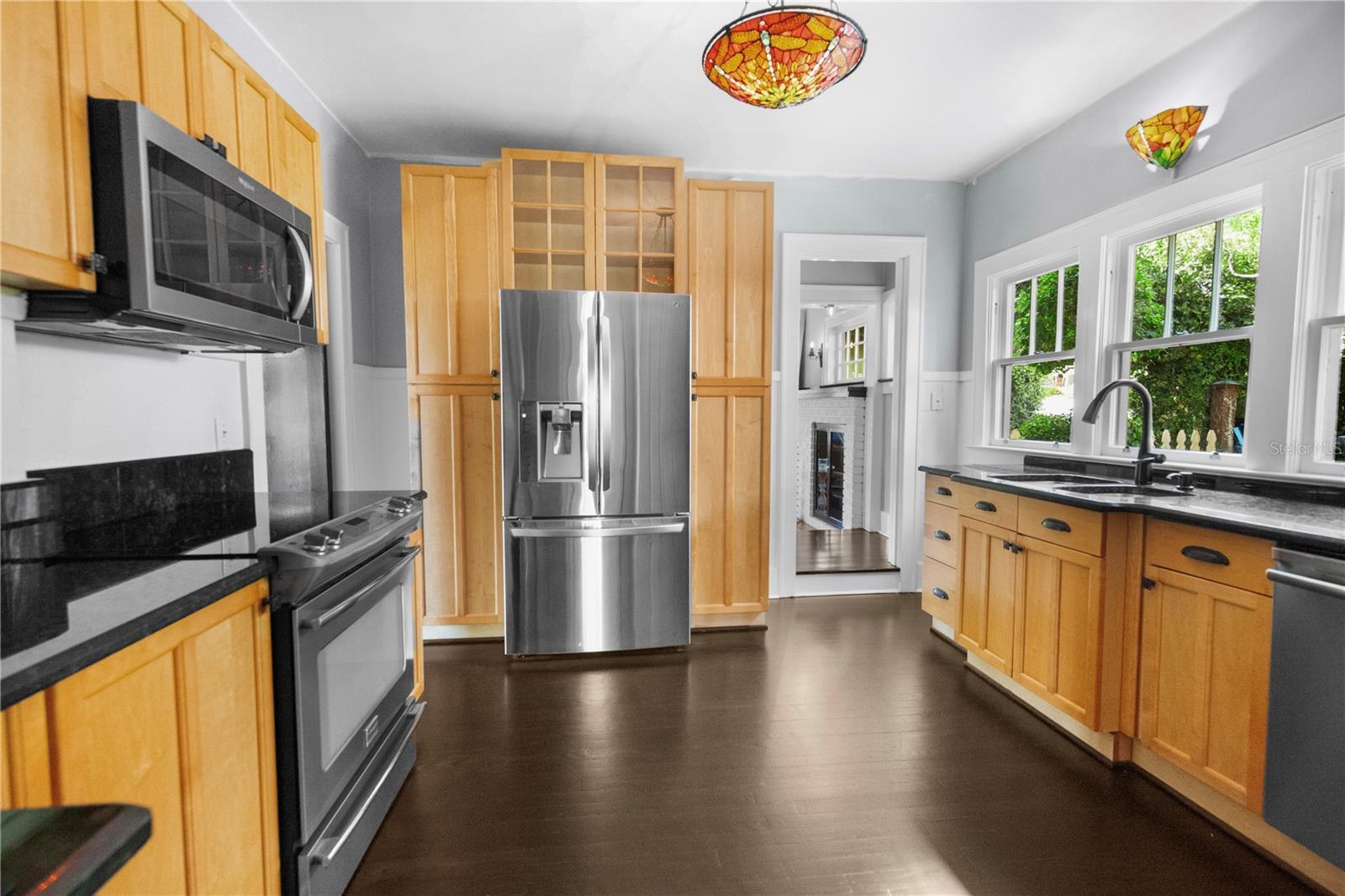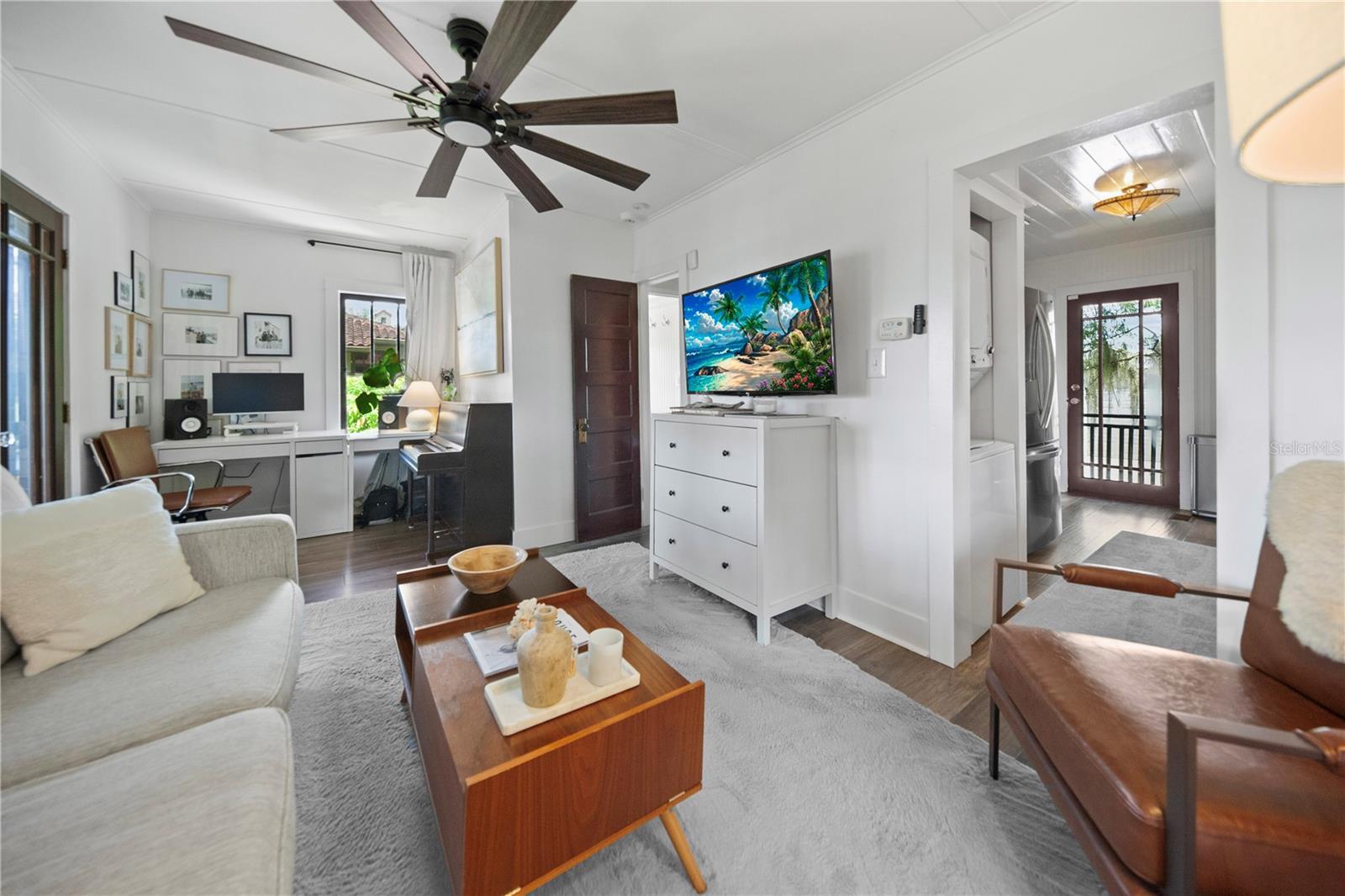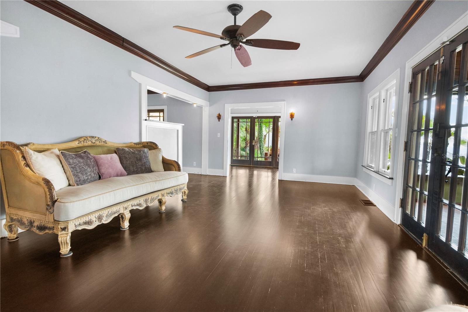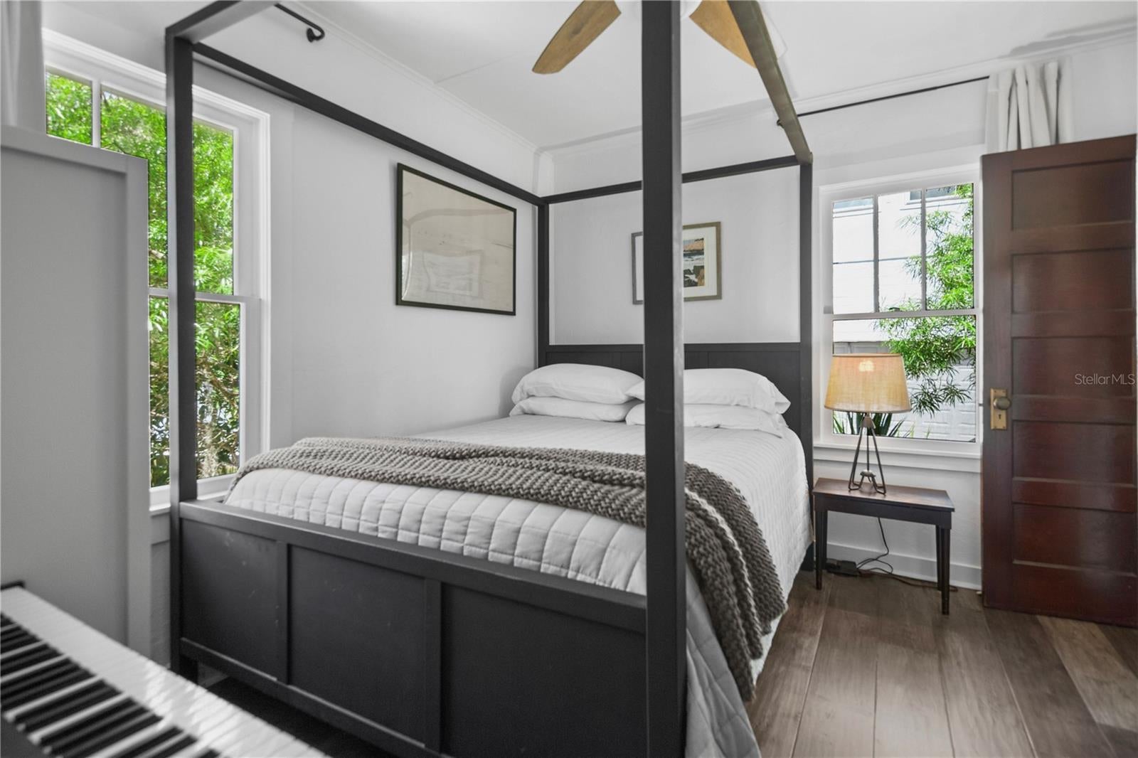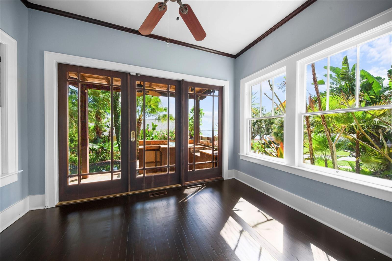 Under contract-accepting backup offers. HISTORIC LAKEVIEW POOL HOME with GUEST HOUSE! Nestled hillside with panoramic views of Lake Minnehaha, this 1925 Mediterranean Revival home is art in its truest form. This early 20th century architectural style was used by developers to promote luxury, influenced by coastal villas and palaces in both Italy and Spain. Beautifully constructed with wood lathe and plaster walls and a barrel tile roof, built to stand the test of time. In contrast, this residence added Craftsman elements to include wide tapered columns, large eaves, sash windows and a centrally located Chicago brick fireplace. Richly stained original heart pine floors and hand crafted millwork give this home an organic coziness to savor! The authenticity is priceless, evoking a sense of belonging & leisure with an emphasis on indoor outdoor living. This tropical oasis has been compared to retreats in Costa Rica, Hawaii & even Disney! The grounds are abundant with flowering plants and trees including plumeria, hibiscus, purple iris, angel trumpets, bird of paradise and bougainvillea. Enjoy picking mango, starfruit & bananas in your PJ’s! The backyard also has a flagstone fire pit with bistro lights, screen room with water feature and carriage house that has been used as an open air game room! The 2nd story guest house is a mini version of the main with a front & rear entrance. A large covered balcony with BBQ grill and tiered deck overlooks the terrain. Inside you’ll find the cutest 1 bedroom, 1 bath with a full kitchen living room & laundry. Real wood “birch” floors in a weathered gray gives the space a transitional vibe with the nostalgic style. The main house back porch wraps around with bamboo ceilings and its Summer kitchen can be customized upon request. A dreamy setting for your morning coffee as you're mesmerized by the palms dancing in the wind and the sound of fountains flowing into the quaint lagoon pool. The front entry porch is another great area to hang out with original encaustic tile, pitched tongue and groove ceiling and antique wrought iron chandelier! The view is amazing! Upstairs, the primary suite has a private covered balcony with the best view in town! Enjoy vivid sunsets, storms rolling across the lake and the most spectacular unobstructed starry nights! Every season brings its own unique beauty & experience. 4th of July you can see the fireworks around the entire lake and surrounding areas! Christmas brings the boat parade with Santa and a fun light show! The main residence is your quintessential craftsman with 3 bedrooms 2 baths, a rear kitchen and laundry, oversized dining and family room and everyone’s favorite the sunroom! The home also has a basement AND an attic with a nice wide staircase! The feeling of this home is indescribable, I know because I lived here for 7 years! My hometown street. It has always been beautiful, always quiet, always HOME.
