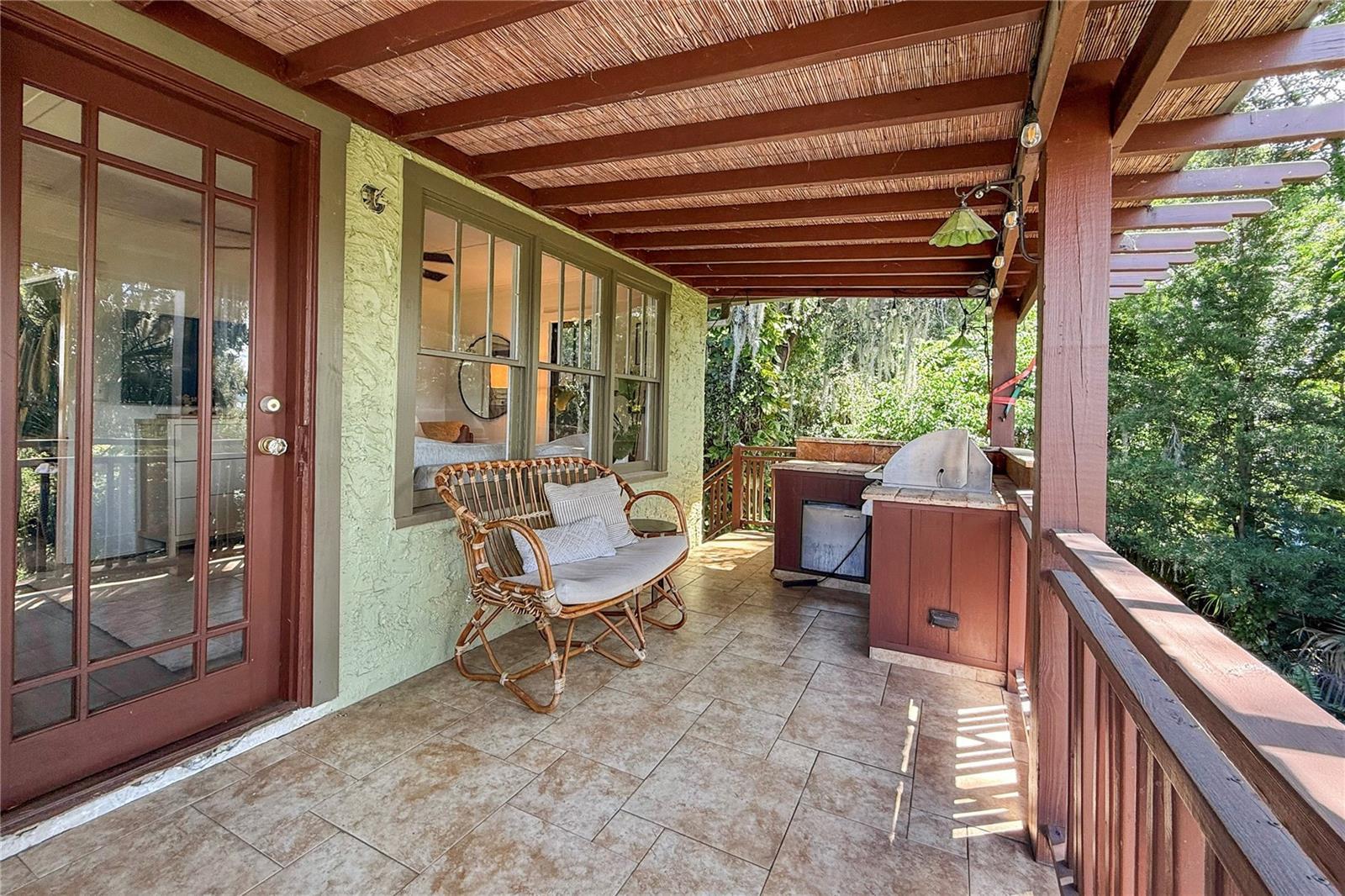 - Awning(s), Balcony, Courtyard, French Doors, Lighting, Outdoor Grill, Outdoor Kitchen, Private Mailbox, Rain Gutters, Storage