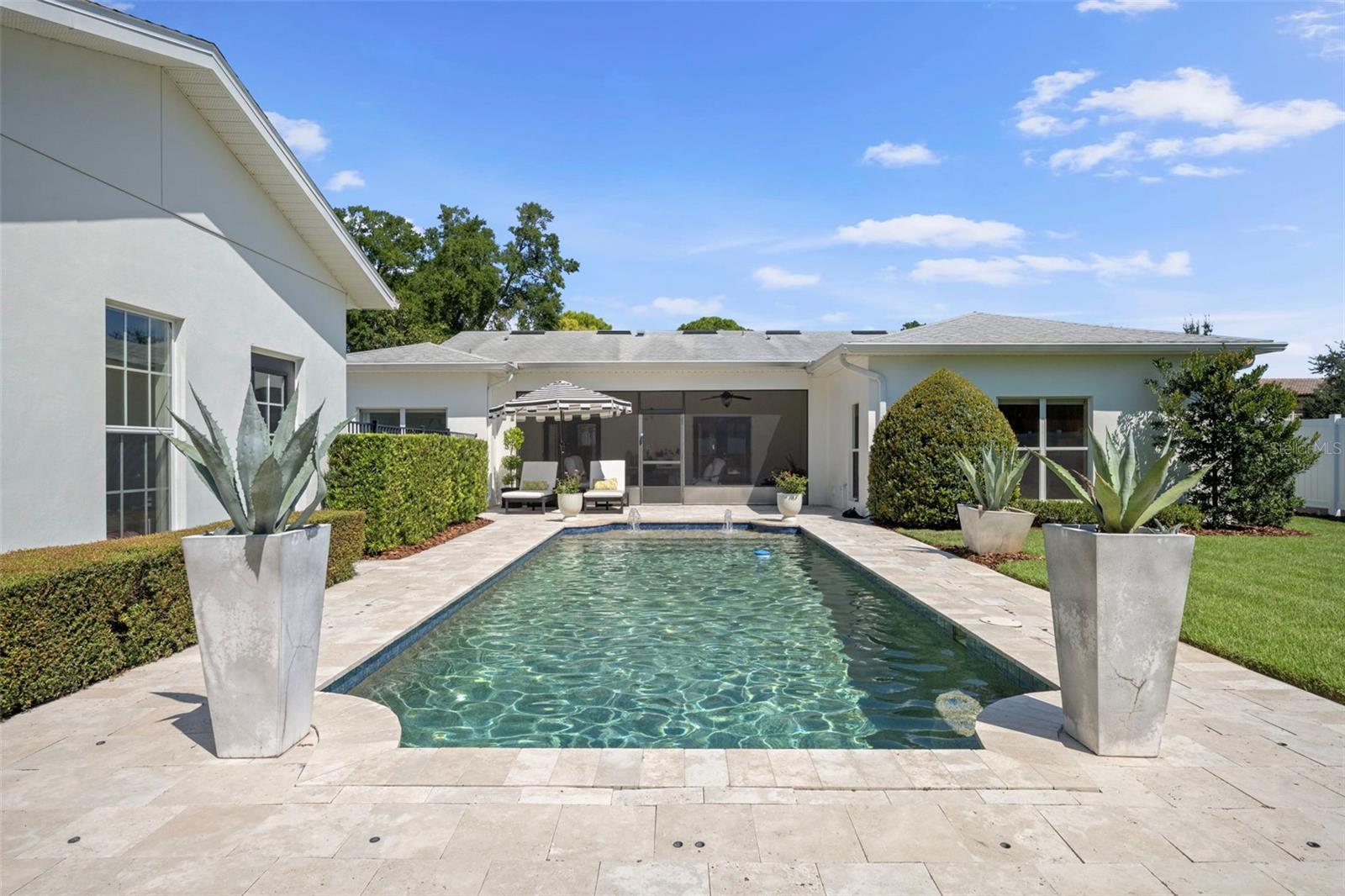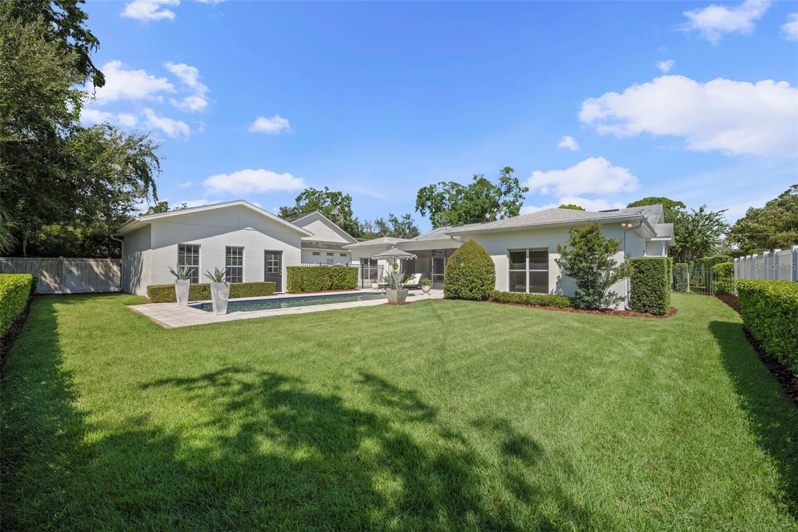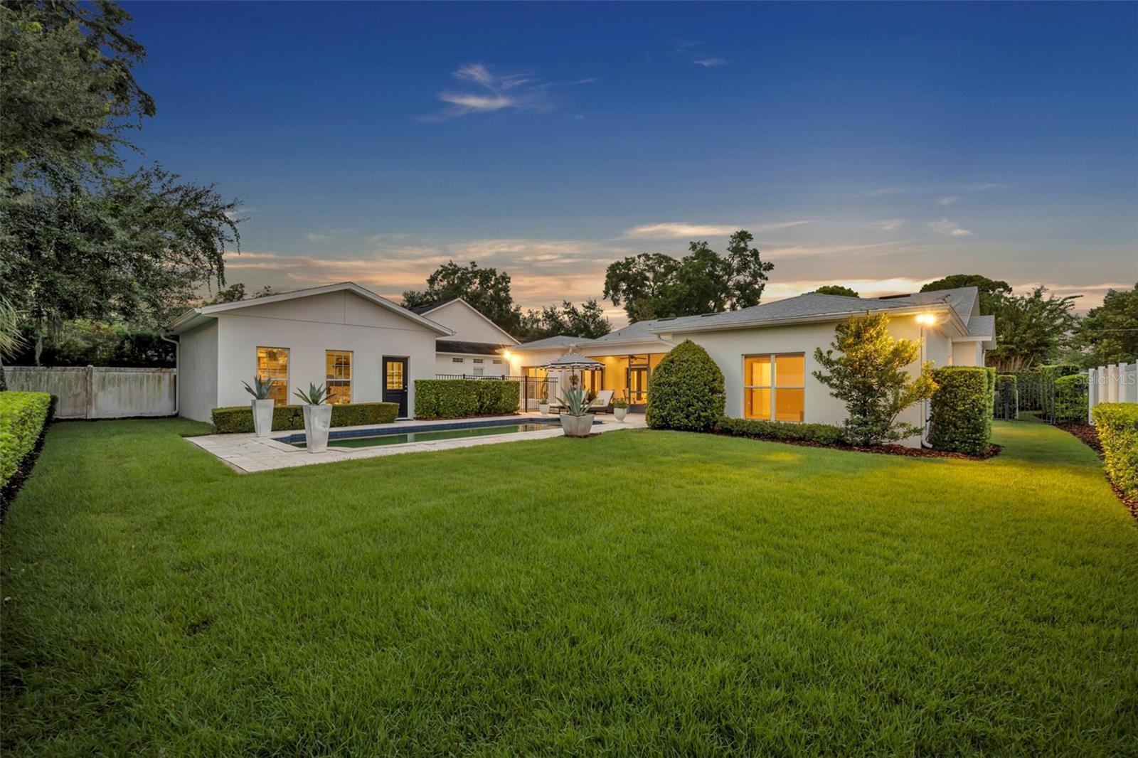 Welcome to this stunning SINGLE STORY five-bedroom home with high ceilings, in one of Winter Park’s most desirable neighborhoods, where charming restorations and luxury new builds create a vibrant community feel. Designed with both beauty and comfort in mind, this open-concept home offers bright, welcoming living spaces and thoughtful upgrades throughout. Completely rebuilt in 2014 and tons of upgrades completed in 2025. The home sits on a 1/3-acre lot with 5 bedrooms and 3 ½ baths plus an office and features a 4-way split plan with privacy for all. Upon entering, you're greeted by an open floor plan with marble foyer and white oak engineered wood flooring. The Owners' Retreat is a true sanctuary, featuring newly sanded and smoothed walls with luxe finish, automatic Hunter Douglas shades and an artful chandelier. The brand-new spa-inspired bathroom (2025) showcases the best in design and function which includes Kohler Bask heated surface tub, private toilet room with heated seat, auto lid and integrated bidet. The primary bath also has a new expanded shower, a new double sink vanity and Kohler champagne brass fixtures. The Family/Gathering space with an open chef's kitchen includes a stainless gas range, French door refrigerator, waterfall Quartzite counters and touchless kitchen and bar champagne faucets. The great room has a modern electric fireplace and leads to a screened porch and overlooks the salt water pool and large fenced backyard. Black metal remote controlled gate leads to the large 2 car detached garage with a side entry for grocery and package drop off. Home has updated cameras and security with touch screen keypad. Smart home technology Lutron lighting to schedule and control lights with mobile or Google home. Redesigned Laundry and 1/2 bath with beautiful designer wallpaper and tile and Samsung washer/dryer integrated single unit. Ideally located in one of Winter Park's coveted neighborhoods, with easy access to Park Av, Phelps Park, YMCA and Rollins College. Excellent schools, Lakemont Elem, Maitland Middle and Winter Park High. This is a rare offering of a newer one-story home, that is move in ready in the heart of Winter Park. A Must See!
