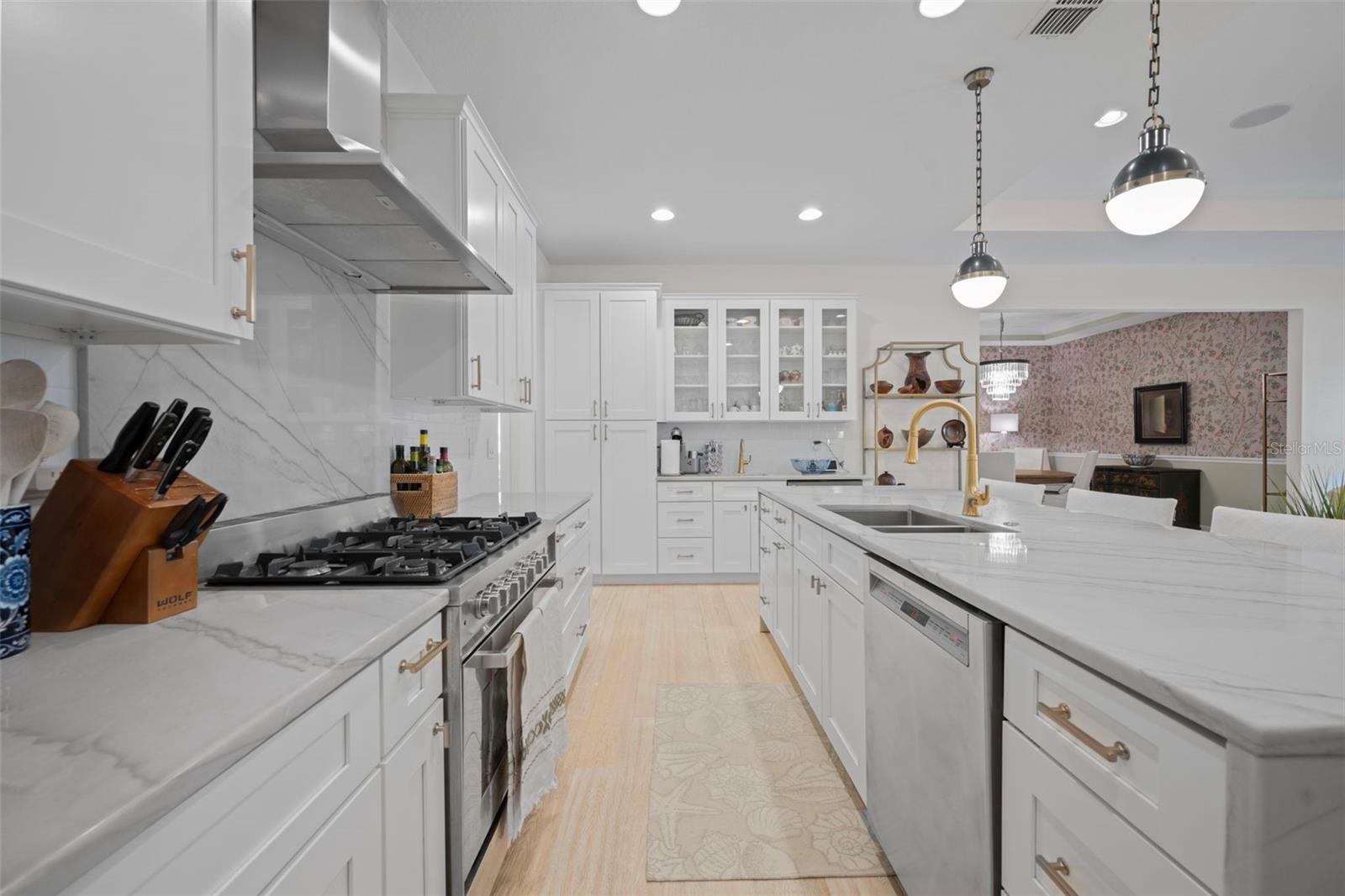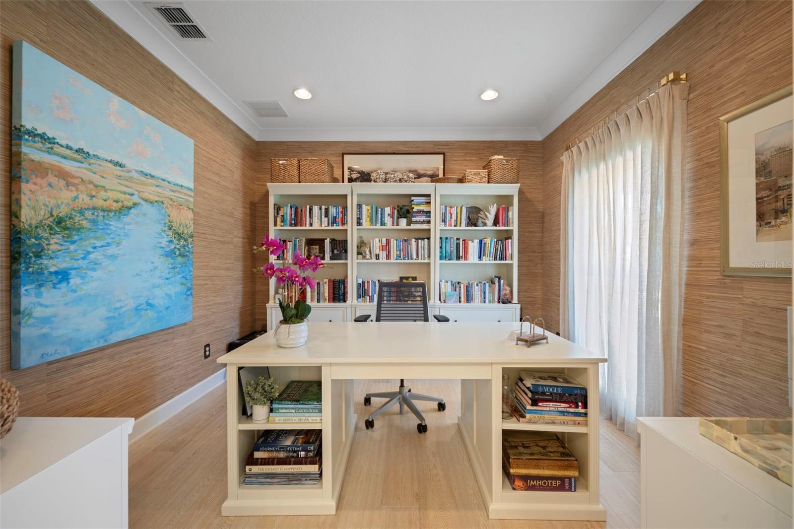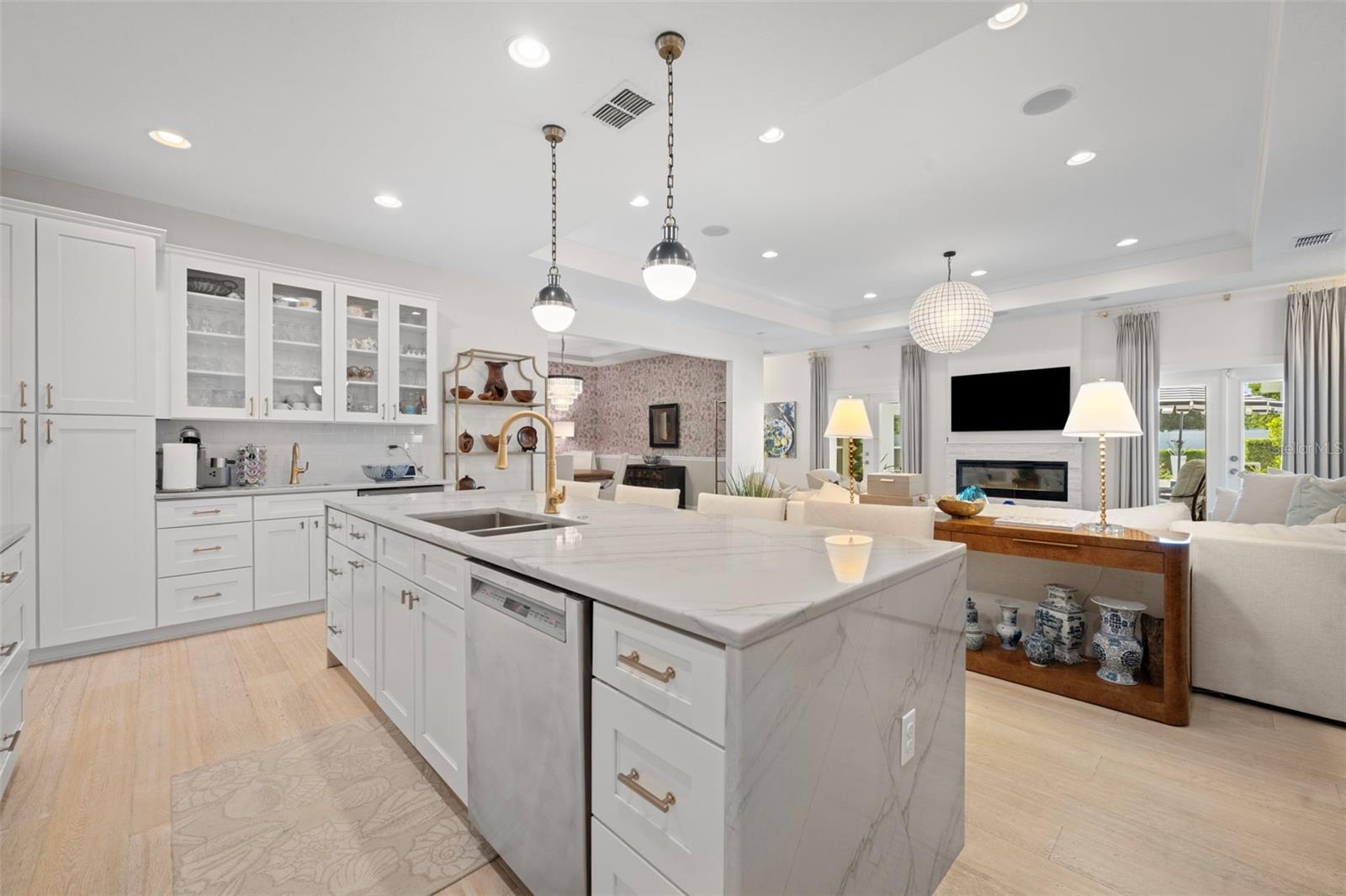 Welcome to this stunning SINGLE STORY five-bedroom home with high ceilings, in one of Winter Park’s most desirable neighborhoods, where charming restorations and luxury new builds create a vibrant community feel. Designed with both beauty and comfort in mind, this open-concept home offers bright, welcoming living spaces and thoughtful upgrades throughout. Completely rebuilt in 2014 and tons of upgrades completed in 2025. The home sits on a 1/3-acre lot with 5 bedrooms and 3 ½ baths plus an office and features a 4-way split plan with privacy for all. Upon entering, you're greeted by an open floor plan with marble foyer and white oak engineered wood flooring. The Owners' Retreat is a true sanctuary, featuring newly sanded and smoothed walls with luxe finish, automatic Hunter Douglas shades and an artful chandelier. The brand-new spa-inspired bathroom (2025) showcases the best in design and function which includes Kohler Bask heated surface tub, private toilet room with heated seat, auto lid and integrated bidet. The primary bath also has a new expanded shower, a new double sink vanity and Kohler champagne brass fixtures. The Family/Gathering space with an open chef's kitchen includes a stainless gas range, French door refrigerator, waterfall Quartzite counters and touchless kitchen and bar champagne faucets. The great room has a modern electric fireplace and leads to a screened porch and overlooks the salt water pool and large fenced backyard. Black metal remote controlled gate leads to the large 2 car detached garage with a side entry for grocery and package drop off. Home has updated cameras and security with touch screen keypad. Smart home technology Lutron lighting to schedule and control lights with mobile or Google home. Redesigned Laundry and 1/2 bath with beautiful designer wallpaper and tile and Samsung washer/dryer integrated single unit. Ideally located in one of Winter Park's coveted neighborhoods, with easy access to Park Av, Phelps Park, YMCA and Rollins College. Excellent schools, Lakemont Elem, Maitland Middle and Winter Park High. This is a rare offering of a newer one-story home, that is move in ready in the heart of Winter Park. A Must See!