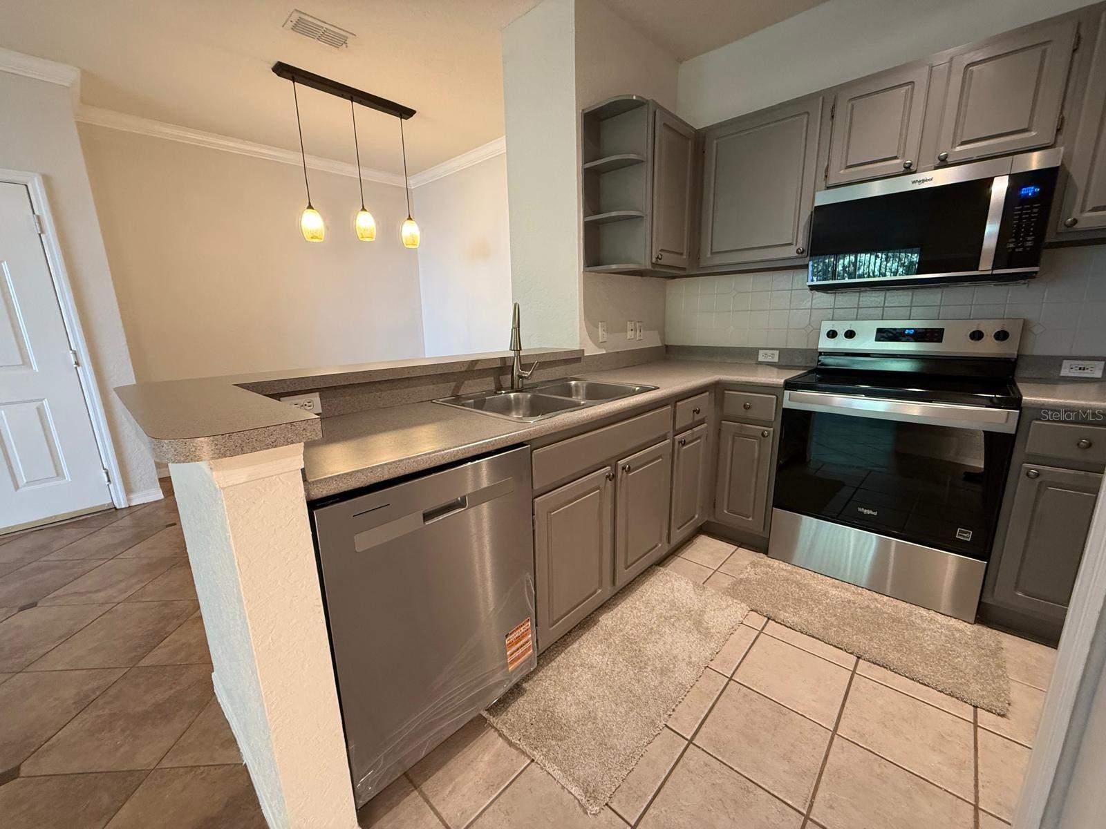 Beautifully renovated 2-bedroom, 1-bath ground-floor condo in a highly desirable gated community! This move-in ready home features an open floor plan with ceramic tile flooring in the living and dining areas, fresh paint throughout, and brand-new stainless steel appliances in the kitchen. A washer and dryer are also included for your convenience. Relax on your screened patio overlooking the pond, complete with extra storage space—perfect for morning coffee or unwinding after a long day. The community offers fantastic amenities and is ideally located near the RDV Sportsplex, Maitland office complexes, shopping, dining, and major highways. Water and sewer are included in the rent for added value. Don’t miss this opportunity—schedule your showing today! Equal Housing Opportunity.