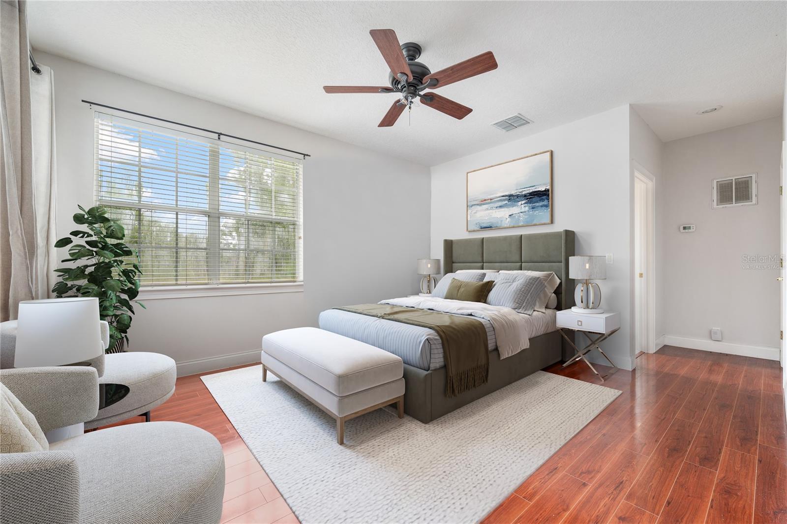 - Ceiling Fans(s), Crown Molding, Eat-in Kitchen, Open Floorplan, Primary Bedroom Main Floor, Solid Surface Counters, Solid Wood Cabinets, Walk-In Closet(s)
