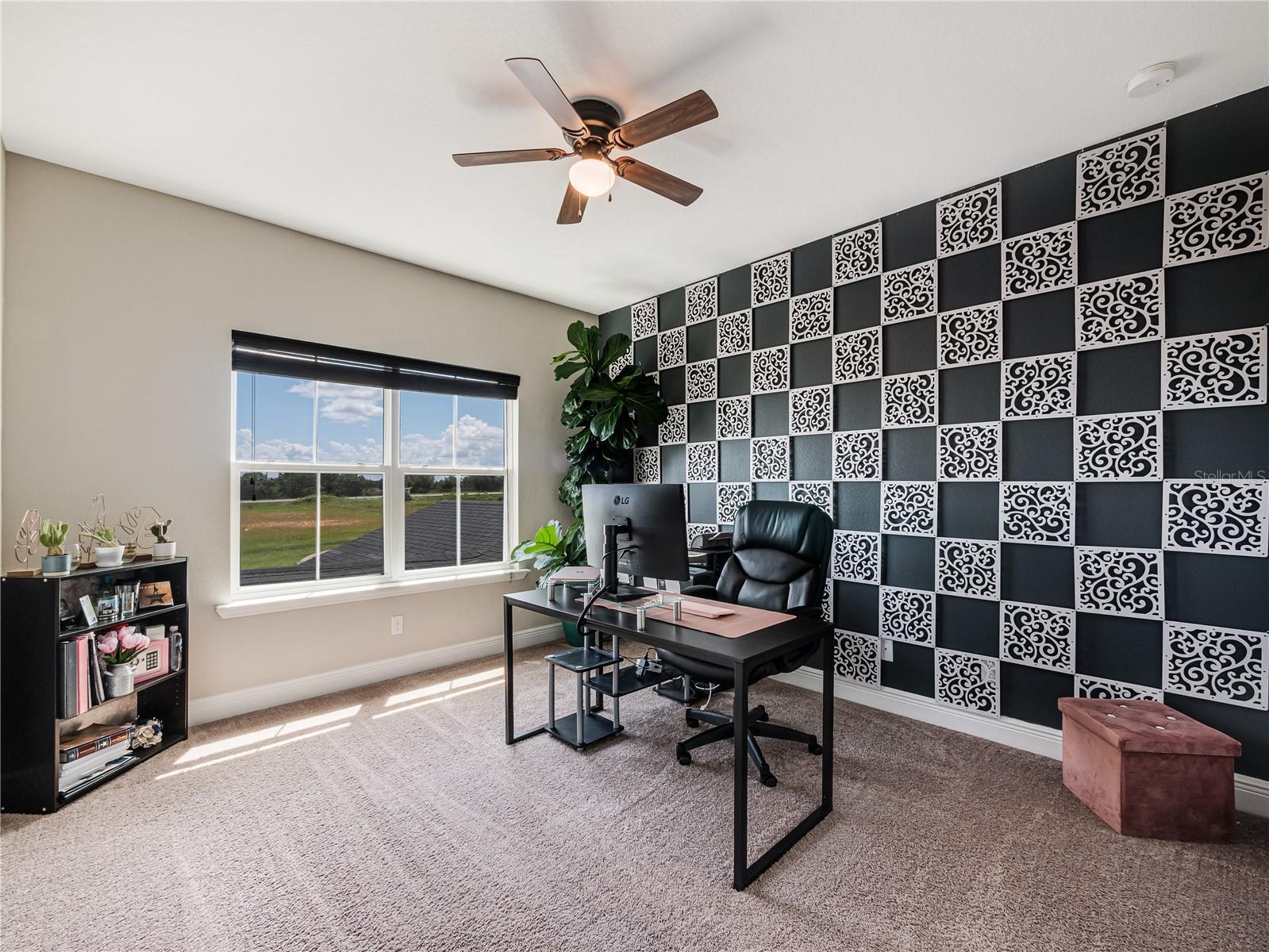 Welcome to this luxurious 2-story townhome offering 3 spacious bedrooms, 2.5 bathrooms, and 1,830 sq ft of living space, perfectly blending comfort and style. Located just minutes from Downtown Clermont in Green Valley Townhomes, this home is ideal for those seeking low-maintenance living without compromising on features or design. Step inside through the charming courtyard entry and discover a thoughtfully designed layout featuring a primary suite on the main floor for added privacy and convenience. Enjoy elegant architectural details throughout, including tray ceilings, crown molding, 6-inch baseboards, and wainscoting with a hidden storage door cleverly tucked under the stairs. The gourmet kitchen boasts granite countertops, a full stainless steel appliance suite, and seamlessly opens to the living area — perfect for entertaining. Additional upgrades include ceiling fans in the living room, primary suite, and upstairs bonus room, adding comfort and energy efficiency. Upstairs, you’ll find two generously sized bedrooms, a full bath, and a versatile bonus room — ideal as a home office, media space, or playroom. Relax year-round in the screened-in lanai with unobstructed golf course views. Washer and dryer are included, making this home truly move-in ready.