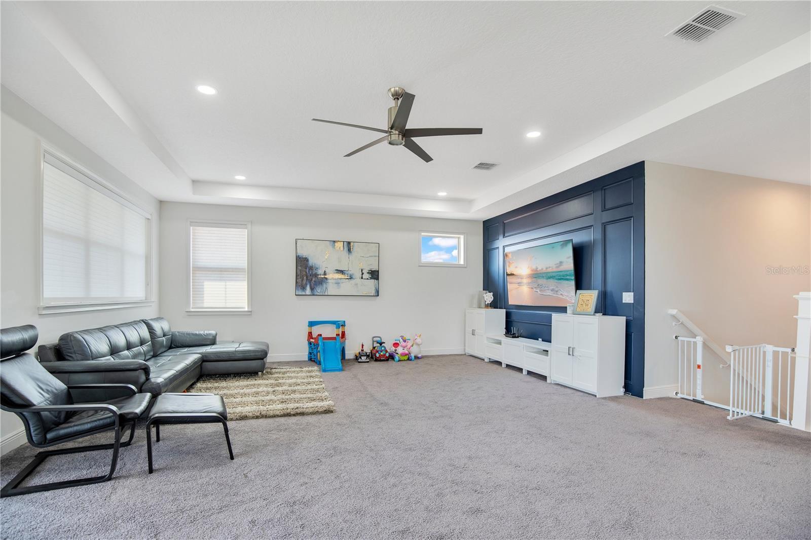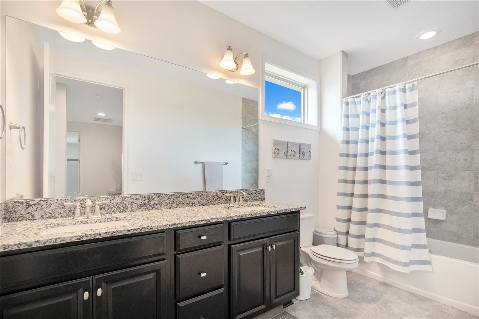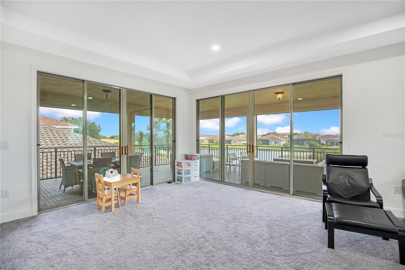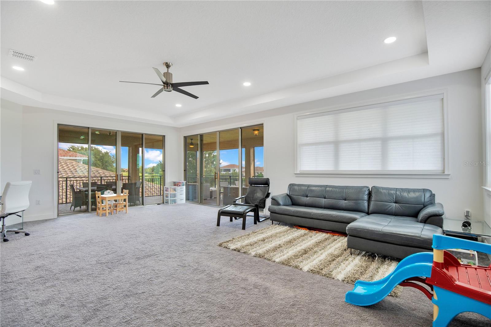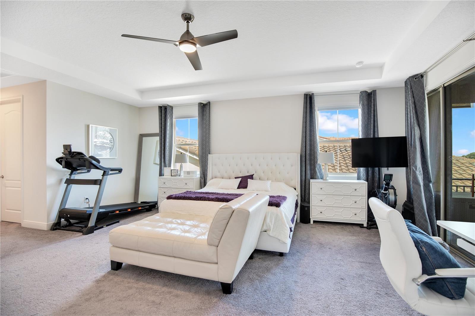 Welcome to 13249 Woodford Street, where luxury living meets thoughtful design. This stunning 4-bedroom, 4-bathroom residence offers elegant finishes, expansive living spaces, and serene pond views in one of Orlando’s most sought-after communities. From the moment you step into the foyer, this home makes an impression. The wood-look tile flooring is both beautiful and practical—durable, water-resistant, and virtually maintenance-free. At the heart of the home, an open family room, kitchen, and dining area set the stage for effortless living and entertaining. The chef’s dream kitchen is as functional as it is stylish, featuring top-of-the-line KitchenAid appliances, quartz countertops, an oversized island with seating, 48-inch cabinetry, tile backsplash, and abundant storage with a large walk-in pantry! The island provides space for baking or entertaining, while still offering casual seating for quick meals. Just off the kitchen, a full bath has been thoughtfully designed with future pool living in mind. The separate dining area, flowing between the kitchen and family room, accommodates a large table with ease, making holidays and dinner parties a joy. From here, sliding glass doors lead to a covered lanai that spans the entire width of the home. Facing east, this incredible outdoor living space captures peaceful sunrises and stays shaded through the afternoon and evening, allowing you to relax or entertain comfortably year-round. The family room shines with a custom tiled entertainment wall, complete with an electric fireplace and a designated space for your wall-mounted TV. A separate dry bar area adds both storage and function with counter space, cabinetry, and a beverage refrigerator—perfect for gatherings. A downstairs bedroom with ensuite full bath is ideal for guests or a private home office. Head upstairs to a spacious loft with two sets of sliding glass doors for exceptional views. These doors open up onto the full-length screened balcony with Polywood flooring. Overlooking the tranquil pond, this space provides an incredible extension of your living area—perfect for morning coffee at sunrise or shaded afternoons and evenings spent outdoors, maybe even catching a rocket launch from Cape Canaveral. The primary suite is an oversized retreat with slider doors opening to the balcony water view. Its spa-inspired bath offers dual sinks, a custom walk-in shower with rain head, and a separate water closet. An bonus feature in the bathroom is a vanity island, blending luxury and practicality, with added storage and counter space! Dual walk-in closets between the bedroom and bathroom are convenient and provide more privacy and ease of dressing. Two additional upstairs bedrooms and a full bath complete the perfect family layout. The secondary bathroom upstairs has dual sinks and a shower/tub combination. All showers in the home feature tiled walls all the way from the floor to the ceiling. The laundry room is upstairs with a sink and cabinet/countertop space making folding clothing easy. Additional highlights include high ceilings with 8-foot doors throughout, a 3-car garage (one tandem, ideal for storage, golf cart storage, or a home gym), and a convenient drop zone at the garage entry with low cabinets and regular height cabinets, and a water filtration system serving the entire home! Check out the Matterport 3-D link to see this home NOW! It offers it all—style, function, and a setting you’ll fall in love with.