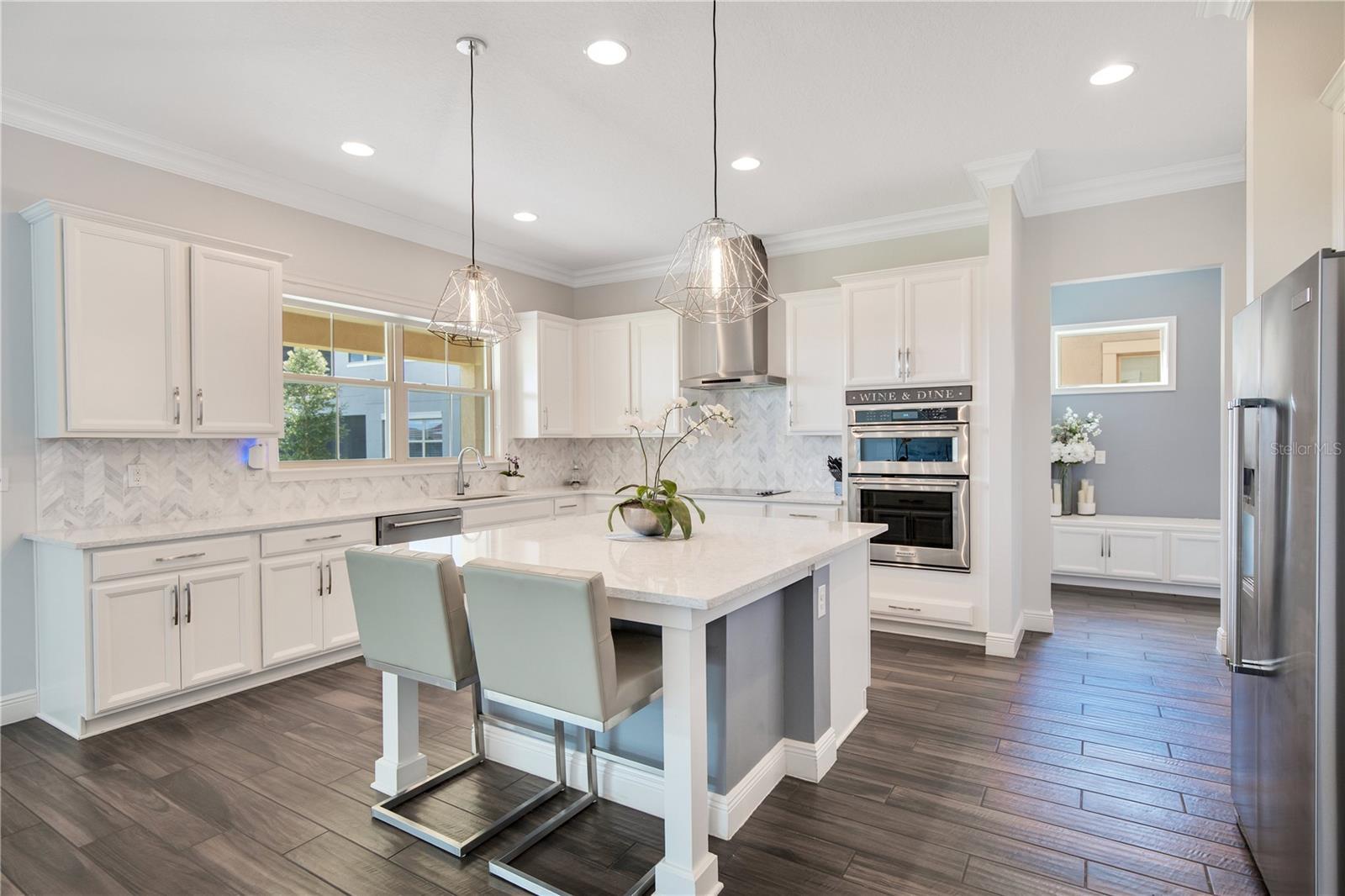 - Built-In Oven, Cooktop, Dishwasher, Disposal, Electric Water Heater, Microwave, Water Filtration System, Wine Refrigerator