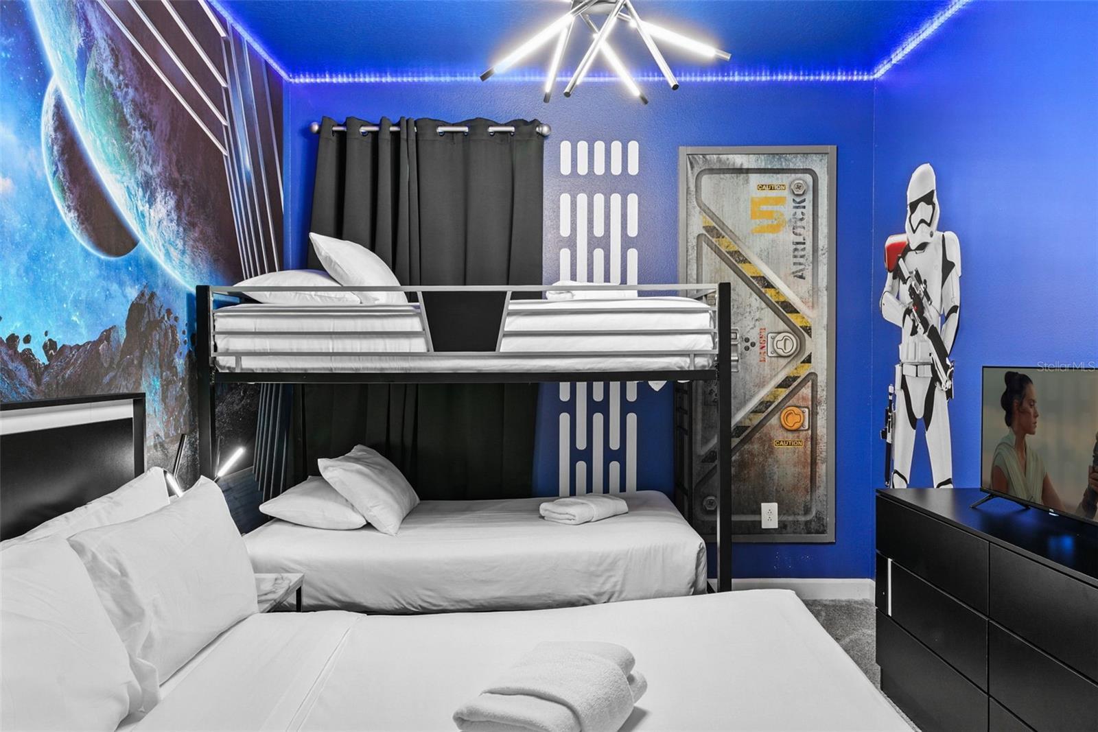 Welcome to your dream vacation home! This exquisite, fully furnished 6-bedroom, 5-bathroom house, located in the ChampionsGate community, offers the perfect blend of elegance, comfort, and entertainment. With its spacious layout, amazing amenities, and prime location, it promises an unforgettable vacation for you and your loved ones. The house features five beautifully decorated bedrooms, each designed to provide a cozy and relaxing atmosphere. Comfortable beds with high-quality linens ensure a restful night's sleep. The five immaculate, modern bathrooms are equipped with soft towels and toiletries for a truly luxurious stay. The house is furnished with high-quality furniture and stylish decor, creating a welcoming ambiance. Every detail has been carefully considered for your utmost comfort. The spacious, open-plan living area is ideal for relaxing and enjoying leisure time. Unwind on the comfortable sofas, watch your favorite shows on the large-screen TV, or enjoy unforgettable moments with family and friends. The private backyard is a tranquil oasis, featuring a large green space, a patio, and an outdoor dining area. Relax by the pool, take a refreshing swim, or soak in the hot tub. As a guest of ChampionsGate, you'll have access to amazing amenities, including two clubhouse, fitness center, golf courses, water park, and much more. You'll never be bored! Come and visit us and experience your dream vacation home.