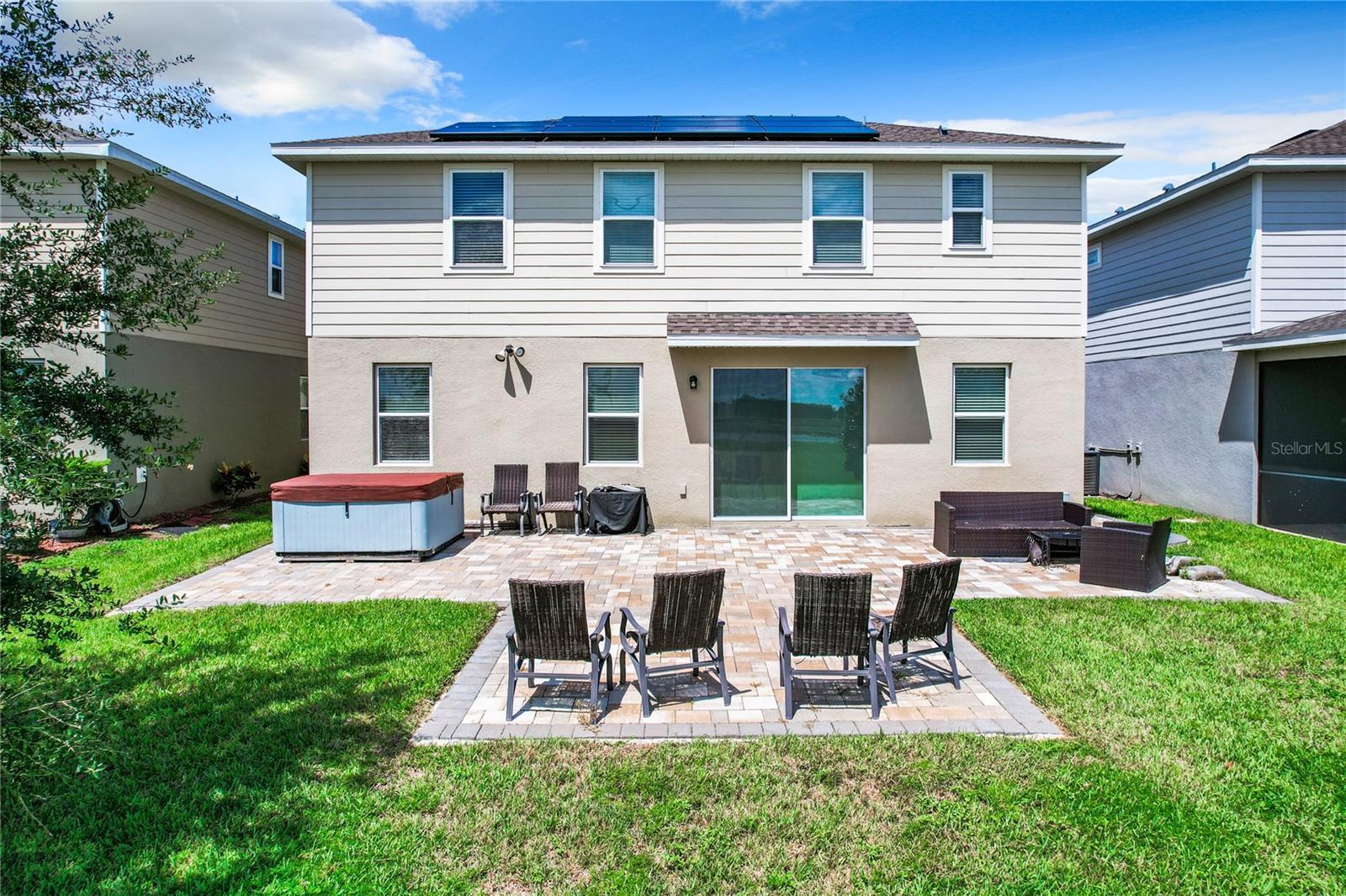 Your search ends here! This stunning 5-bedroom, 3-bath home features a 2-car garage and energy-efficient solar panels. The grand entrance leads to a downstairs bedroom and full bath, formal dining room, and spacious family room. The modern kitchen includes a pantry and nook, opening to an expansive backyard with a paved patio and private hot tub—perfect for entertaining. Upstairs offers 4 bedrooms, 2 full baths, and a walk-in closet in each room. Additional features include a whole-house water softener system. Located in a desirable community with a pool and playground, and just minutes from major highways, shopping, dining, and top-rated schools. A perfect home for your family!