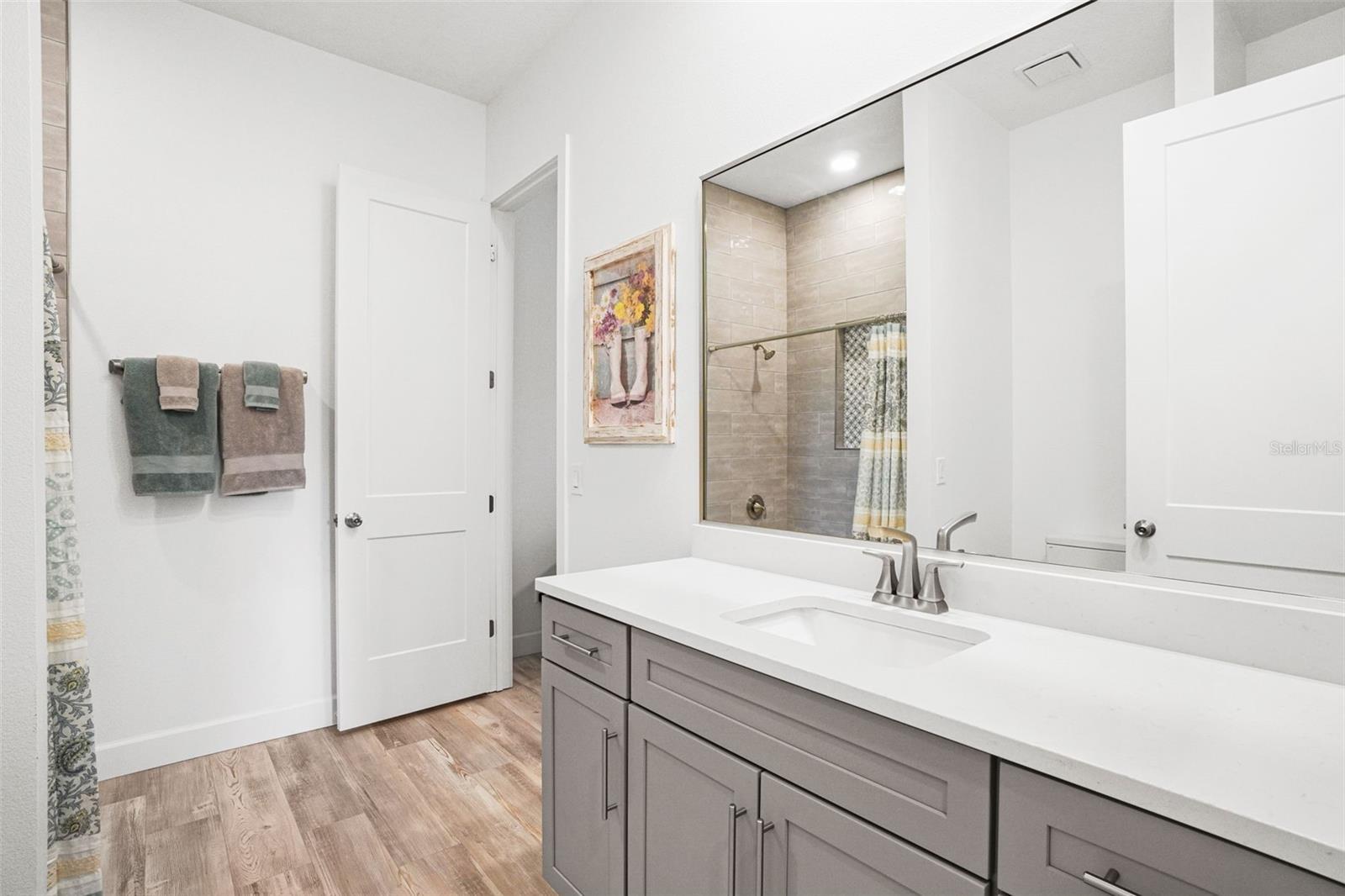 Welcome to this stunning 5-bedroom, 4-bathroom custom-built home, just 2 years young and perfectly situated on a spacious 0.8-acre lot. Boasting over 3,100 square feet of living space, this home makes a striking first impression with its expansive circular driveway, side-entry garage, and beautifully manicured landscaping accented by picturesque mature trees that provide both charm and privacy. Step inside to discover a light-filled, open-concept layout enhanced by elegant luxury vinyl plank flooring throughout the entire home. The chef’s kitchen is a true showstopper, featuring abundant cabinet space, a large island, a butler’s pantry with ample cabinet space and modern amenities designed for both function and style. The kitchen is beautifully illuminated with pendant and recessed lighting that extends throughout the living area. The inviting, large great room is perfect for family gatherings and seamlessly extends through French doors to the impressive outdoor lanai. The luxurious owner’s suite is thoughtfully positioned opposite the guest bedrooms for added privacy, with doors going out to the covered lanai. Additionally, it features a spa-like primary bath complete with dual sinks, a walk-in shower, a freestanding soaking tub as well as his and her walk-in closets. Each bedroom is generously sized, with three of them featuring en-suite bathrooms that are all very spacious with beautiful modern touches —perfect for guests or a growing family. The homeowners have spared no expense in upgrades, starting with the backyard—a true private oasis featuring a stunning pool and spa, a full outdoor kitchen with granite countertops, a fire pit, pavers, utility shed, and complete fencing for added privacy. Spanning the full length of the home, the lanai’s distinctive wood tongue and groove ceiling adds warmth and sophistication—an ideal space for relaxing or entertaining. Windows- Low E argon filled energy efficiency insulated windows (keeps energy cost down). In addition, the garage floor has been professionally finished, and over $25,000 has been invested in premium landscaping enhancements. Irrigation system-7 zones. In total, the homeowners have invested over $200k in upgrades and enhancements over the last 12 months. The Fawn Lake community is conveniently located near beautiful East coast beaches, national parks, dining, entertainment, and more! It offers great amenities including a clubhouse, tennis courts, pickleball courts, a park area and even a community barn for residents to store their own horses. This home is a must-see to truly appreciate its beauty inside and out!