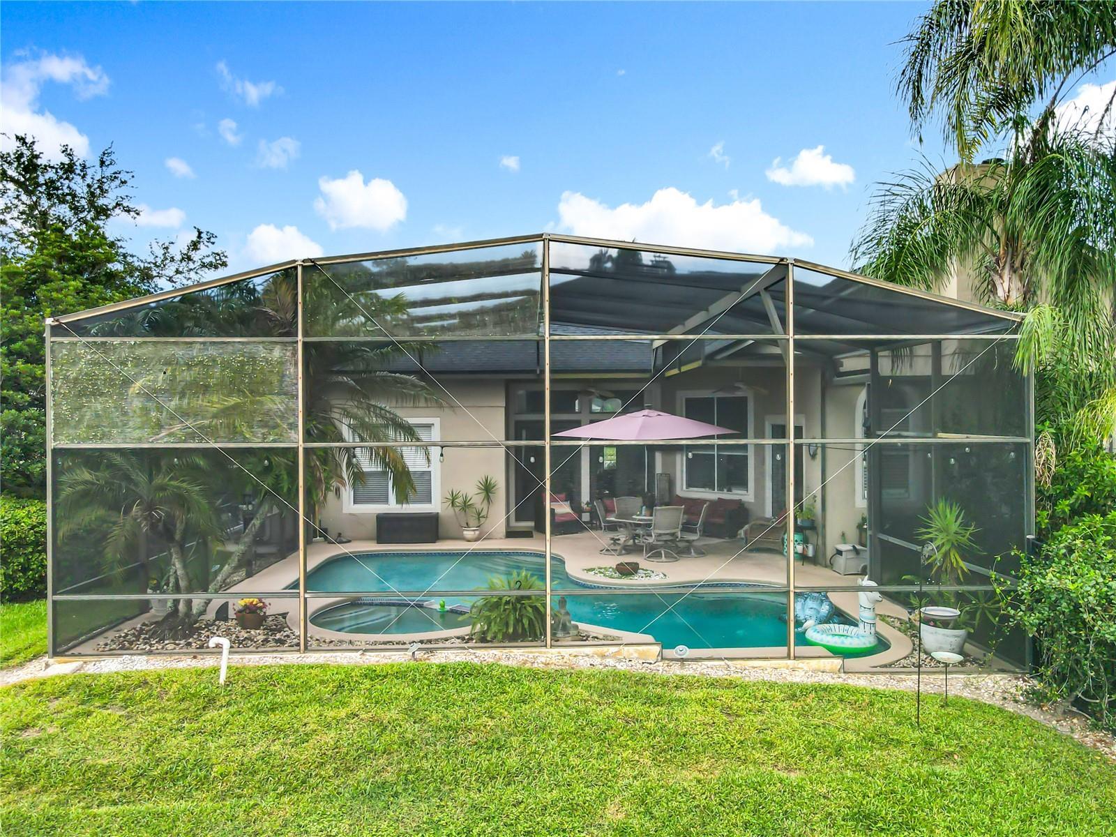 Welcome to Calabay Cove, nestled in the heart of Hunters Creek. As you pass by the serene water fountains of Lake Calabay and drive through the gates, you'll immediately know you've made the right choice. This stunning Engle Award-winning home warmly welcomes you. This exquisite lakefront property has been professionally landscaped, featuring beautiful walkways that overlook the fountain and waterfront vistas of the lake. Situated on an oversized waterfront lot, the home offers breathtaking views from the family room, kitchen, living room, and primary suite. The expansive outdoor patios are perfect for entertaining, and the large pool with spa includes additional water features that overlook Lake Calabay. Adjacent to the patio pool area is a professionally installed fenced-in play area for pets and children. As you step through the grand double doors, you'll enter a spacious foyer. Take a moment to admire the high ceilings, formal office, dining room, and living room. The living room's multiple French doors offer a stunning view of the lake, creating a wall of glass that is simply gorgeous. From here, you can also see the large pool with spa and the expansive patios that wrap around the back of the home and yard. The dynamic landscape and gorgeous lake views, complete with water features and lights, are truly captivating. This waterfront property is located in a pristine gated community. Additional features of this home include a huge kitchen with a large breakfast bar, granite backsplash and counters, and 42” cabinetry. The family room boasts a wood-burning fireplace, and there is a large indoor laundry room. The primary suite, located on the first floor, features spacious walk-in closets and a large primary bathroom. The suite also overlooks the water, patios, and sparkling pool. With 5 bedrooms, 4 ½ baths, a private office, bonus room, and an oversized 3-car garage, this home on the water won't last long. Shopping, malls, movie theaters, major airports, theme parks, and major highways are all nearby. By the way, this home also comes with a 1 year Home Warranty too! So, what are you waiting for? It's always 5 o'clock on your beautiful patio. Don't forget your canoe or paddleboard! Please give us a call today for your personal viewing. Thank you!