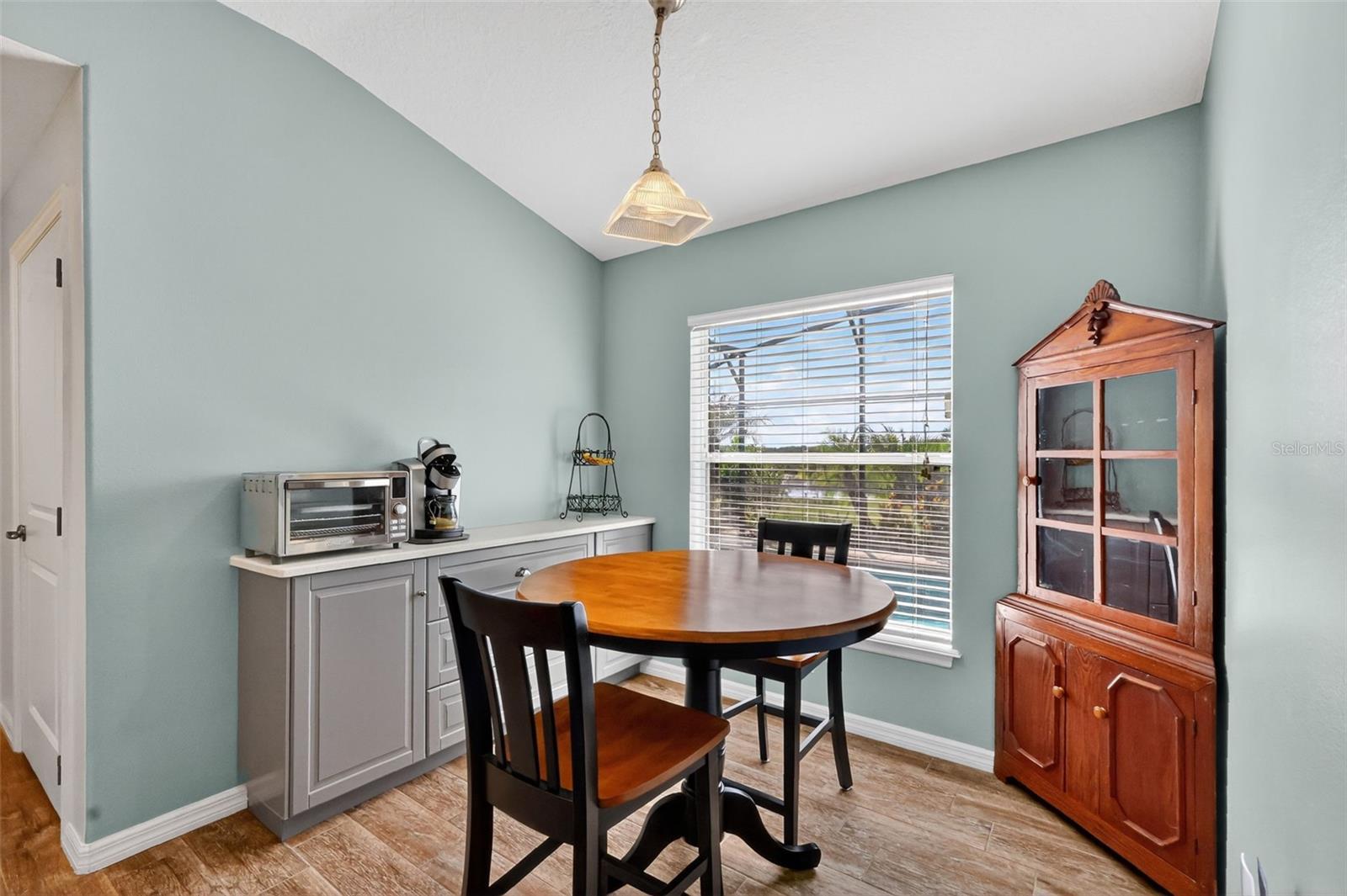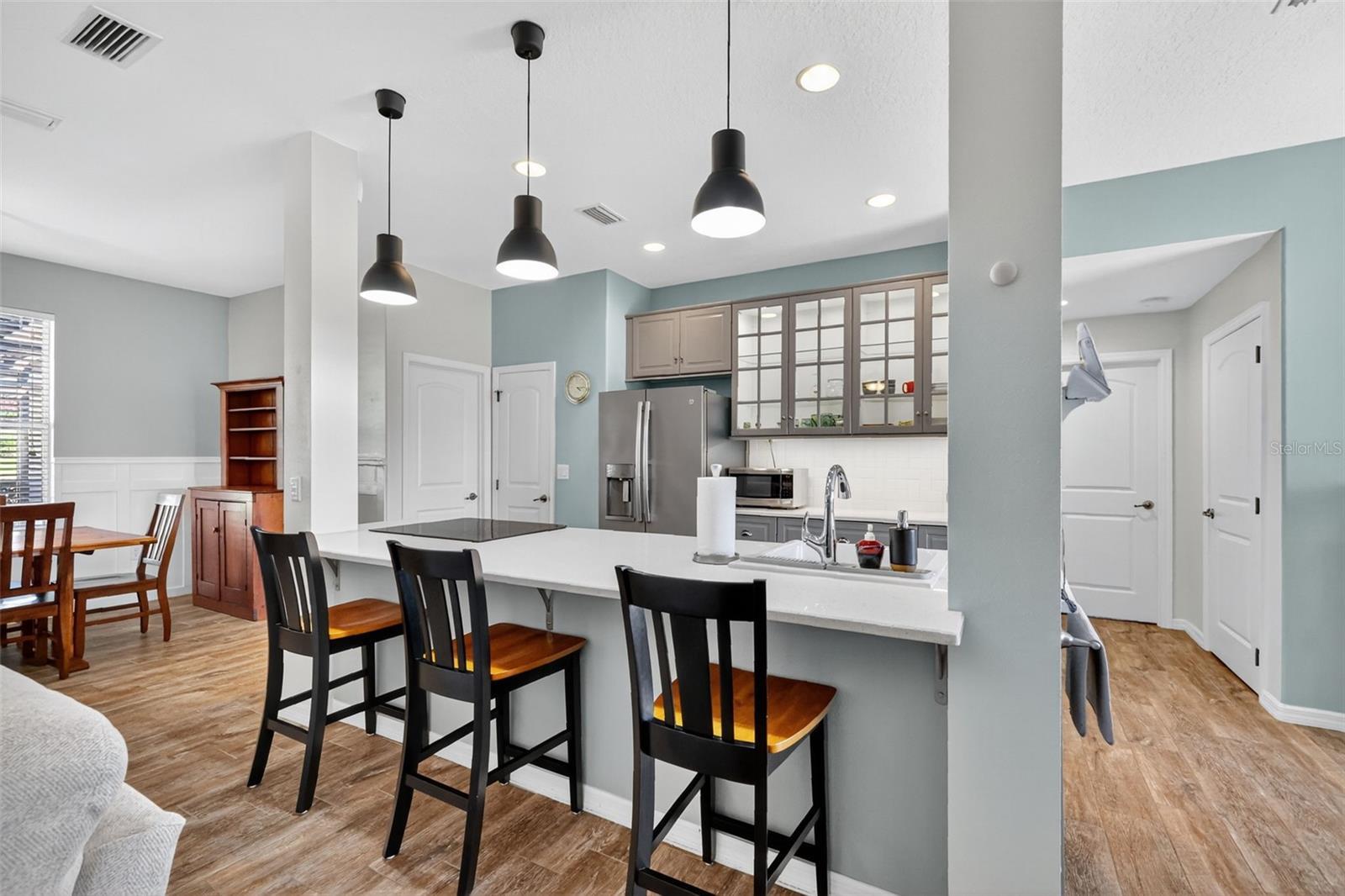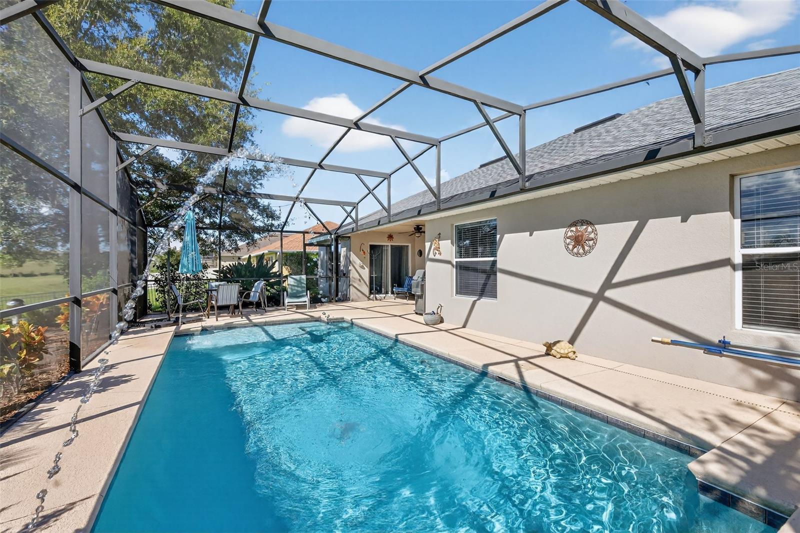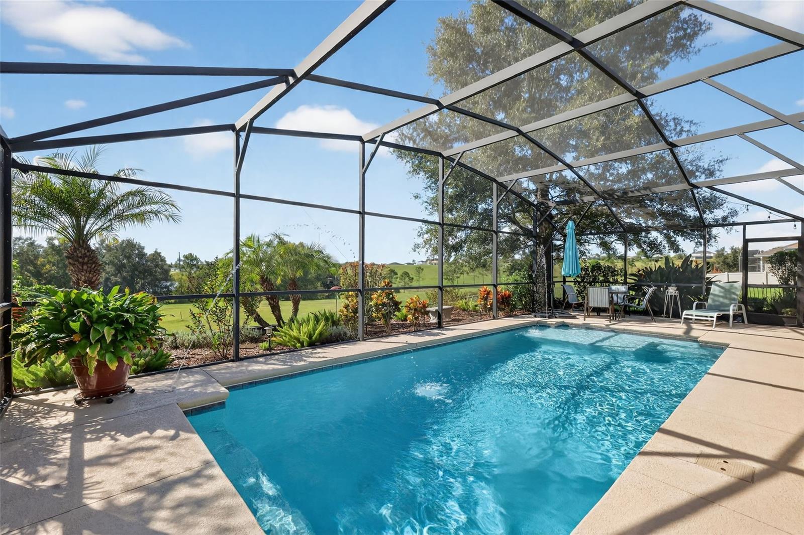 Under contract-accepting backup offers. Incredibly maintained and updated pool home in Vista Grande with stunning views of Little Lake Nellie! This 1688 sqft, 3 bedroom, 2 bathroom home with 2 car garage is ready for new owners. The home sits on a fenced conservation lot with no rear neighbors and tons of greenspace behind it for unobstructed lake views and incredible sunsets. Open floorplan has great sightlines and porcelain wood look tile throughout the living areas. The upgraded kitchen features quartz counter tops, under cabinet lighting and wood cabinets. Primary suite has slider opening to the patio, dual sinks, walk in shower and double closets. The screened in Pool features water jets, sun shelf and great surrounding landscaping for privacy. Garage door and mechanicals were replaced and garage door is insulated. Other Recent updates: Roof replaced in 2023, AC replaced in 2021. This one is move in ready!