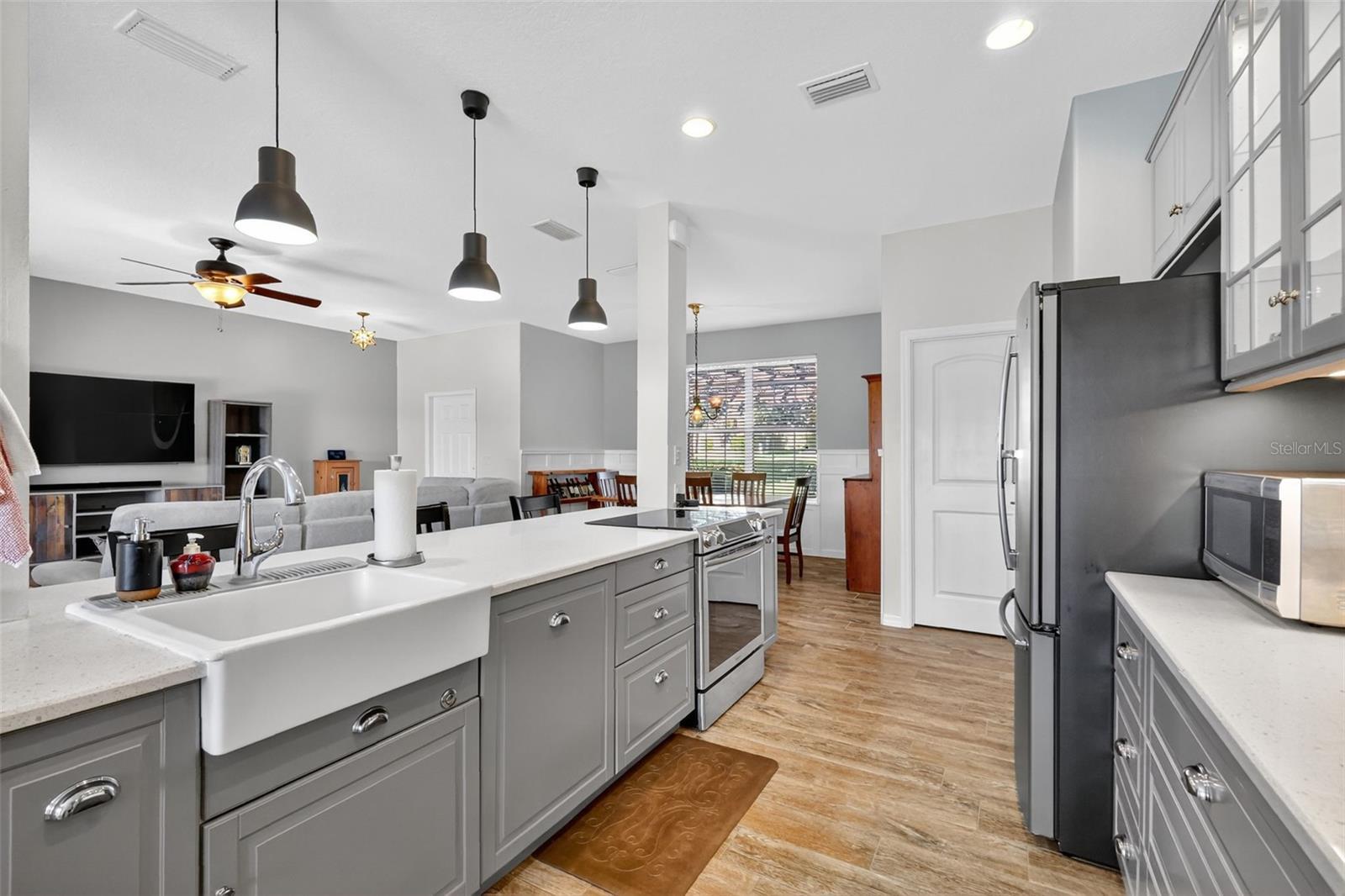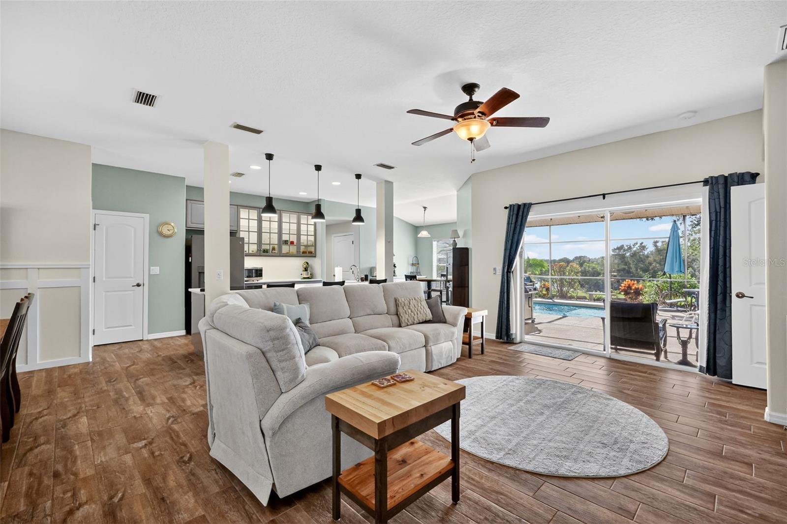 - Ceiling Fans(s), Kitchen/Family Room Combo, Open Floorplan, Solid Wood Cabinets, Stone Counters, Walk-In Closet(s), Window Treatments