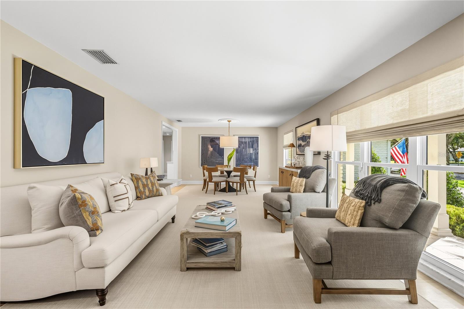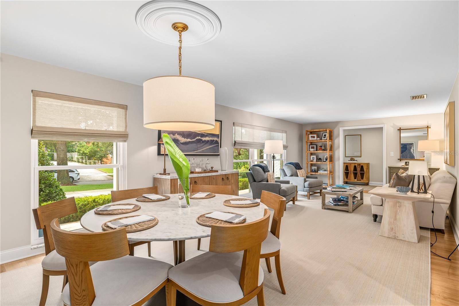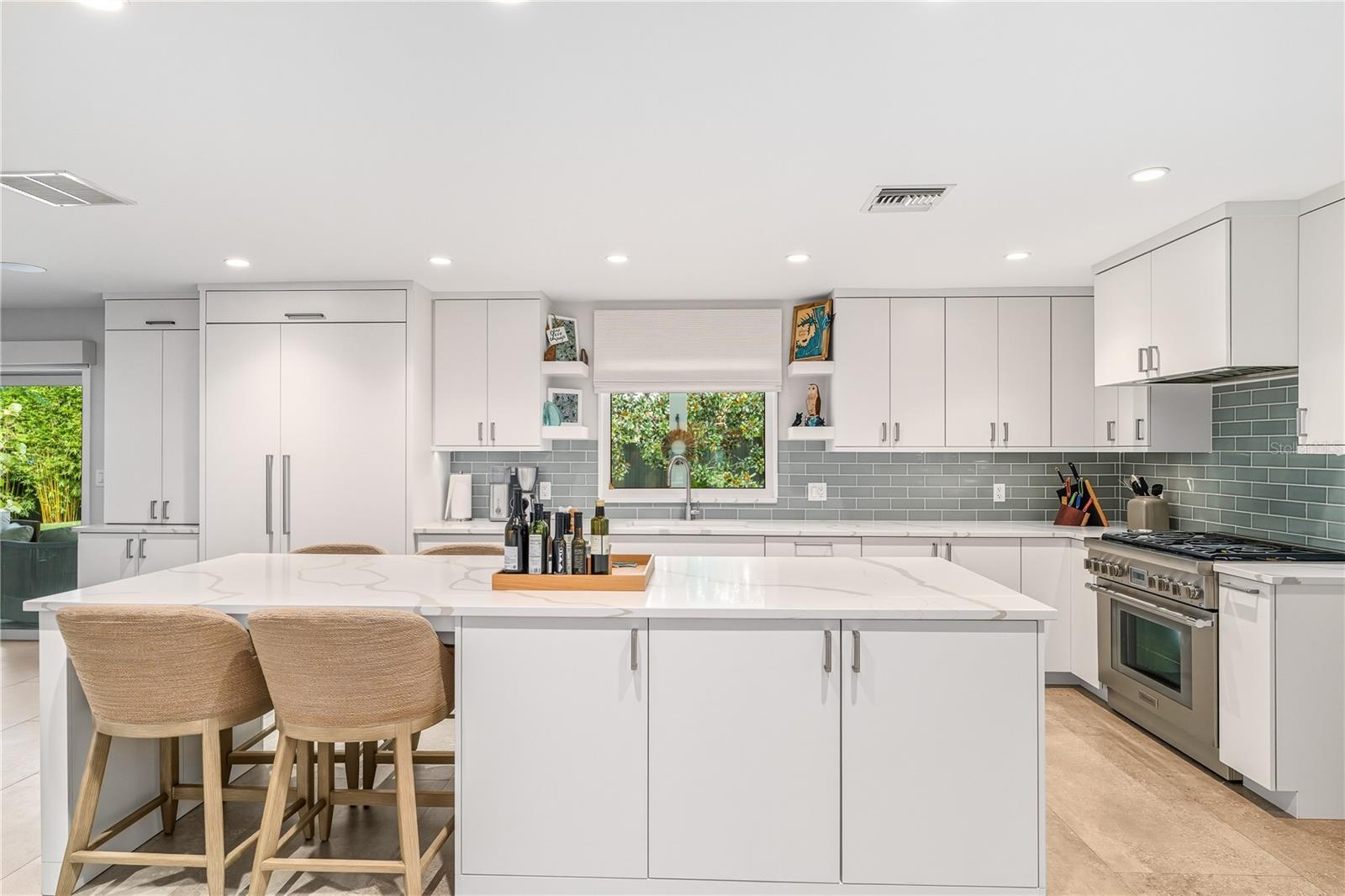 Nestled in coveted Winter Park’s Sevilla neighborhood, this 4-bed, 4.5-bath pool home delivers 3,500+ SF of refined living including 500 SF upstairs flex suite with its own full bath. A traditional foyer introduces formal living and dining rooms before the home unfolds into a spectacular 2022-renovated chef’s kitchen—an airy showpiece anchored by a 10-ft quartz island with bar seating, custom cabinetry, designer appliances, including a Thermidor side-by-side paneled refrigerator, Thermidor gas range & hood, and a Scotsman ice maker. The main hallway leads to the re-imagined primary retreat: spa-inspired bath with double vanities, oversized walk-in shower, soaking tub, dressing table, and custom closet. Two additional guest bedrooms share a refreshed full shower bath, while a separate en-suite—ideal for in-laws or overnight guests—enjoys direct access to the pool off the kitchen hall. Upstairs, a large bonus room with full bath adapts effortlessly to a 5th bedroom, media space, or private office. A utility-minded laundry/mud room links the interior to an oversized side-entry garage. Out back, entertain year-round beneath a covered lanai overlooking the expansive pool and sun deck. Mature oak canopy, manicured shrubs, and full privacy fencing create a park-like sanctuary just blocks from Park Avenue dining and the back gate to Mead Botanical Garden. Audubon K-8 and Winter Park High School District.