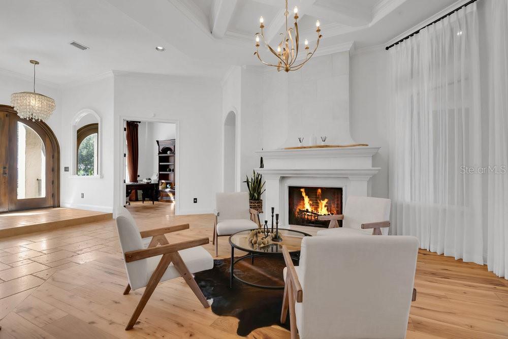 Under contract-accepting backup offers. Your stunning Keene’s Pointe custom home by Stonebridge was built for luxurious everyday living and effortless entertaining. The grand first floor features travertine and hardwood floors throughout, a formal living room with gas fireplace and stone mantle, elegant dining room with adjoining dry bar, and a private office with French doors. The secluded primary suite includes a glamorous dressing room, expansive walk-in closet, and an updated spa-like bath with oversized glass shower and dual vanities. Two additional first-floor bedrooms share a full bath, plus a versatile flex room ideal for a secondary office. Thoughtful touches include a well-appointed laundry, mudroom, and a clever under-stair nook. The gourmet kitchen showcases high-end stainless appliances including a Sub-Zero refrigerator and custom cabinetry, opening to a sunny breakfast area and spacious family room with custom-built entertainment center. Large sliding doors reveal the updated lanai with wood-paneled ceiling and travertine decking, seamlessly connecting indoor and outdoor living. A nearby media room with wet bar, wine cellar, and half bath is perfect for movie nights and game days. Upstairs, two ensuite bedrooms are complemented by dual landing spaces featuring a cozy sitting area ideal for work, study, or just relaxation. Outside, enjoy a resort-style backyard with summer kitchen, pool, waterfall, and updated spa with rock accents overlooking a generous private lawn. A 3-car garage is smartly split into two bays for flexible storage and parking. Finishes include custom drapes and shutters, extensive built-ins, detailed moldings, and rich woodwork. Meticulously maintained with recent upgrades: all-newer HVAC units, fresh exterior paint, gas pool heater, irrigation well pump, and more. Move-in ready, beautifully updated, and impeccably cared for this is Keene’s Pointe living at its finest. Be sure to click on the virtual tour links.
