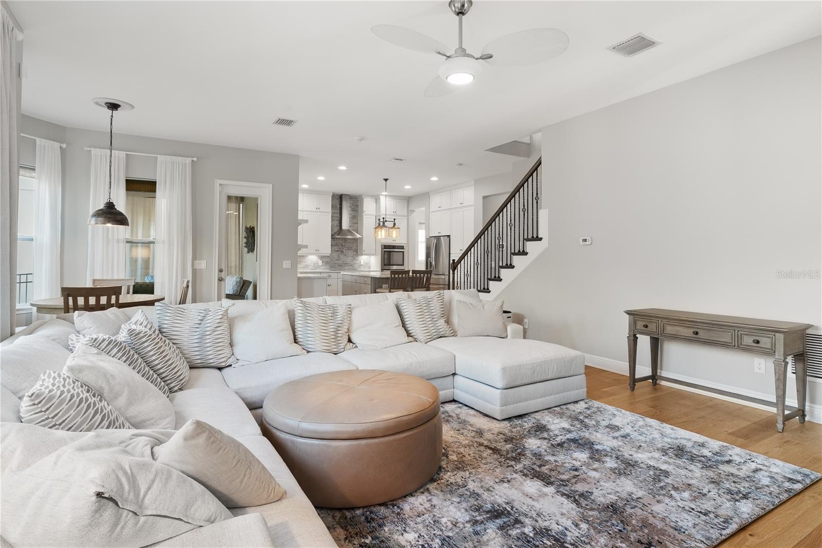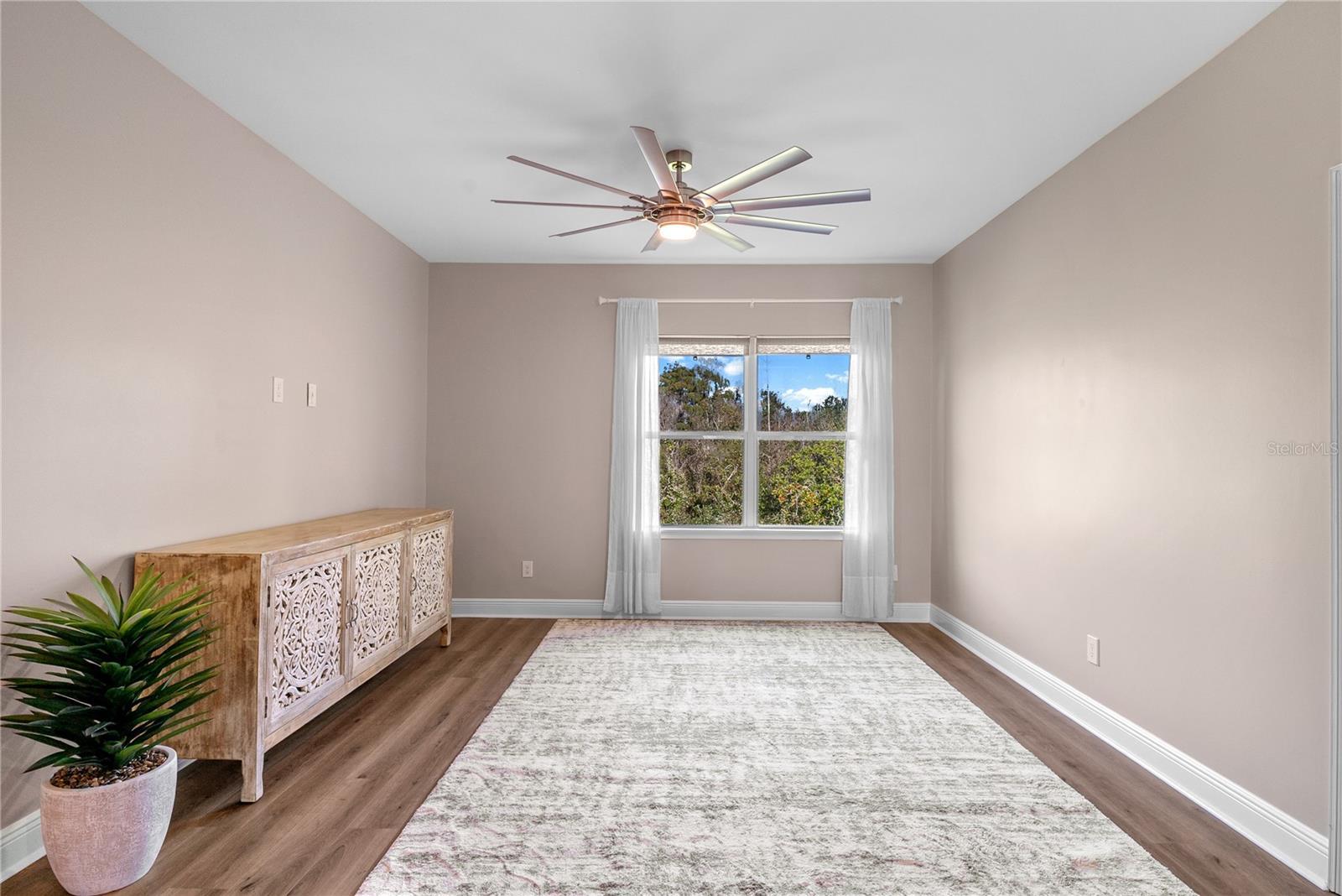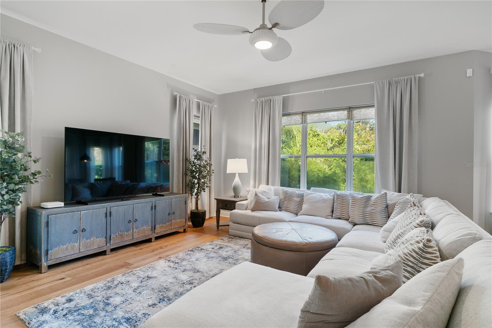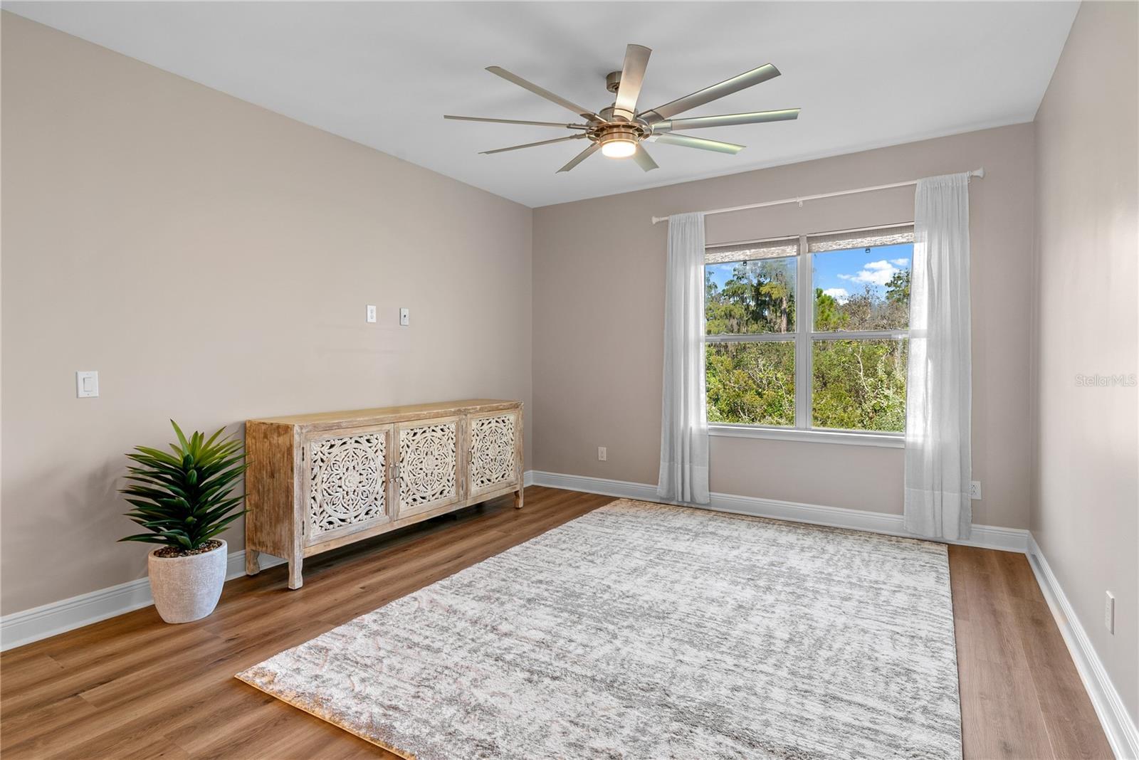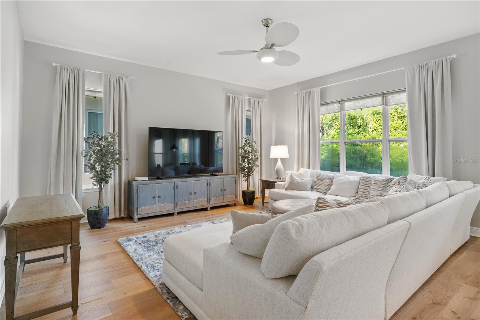 Welcome to an exceptional opportunity to enjoy the very best of Orlando living, with the rare advantage of being located just outside the back entrance to Walt Disney World. This beautifully maintained, eight-year-old home offers a unique blend of convenience, privacy, and thoughtful upgrades, all while being minutes from Orlando’s finest dining, shopping, major highways, and world-famous attractions. It is the ideal setting for those who want to be close to everything, yet still enjoy the comfort and calm of a well-established neighborhood. One of the most desirable features of this home is its location backing up to a serene conservation area, providing complete privacy with no rear neighbors. This peaceful backdrop allows you to enjoy nature, quiet mornings, and relaxing evenings without interruption. Adding to the ease of living, the homeowners association includes lawn maintenance, ensuring the exterior remains well-kept year-round with minimal effort on your part. Inside, the home has been freshly painted in 2025 and features beautiful hardwood flooring that adds warmth and timeless appeal throughout the main living areas. Several smart upgrades have already been completed, including a 2025 hybrid water heater, a whole-home water softener, and a brand-new washer and dryer. Window treatments, including curtains, blinds, and mirrors, are all included, making this a truly move-in-ready home. The kitchen is both elegant and functional, designed for everyday living as well as entertaining. Quartz countertops provide ample workspace, while the butler’s pantry with a built-in wine refrigerator offers additional storage and convenience. A pot filler, accent-lit shelving, and quality finishes complete the space, making it equally suitable for hosting guests, preparing family meals, or enjoying a quiet morning coffee. The open layout flows naturally into the dining and living areas, creating a comfortable and inviting environment for gatherings of any size. Outdoor living is equally impressive. The screened porch features motorized retractable screens, allowing you to enjoy fresh air year-round, while the pavered lanai includes a retractable, lighted awning that provides shade during the day and ambiance in the evening. The landscaping is fresh, attractive, and designed to be low maintenance, adding to the home’s curb appeal without adding work. Perhaps the most magical feature of all is the ability to enjoy nightly Disney fireworks from your own front porch, along with the charming sounds of the Disney train in the distance. It is a truly unique experience that makes everyday life feel special and memorable. With extra hardwood planks included, modern upgrades throughout, and a location that offers both privacy and unparalleled proximity to Disney, this home delivers comfort, convenience, and long-term value. This is not just a place to live, but a lifestyle that feels like a permanent vacation. Don’t just visit Disney. Enjoy the magic every single day from the comfort of your own home.