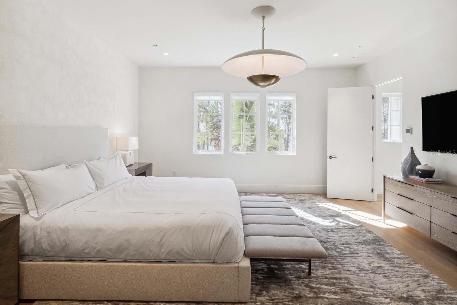 Lake Nona’s Coach Homes offer both privacy and convenience while featuring a wealth of elegant appointments, all enhanced by the serene backdrop of Lake Nona, a private dock and located in proximity to all that Club membership has to offer. This completely reimagined Coach Home was fully remodeled by DeVoe Custom Homes and Soco Interiors, in 2025, resulting in a stunning, welcoming retreat. The private entrance offers access to the second floor via elevator or multi-level staircase, where custom finishes and contemporary design offer a sophisticated and vibrant aesthetic throughout the interior. The living spaces take full advantage of the expansive lake views and the kitchen features a custom dining nook, center island and hidden scullery pantry. Featuring a spa-like primary bathroom, with a glass enclosed shower, free standing tub and integrated lighting throughout, the owner’s suite is a wonderful vantage point from which to take in the breathtaking lake views. Soco Interiors’ design presentation of fixtures and furnishings is available upon request. Additional features include: Executive Office / 4th Bedroom, Covered Balcony with Retractable Screens, Powder Room, and a Private 2-Car Garage.