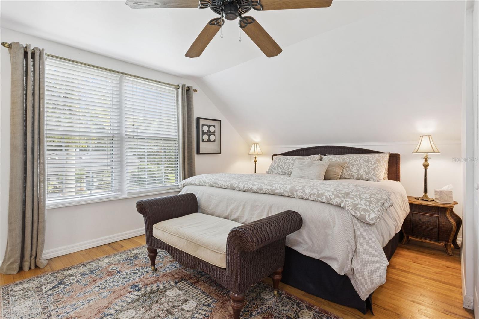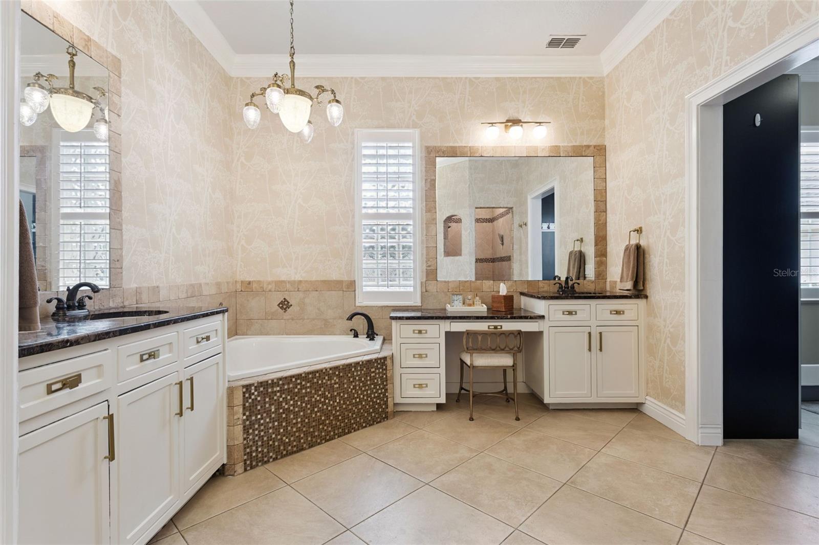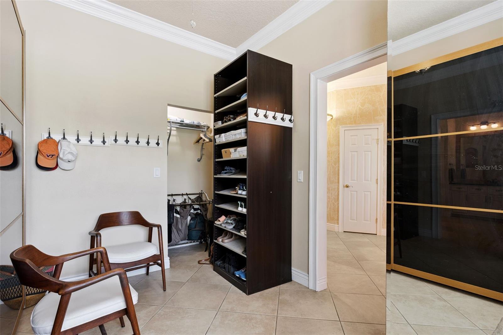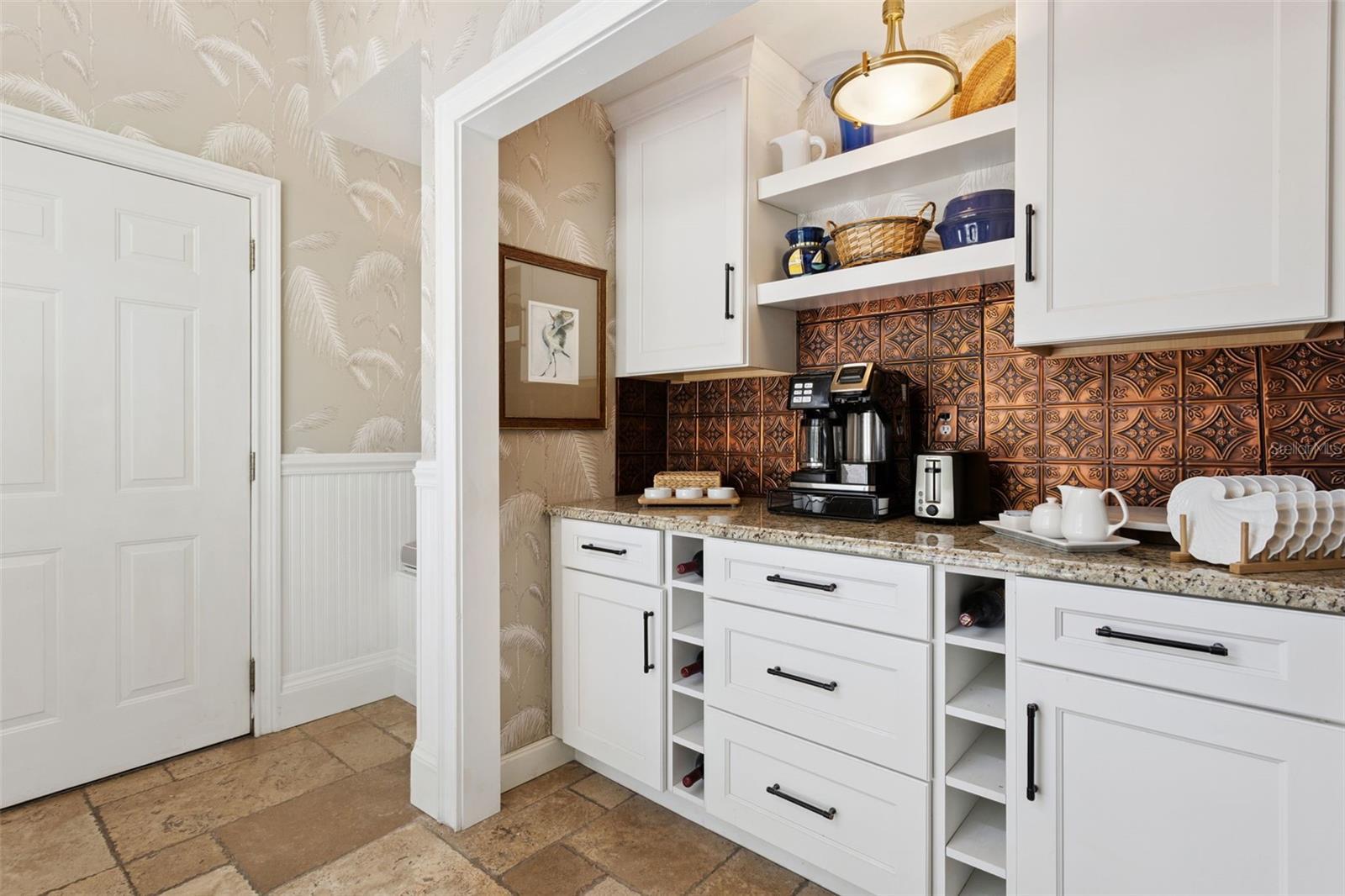 - Ceiling Fans(s), Crown Molding, Dry Bar, Eat-in Kitchen, High Ceilings, Kitchen/Family Room Combo, Open Floorplan, Primary Bedroom Main Floor, Solid Surface Counters, Split Bedroom, Stone Counters, Thermostat, Walk-In Closet(s), Window Treatments