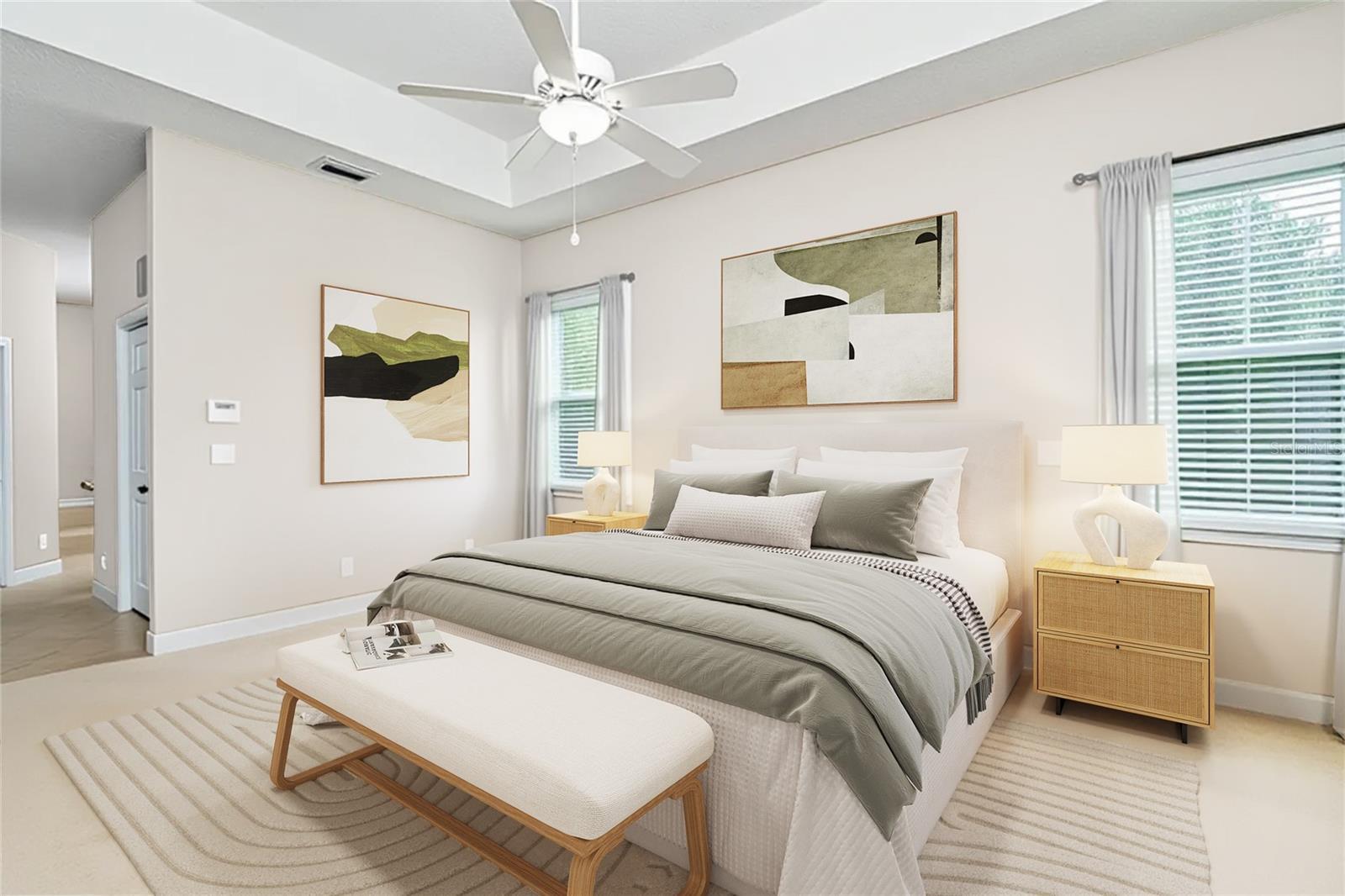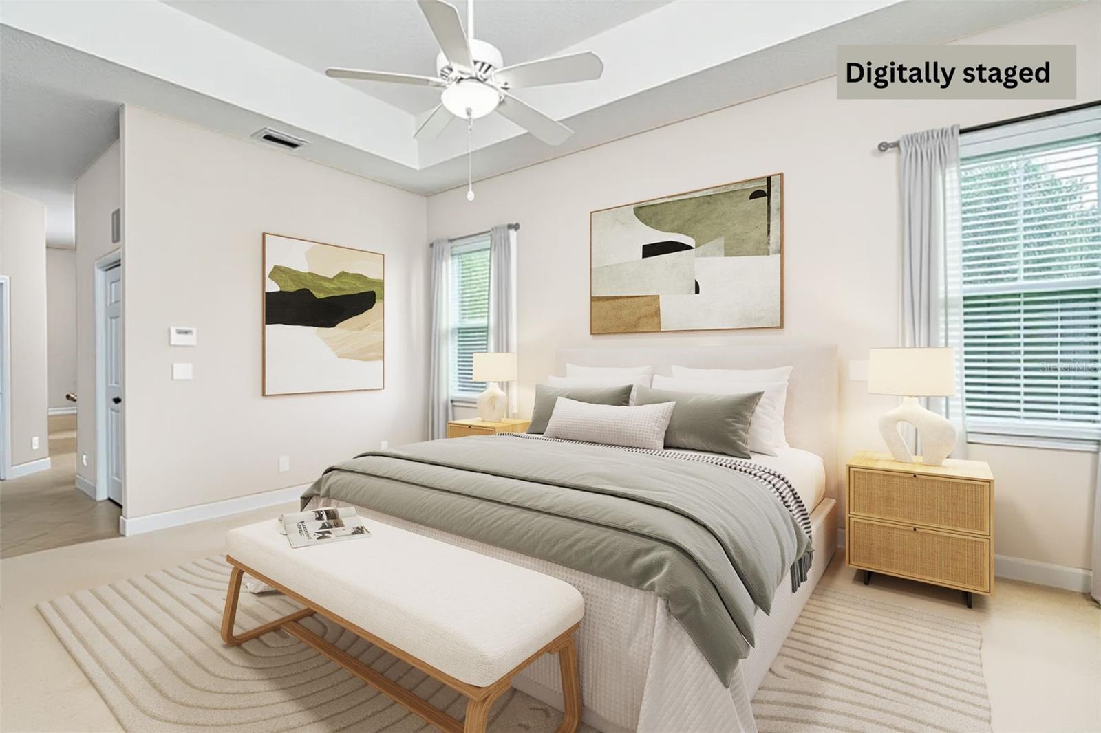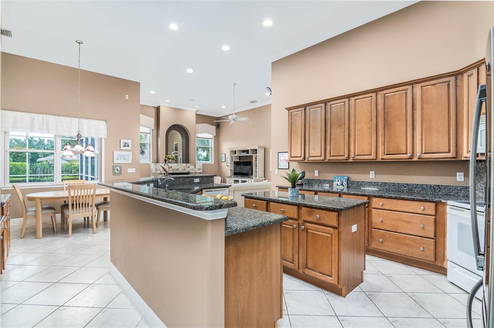 - Built-in Features, Ceiling Fans(s), Crown Molding, High Ceilings, Kitchen/Family Room Combo, Open Floorplan, Primary Bedroom Main Floor, Solid Surface Counters, Solid Wood Cabinets, Walk-In Closet(s), Window Treatments