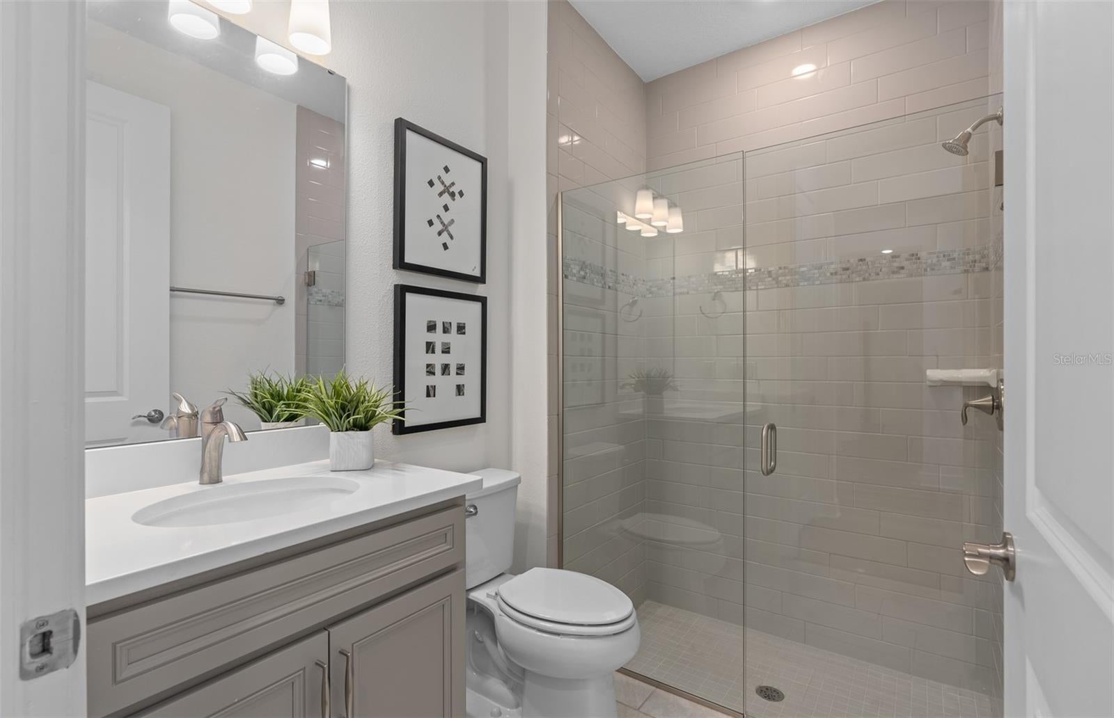 Under Construction. Del Webb Sunbridge is a gated 55+ active adult natural gas community offering new construction single family and villa homes with a low-maintenance lifestyle – and a Central Florida location in the center of it all. Del Webb Sunbridge offers an abundance of resort-style amenities with social events and activities centered in the 27,000-square foot clubhouse and planned by a full-time Lifestyle Director. With a zero-entry pool with lap lanes, resistance pool, poolside hammocks, and heated spa, sports courts, a movement studio, walking trails and more. Meet new friends at a resident club, take a painting class at one of the many art studios, attend a concert or show at the amphitheater, grab a bite at the on-site tavern & grille, or chat at the fire pits and grille pavilion. Get spoiled at Del Webb Sunbridge - after all, this is your time! Your home's exterior and yard maintenance are included, and fiber network provides up to gigabit internet speed. Del Webb Sunbridge’s resort amenities, sports courts, and Lifestyle Director with nearby Lake Nona truly make this the ideal neighborhood and a perfect location to call home. Step into the Mystique Model Home by Pulte! Originally a model home, this stunning one-story 3 bedroom, 2 bathroom, open flex room, and 2-car garage masterpiece boasts a pool situated on a homesite with no rear neighbors, a privacy wall at the rear of the home, and black aluminum fencing–offering both privacy and beauty. The open-concept layout seamlessly connects the gourmet kitchen, café, and gathering room, creating an airy atmosphere. The many windows bathe the entire space in natural light, while the tray ceiling in the gathering room adds an extra touch of sophistication, elevating the overall feeling of openness. The gourmet kitchen is a true focal point, featuring Whirlpool appliances, including a natural gas cooktop and French door refrigerator. Soft-close cabinetry, a range hood, mosaic tile backsplash, quartz countertops, and under-cabinet lighting add the perfect blend of style and convenience. The kitchen flows effortlessly into the café and gathering room, where a zero-corner sliding glass door leads to the extended covered lanai and pool, making this home ideal for seamless indoor-outdoor living. Retreat to the luxurious owner’s suite, a serene sanctuary with a spacious walk-in closet and a spa-like en suite bathroom. Dual vanity sinks, a walk-in shower, an enclosed toilet, and a linen closet complete the tranquil space. The two additional spare bedrooms and bathroom, along with the open flex room, provide ample space for family and guests. The upgraded laundry room with built-in cabinetry, quartz countertops, utility sink, and Whirlpool washer and dryer make daily tasks a breeze. Every detail of this home has been carefully curated, from the Shaw wood-look luxury vinyl plank flooring throughout to the tile flooring in the bathrooms and laundry. Designer-curated finishes elevate every corner of this home, including brushed nickel hardware and plumbing fixtures, 8’ interior doors, comfort-height toilets, and epoxy finish on the garage floor. With its stunning design and thoughtful touches, the Mystique home provides the perfect blend of luxury and functionality for today’s lifestyle. Don't miss out on your chance to own one of the best homes in the neighborhood! Schedule a tour today!