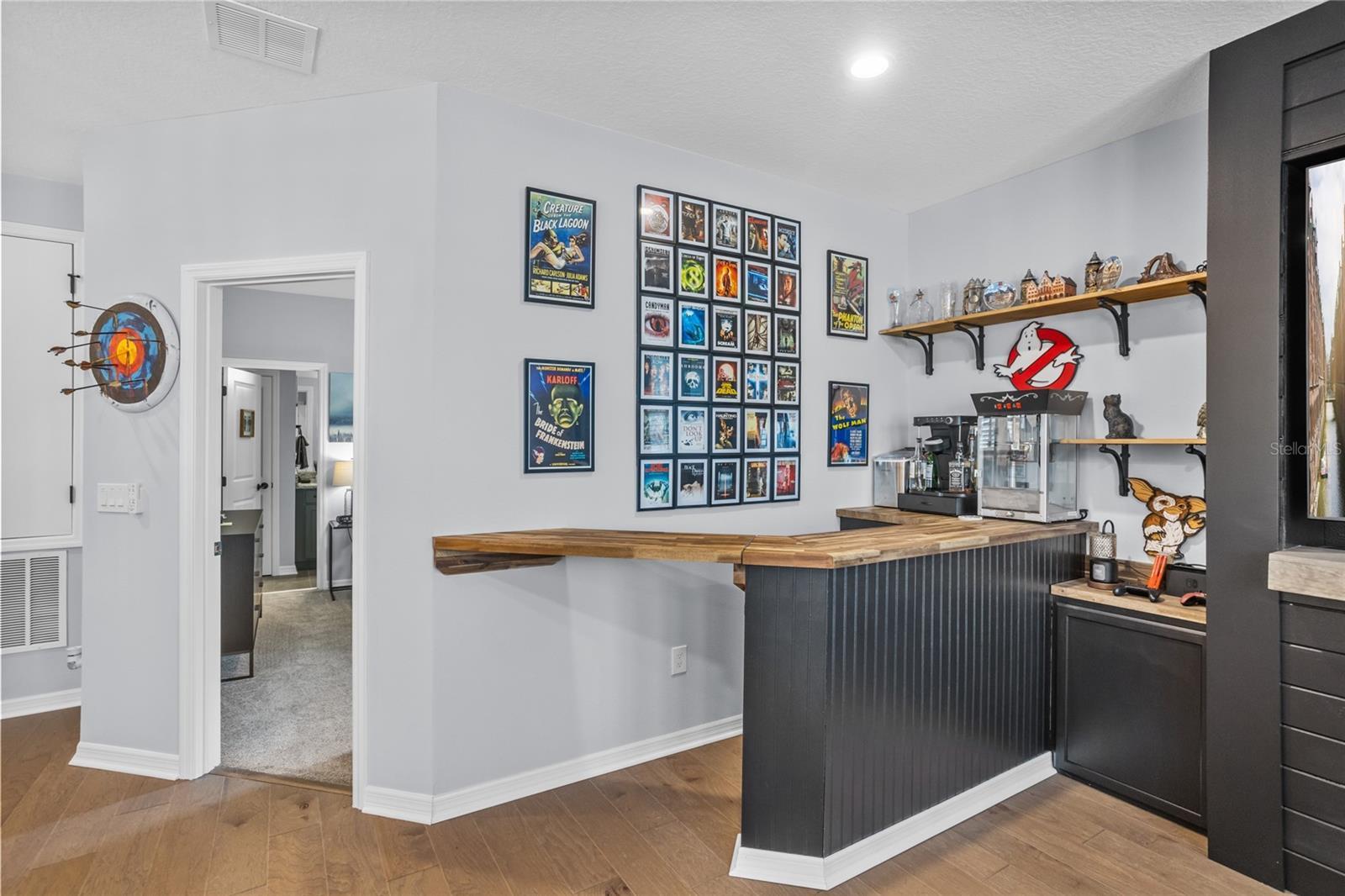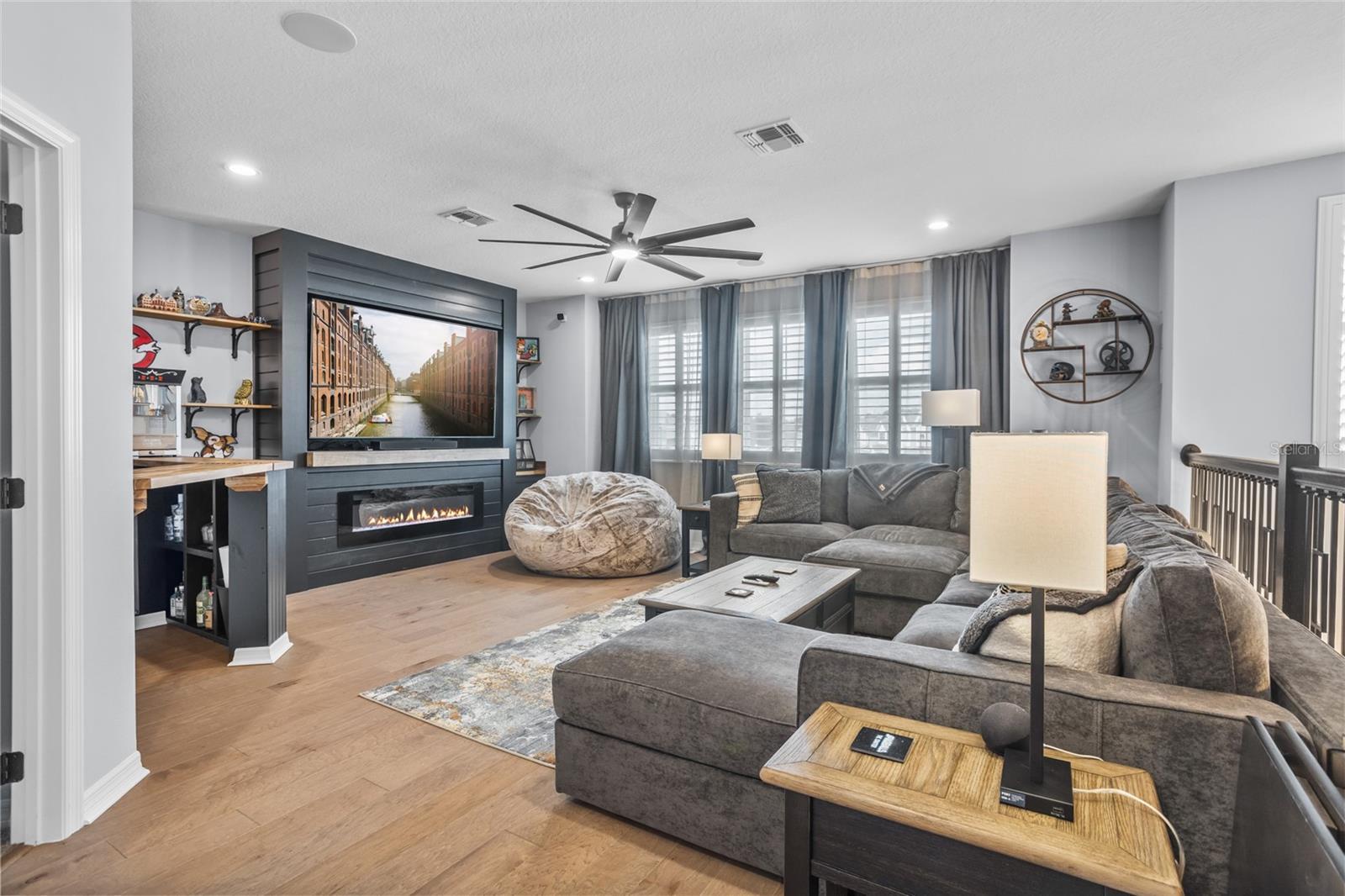 Under contract-accepting backup offers. ***** SELLER WILL ASSIST WITH CLOSING COSTS WITH AN ACCEPTABLE OFFER***** Welcome to 5615 Green Arrow Place in Sanford a stunning 5 bedroom, 4 full bath home loaded with upgrades and thoughtful details throughout! Step inside to discover a one-of-a-kind chef’s kitchen featuring upgraded quartz countertops with beveled edges, a double oven, premium range hood with spice rack and utensil hangers, real wood 42” cabinets with soft-close drawers, specialty spice and silverware drawers, custom pull-out pot and pan racks, and a butler’s pantry with microwave and mini fridge. The elegance continues with premium REAL Engineered Wood flooring, upgraded LED smart lighting, plantation shutters, electric roller blinds, and a built-in ceiling sound system in multiple rooms. Entertain with ease in the living room and loft, each designed with custom built-ins, fireplaces, and included 86” LG TVs. The luxurious owner’s suite offers quartz countertops, dual vanity sinks, dual shower heads, and an upgraded electric toilet with heated bidet, motion sense, auto flush, and heated dryer. A private guest suite with full bath and tub provides comfort and convenience for visitors. Throughout the home, you’ll find thoughtful enhancements such as premium wood and iron staircase banisters, custom laundry with premium tile, cabinetry and shelving, built-in fridge enclosure with upgraded LG refrigerator that makes cocktail ice, and pre-installed permanent holiday lights approved by the HOA. Even the garage and exterior were upgraded with care, offering an EV outlet, epoxy garage flooring, hanging shelving in the third bay, and an extended driveway. The premium corner lot provides a rare side street with no rear neighbors, just peaceful bamboo views. From smart upgrades to elegant finishes, this home truly has it all, blending luxury, comfort, and functionality in every detail.