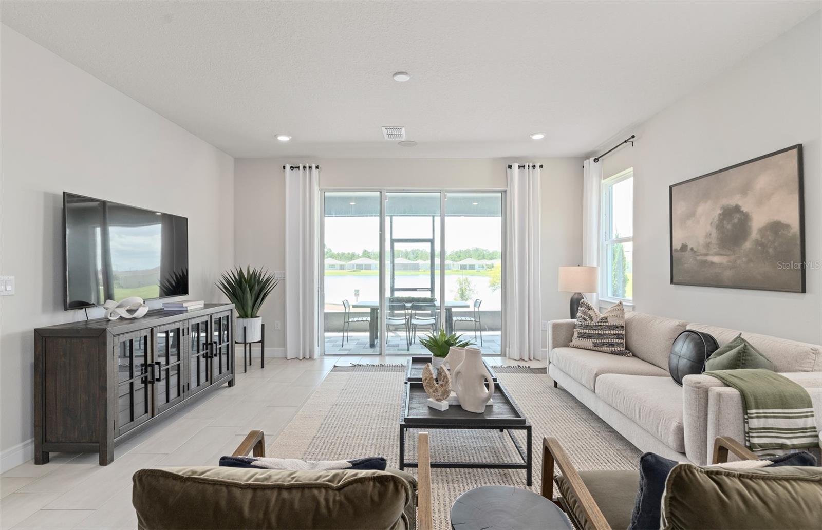 Under Construction. Del Webb Sunbridge is a gated 55+ active adult natural gas community offering new construction single family and villa homes with a low-maintenance lifestyle – and a Central Florida location in the center of it all. Del Webb Sunbridge offers an abundance of resort-style amenities with social events and activities centered in the 27,000-square foot clubhouse and planned by a full-time Lifestyle Director. With a zero-entry pool with lap lanes, resistance pool, poolside hammocks, and heated spa, sports courts, a movement studio, walking trails and more. Meet new friends at a resident club, take a painting class at one of the many art studios, attend a concert or show at the amphitheater, grab a bite at the on-site tavern & grille, or chat at the fire pits and grille pavilion. Get spoiled at Del Webb Sunbridge - after all, this is your time! Your home's exterior and yard maintenance are included, and fiber network provides up to gigabit internet speed. Del Webb Sunbridge’s resort amenities, sports courts, and Lifestyle Director with nearby Lake Nona truly make this the ideal neighborhood and a perfect location to call home. Step into the Mainstay Grand Model Home by Pulte! Originally a model home, this stunning one-story 4 bedroom, 3 bathroom, enclosed flex room, and 2-car garage masterpiece is situated on a homesite with a beautiful water view. The open-concept layout seamlessly connects the gourmet kitchen, café, and gathering room, creating an airy atmosphere. The gourmet kitchen is a true focal point, featuring Whirlpool appliances, including a natural gas cooktop and French door refrigerator. Soft-close cabinetry, a range hood, tile backsplash, quartz countertops, and under-cabinet lighting add the perfect blend of style and convenience. The kitchen flows effortlessly into the café and gathering room, where a sliding glass door leads to the screened-in covered lanai, patio, custom putting green, and fire pit, making this home ideal for seamless indoor-outdoor living. Retreat to the luxurious owner’s suite, a serene sanctuary with a spacious walk-in closet and a spa-like en suite bathroom. Dual vanity sinks, a glass enclosed shower, garden tub, an enclosed toilet, and a linen closet complete the tranquil space. The two additional spare bedrooms and bathroom, along with the enclosed flex room, provide ample space for family and guests. The upgraded laundry room with built-in cabinetry, quartz trimmed utility sink, and Whirlpool washer and dryer make daily tasks a breeze. Upstairs, the expansive loft provides additional space for leisure, and the third bedroom features its own walk-in closet and private bathroom. Every detail of this home has been carefully curated, from the tile flooring throughout the main living areas, bathrooms, and laundry to the plush, stain-resistant Shaw carpet in the bedrooms, loft, and staircase. Designer-curated finishes elevate every corner of this home, including brushed nickel hardware and plumbing fixtures, 8’ interior doors, comfort-height toilets, and epoxy finish on the garage floor. With its stunning design and thoughtful touches, the Mainstay Grand home provides the perfect blend of luxury and functionality for today’s lifestyle. Don't miss out on your chance to own one of the best homes in the neighborhood! Schedule a tour today!