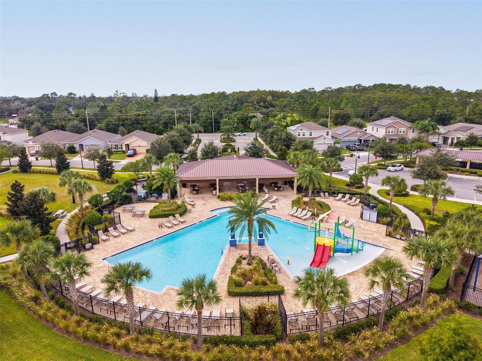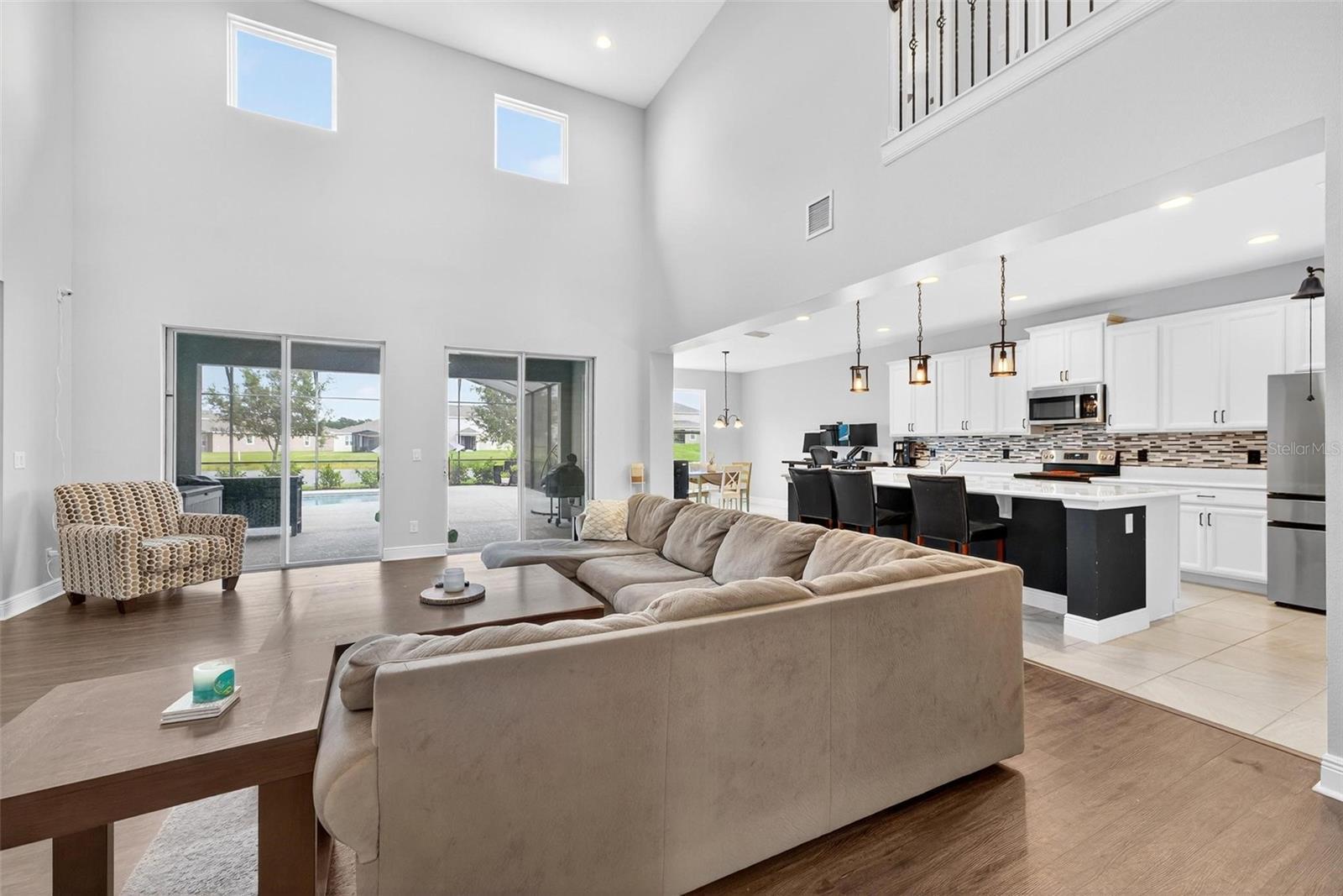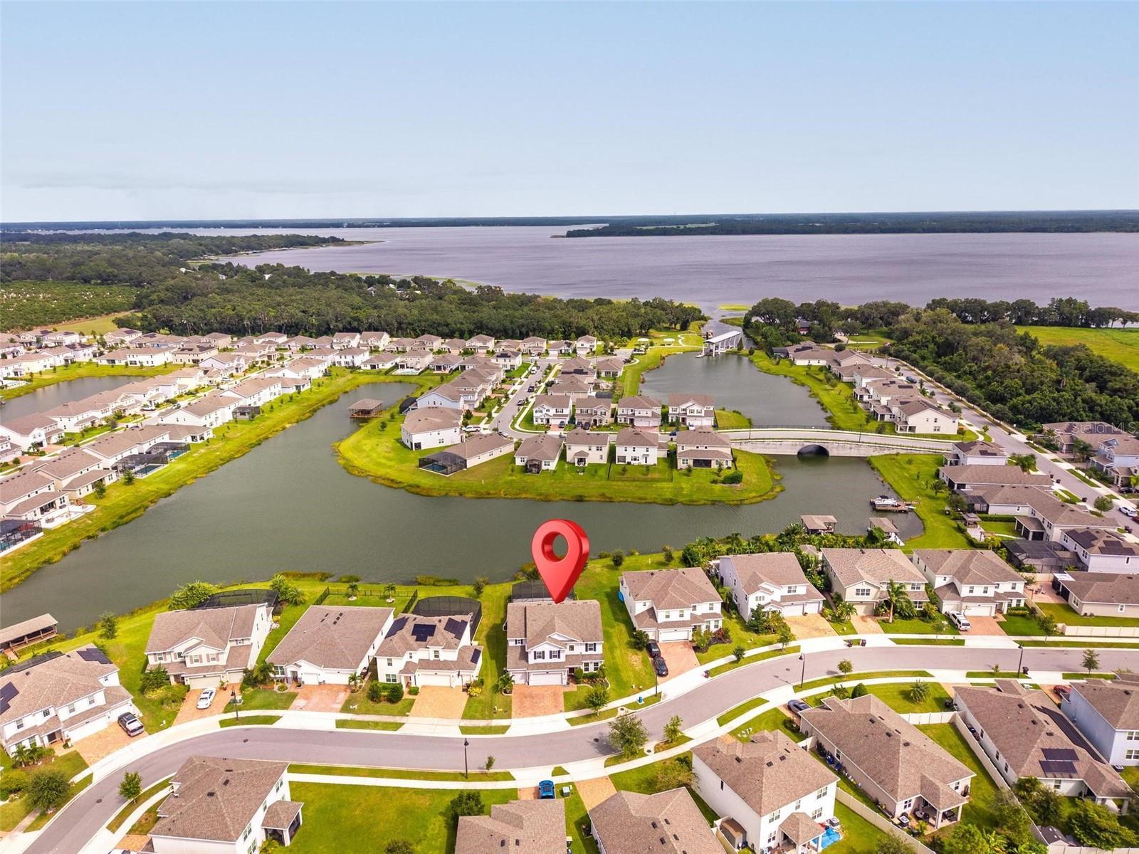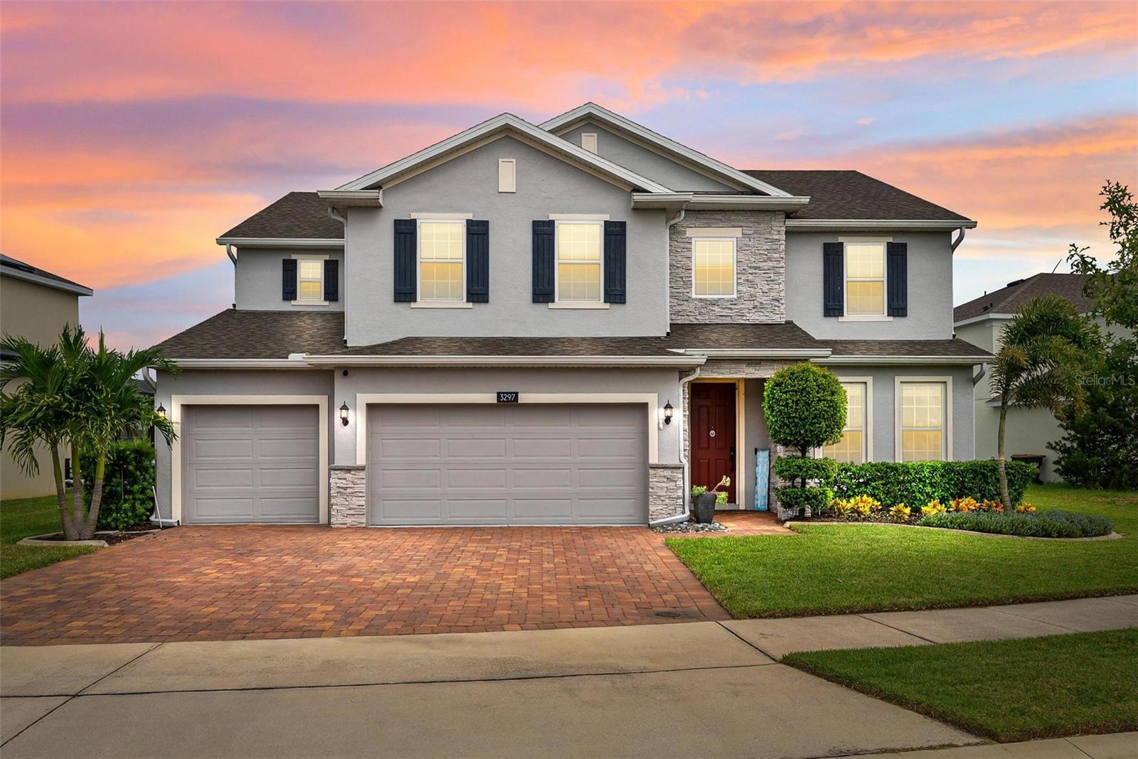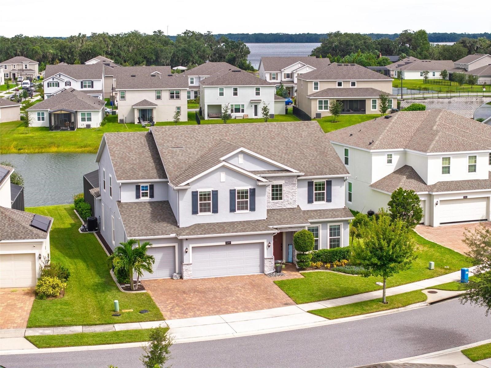 Under contract-accepting backup offers. This extraordinary 3,800 sq. ft. Exbury plan offers a luxurious waterfront lifestyle on a beautiful homesite at Hanover Lakes, featuring an open-concept design with 5 Bedrooms, 3.5 Baths, and a 3-car garage, highlighted by an incredible 1st Floor Primary Suite. The property provides direct water access via a navigable canal to the Alligator Chain of Lakes for great fishing and boating opportunities across 5 lakes. The oversized kitchen is a chef's delight with beautiful 42" cabinets, quartz countertops, a tile backsplash, expansive island, walk-in pantry, Stainless appliances, and an adjacent Butler's Pantry leading to the Dining Room. A dramatic 2-story Family Room overlooks a spacious covered rear Lanai for entertaining, and the home features upgraded luxury vinyl flooring in main 1st-floor living areas and included window blinds throughout. The Primary Bedroom's luxurious en-suite bath boasts 2 walk-in closets, separate quartz vanities, a free-standing soaking tub, and a separate walk-in shower. Additional gathering space is found in the 2nd-floor Loft/Family Room, ideal for media or exercise. The exterior includes an attractive brick paver driveway and a private, completely screened, salt water pool with a splash pad and beautiful waterfall. Exceptional community amenities include a resort-style pool, splash pad, and playground, and the convenient location is close to Disney, Universal, Sea World, nearby Atlantic Beaches, and expressways for easy access to Downtown Orlando.